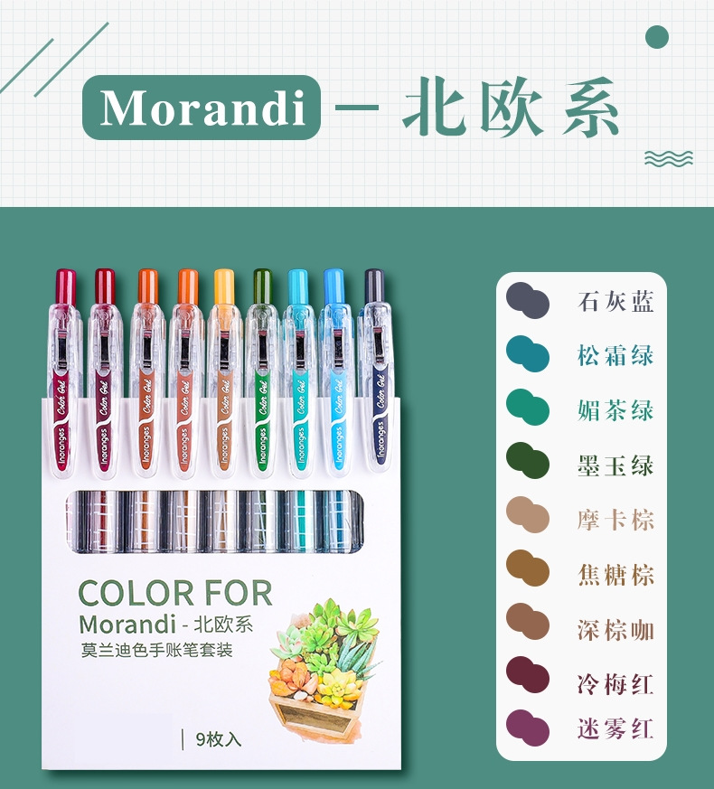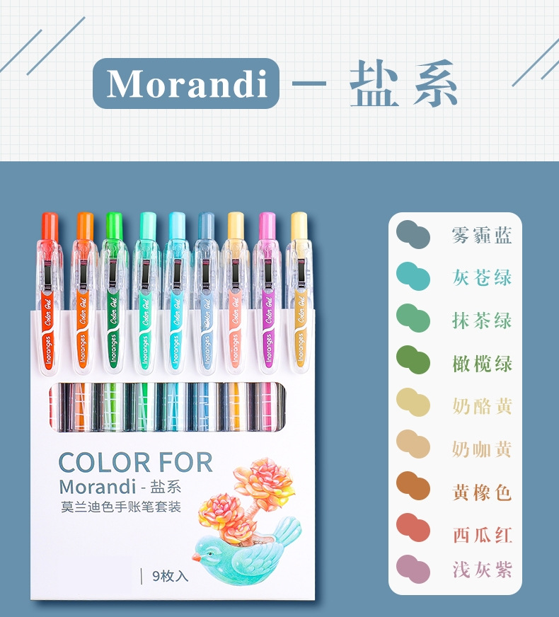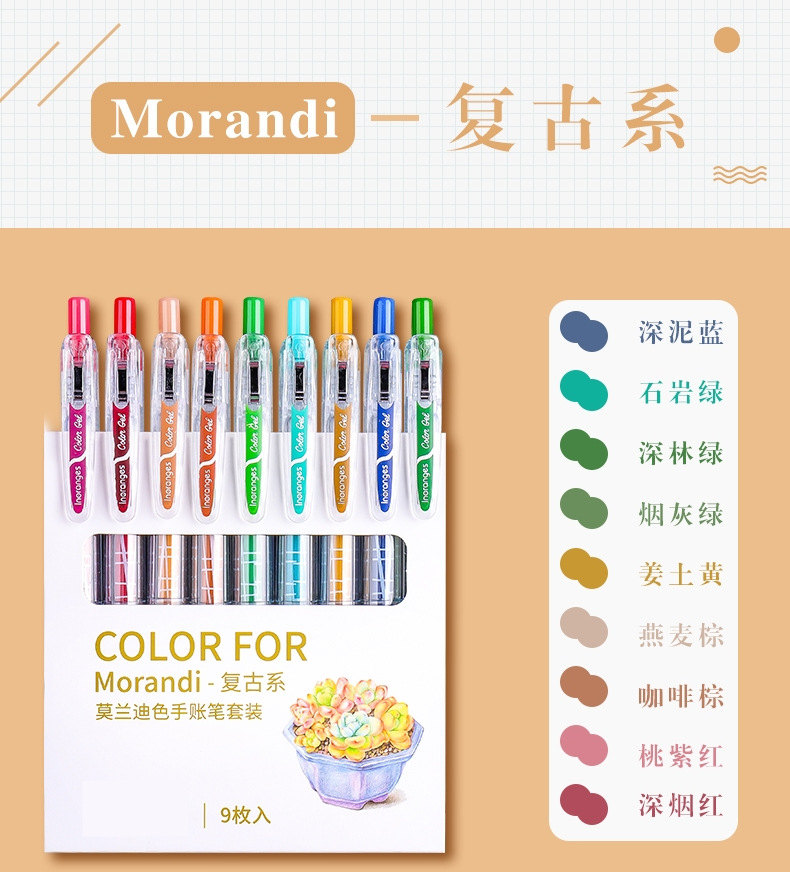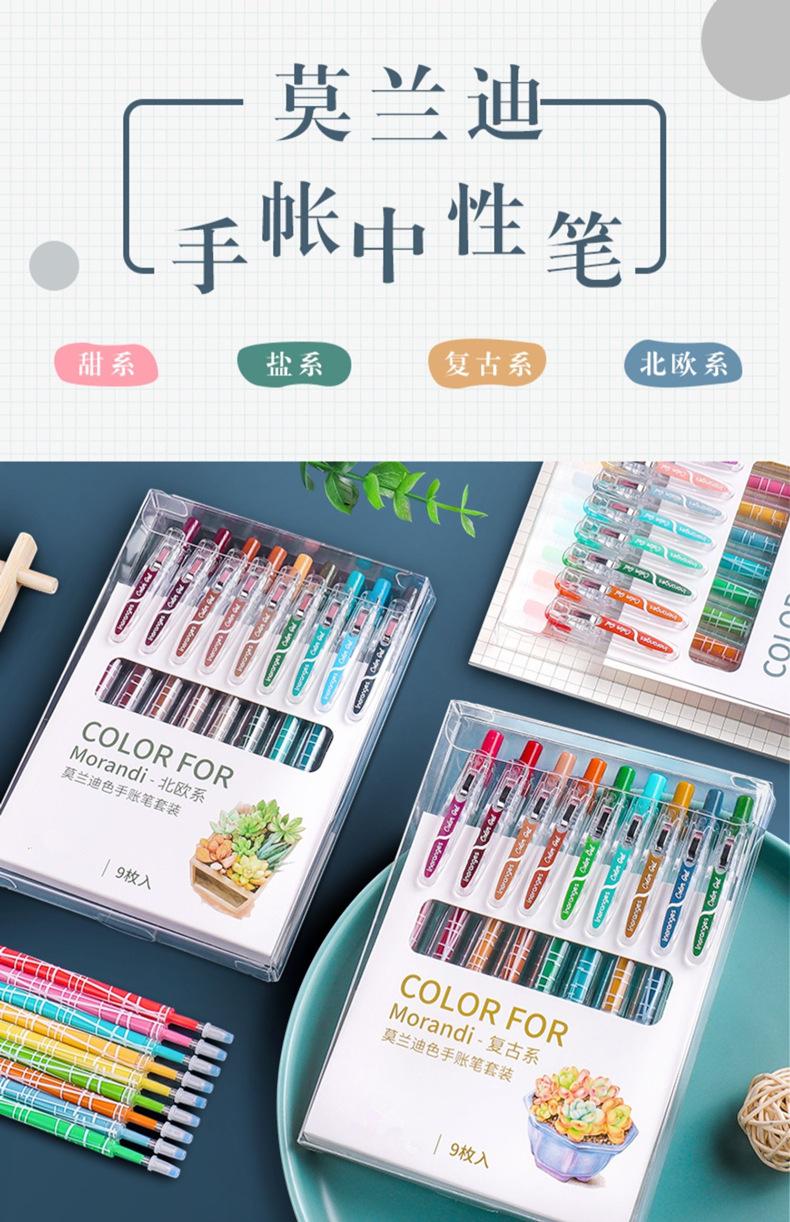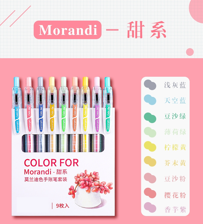 开学季福利!【按动款莫兰迪色手账笔】 9色彩色中性笔学生用0.5mm全针管ins日系可爱创意水笔手账笔彩笔做笔记专用中性笔高颜值水性笔