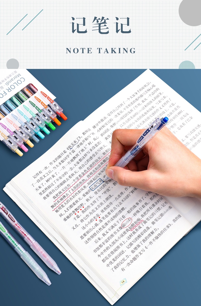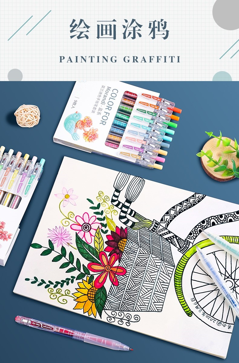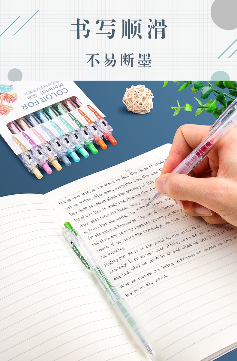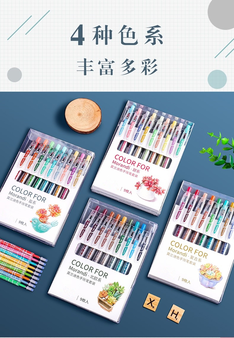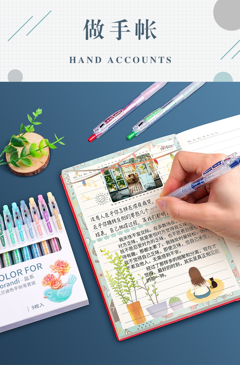 开学季福利!【按动款莫兰迪色手账笔】 9色彩色中性笔学生用0.5mm全针管ins日系可爱创意水笔手账笔彩笔做笔记专用中性笔高颜值水性笔