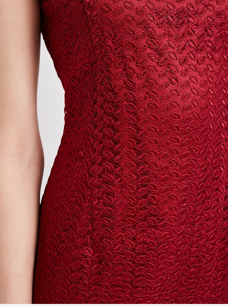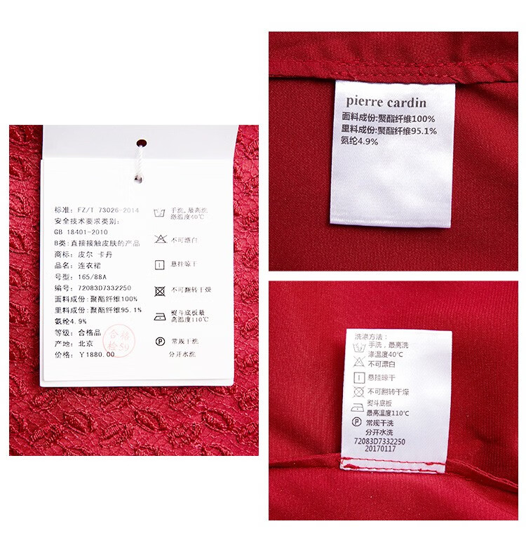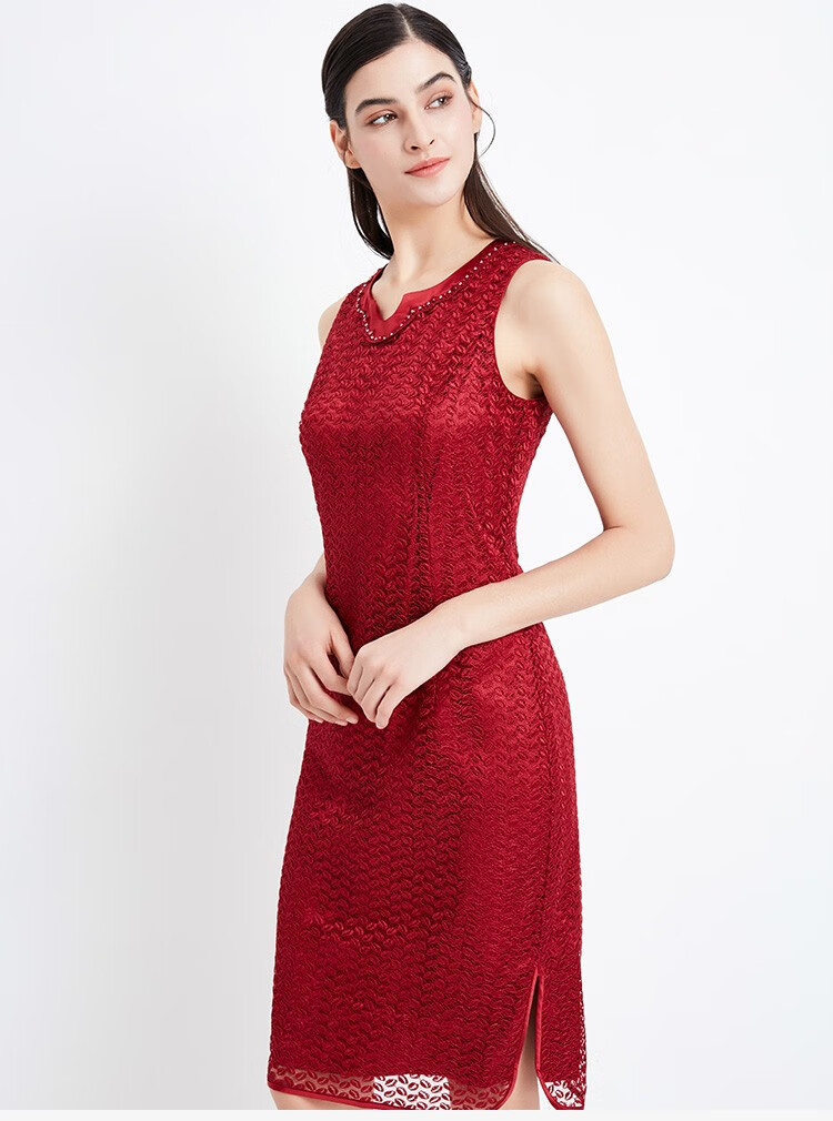 皮尔卡丹女夏季新款红色绣花旗袍一步裙气质连衣裙P82DS07R0