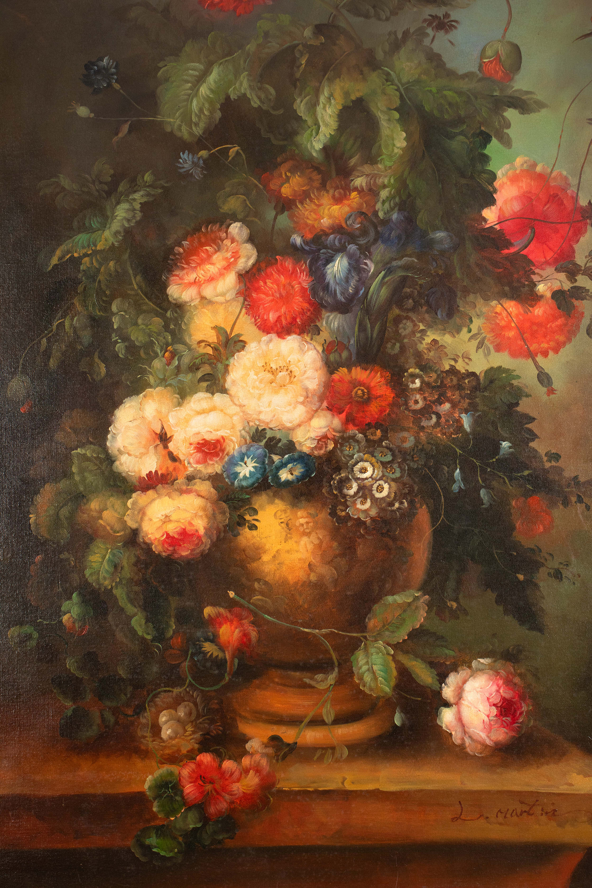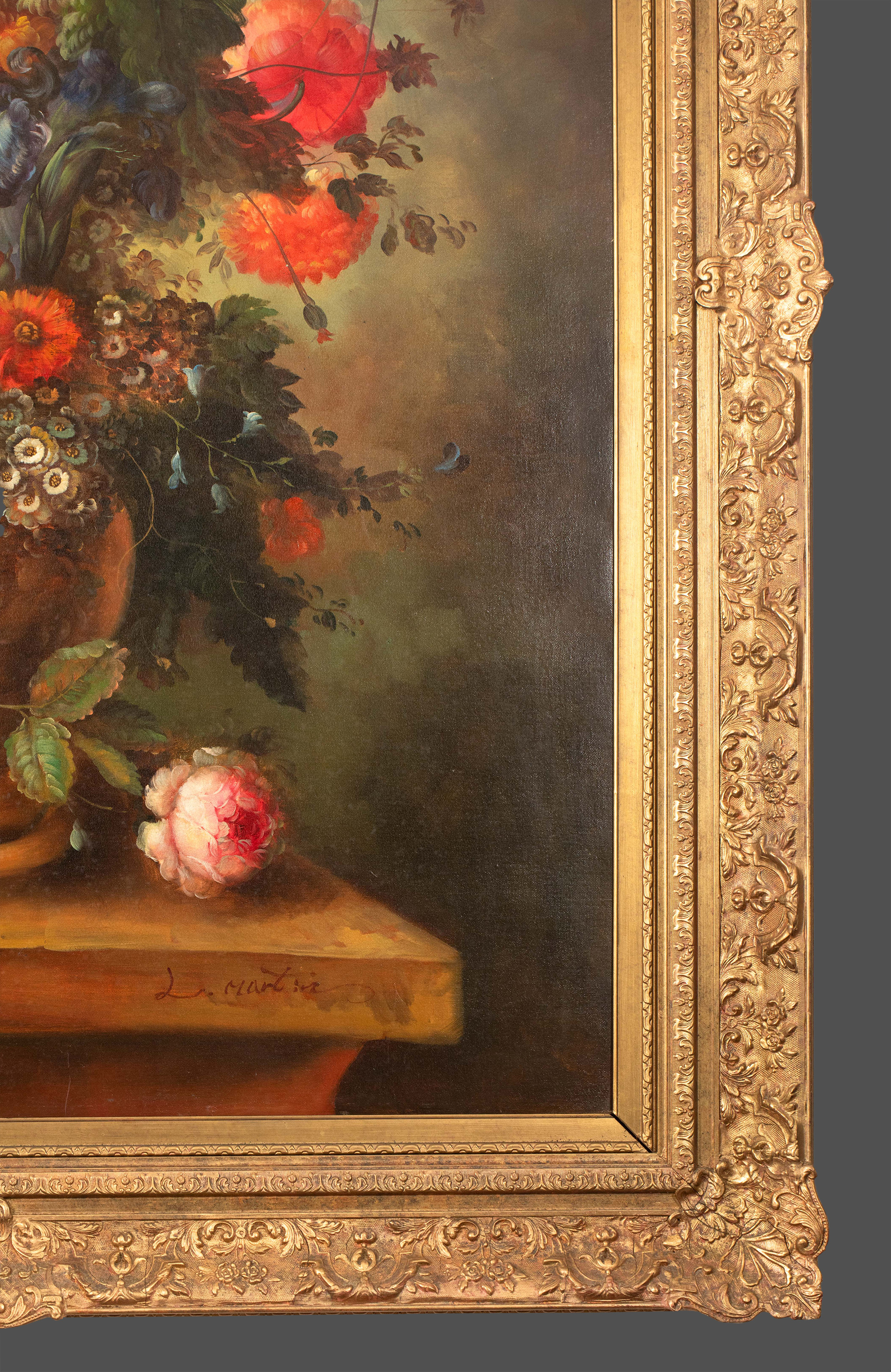 20世纪法国画家L. Martin签名出品大型花卉静物布面油画