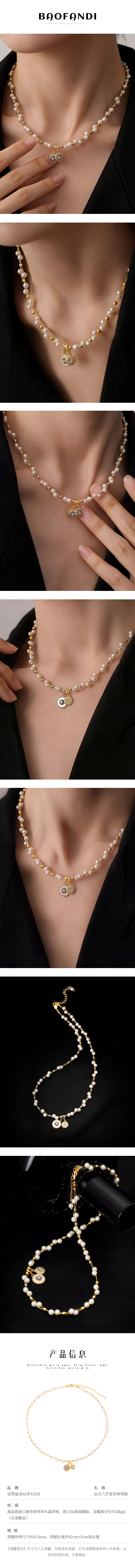 BAOFANDI宝梵迪2026新款法式金色圆牌编织珍珠项链复古千金感时尚精致小众设计锁骨链BF