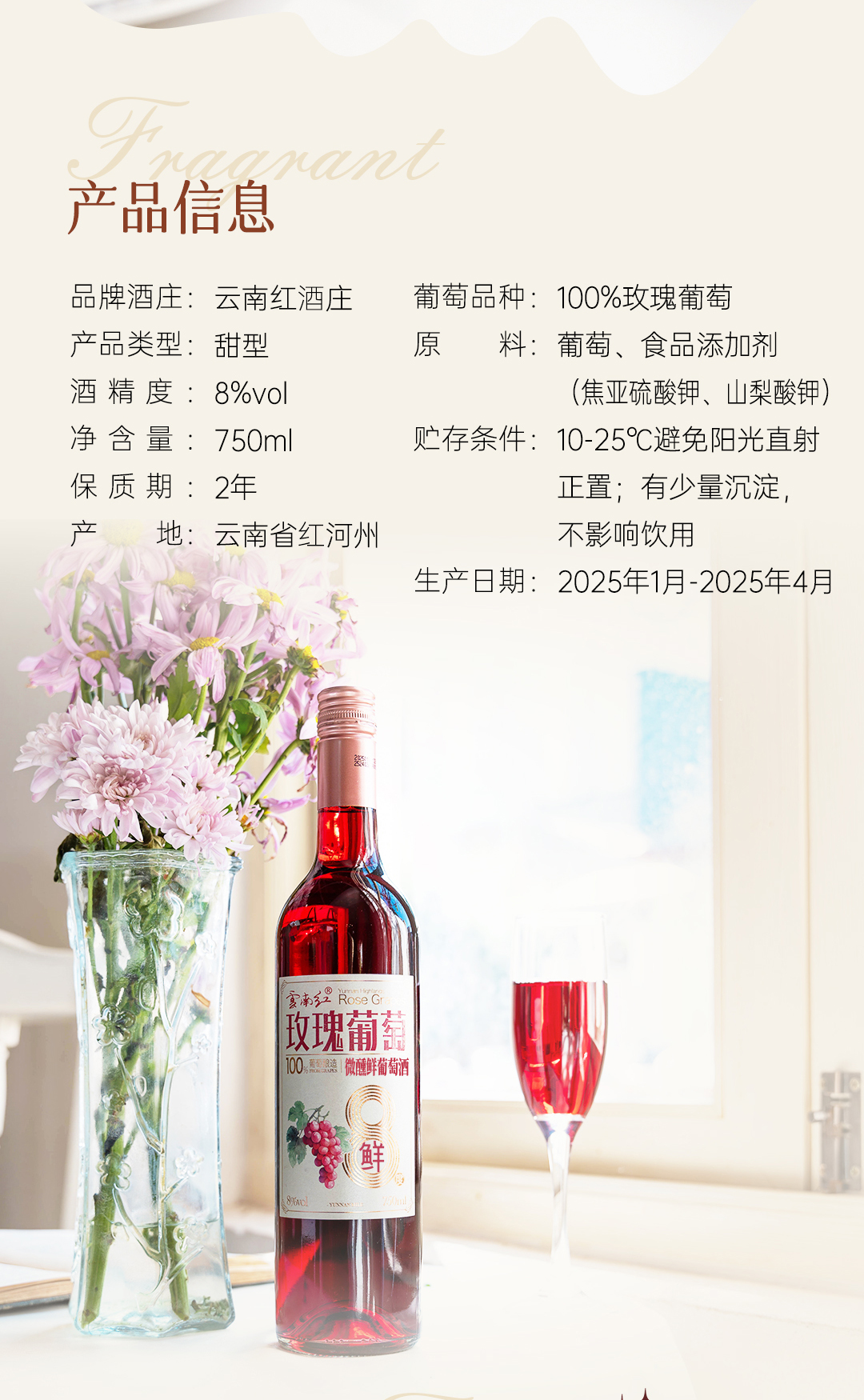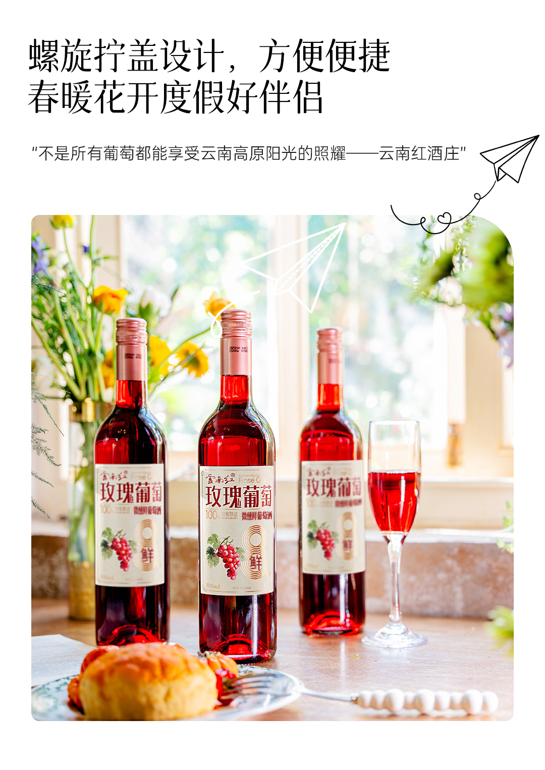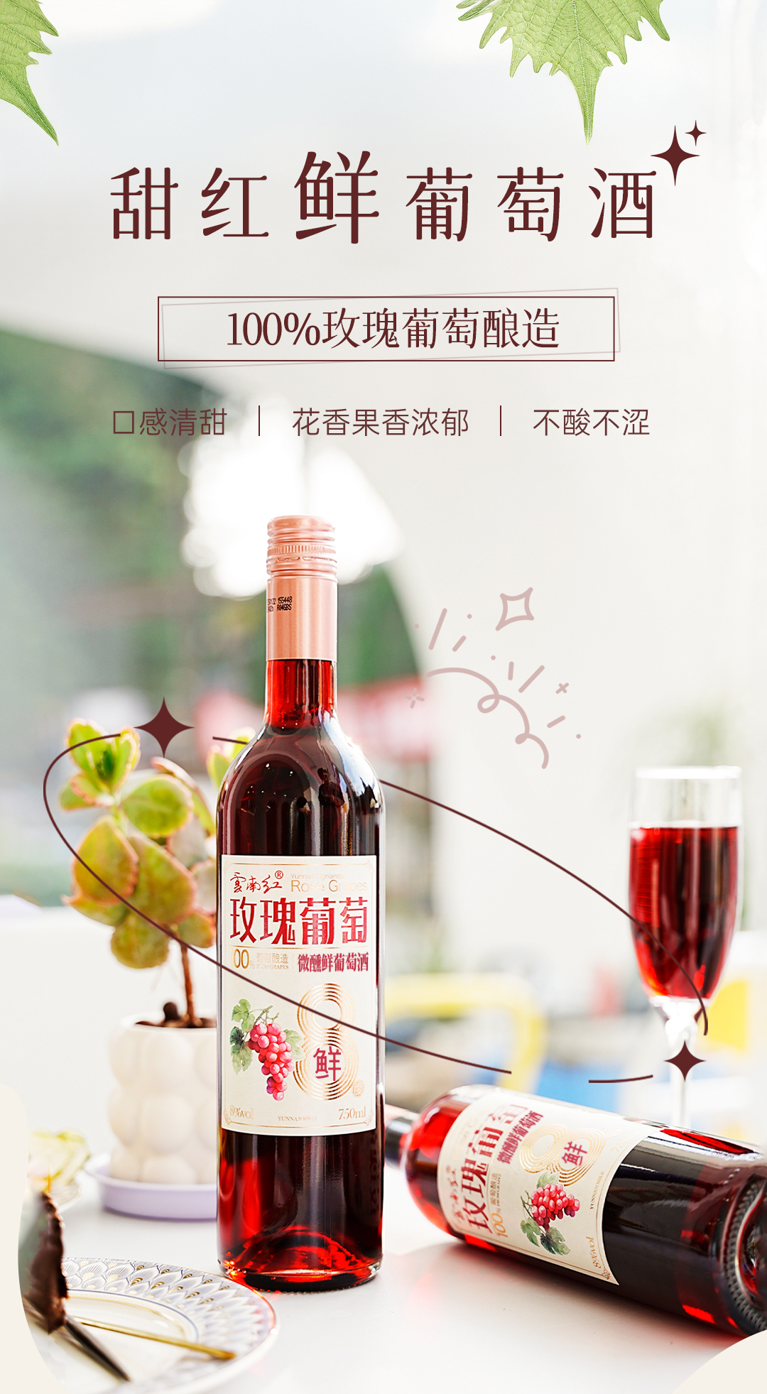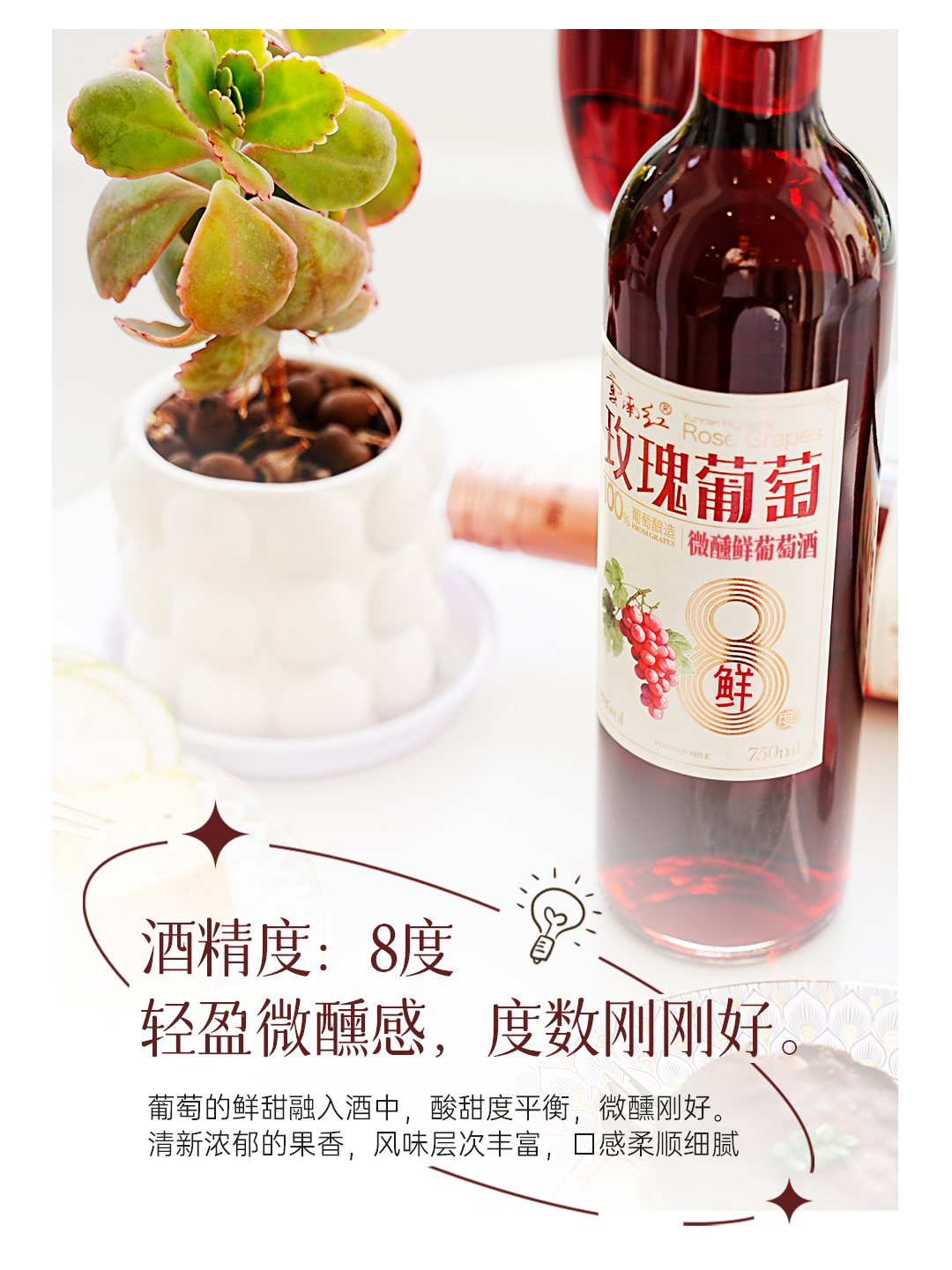 云南红酒庄鲜酒玫瑰蜜甜红葡萄酒3度/5度/8度750ml弥勒酒庄