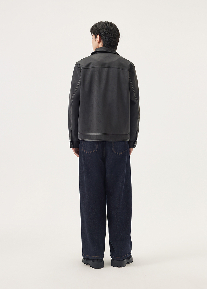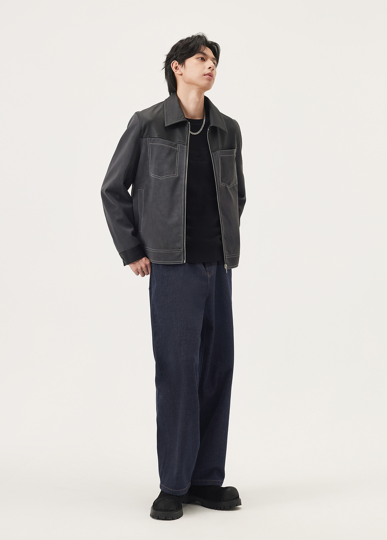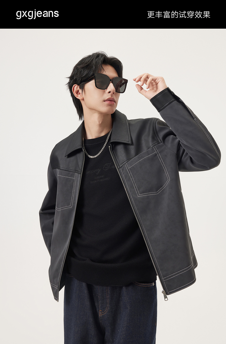 gxg.jeans男装 pu皮拼接通勤休闲行政夹克翻领外套男 25秋热卖