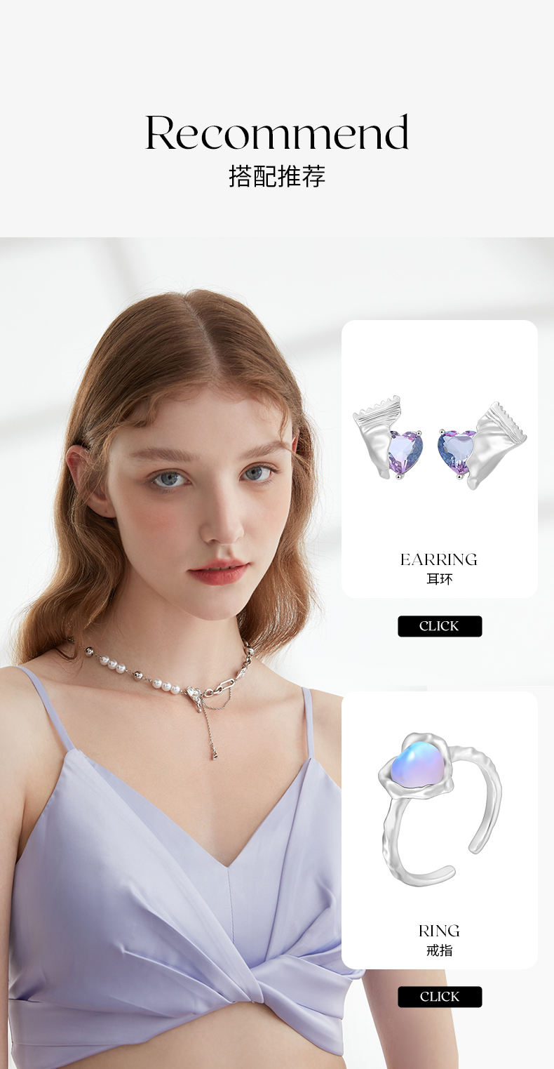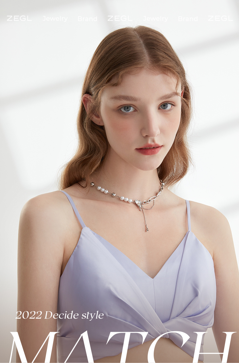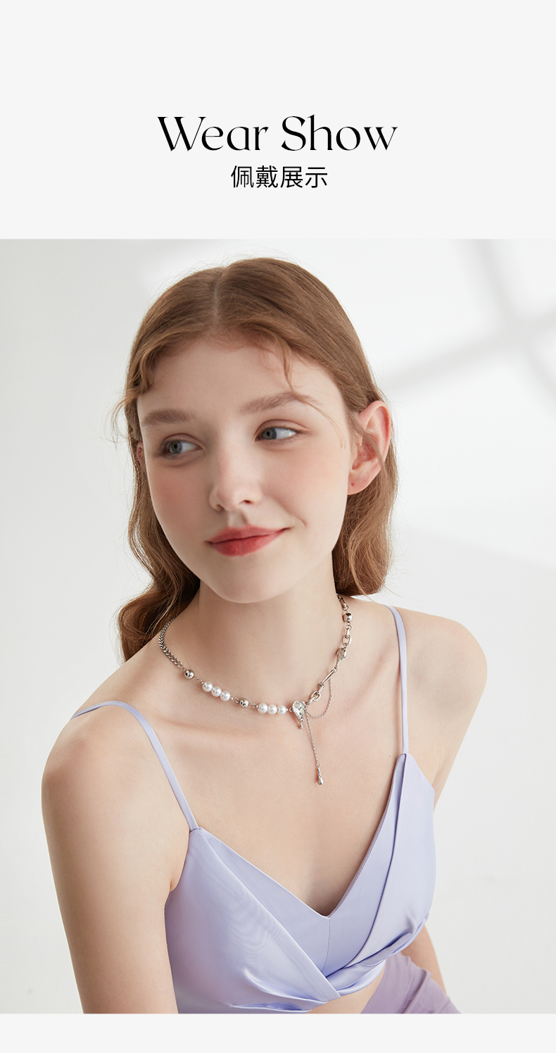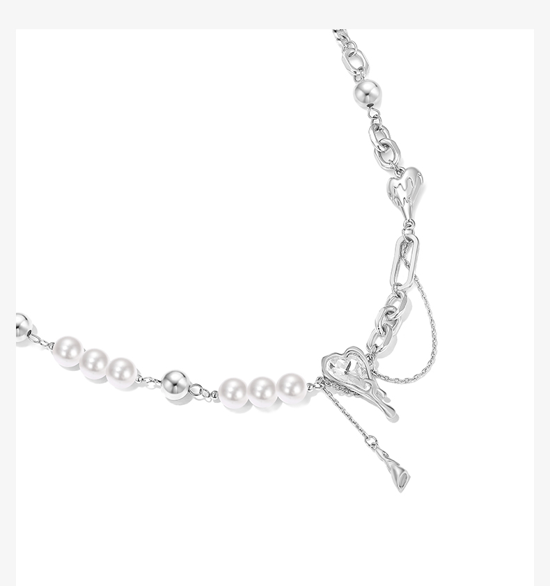 ZEGL爱心拼接项链女轻奢小众高级感人造珍珠锁骨链配饰2022年新款