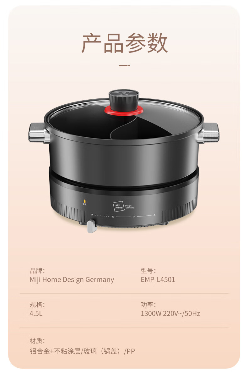 米技生活(miji)德国米技多功能锅*电火锅一锅多用 EMP-L4501 时尚灰
