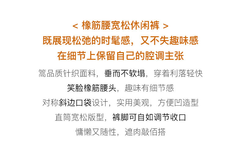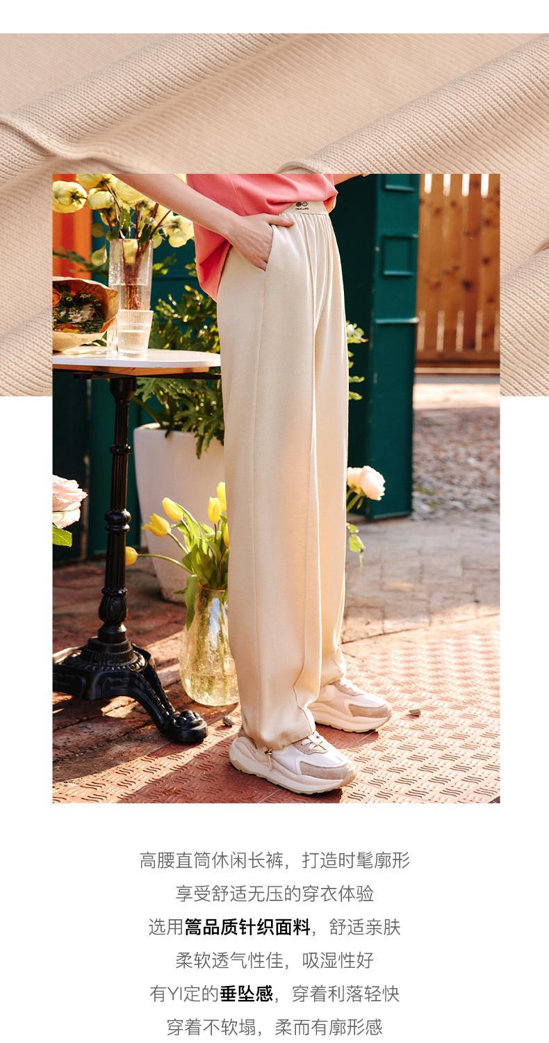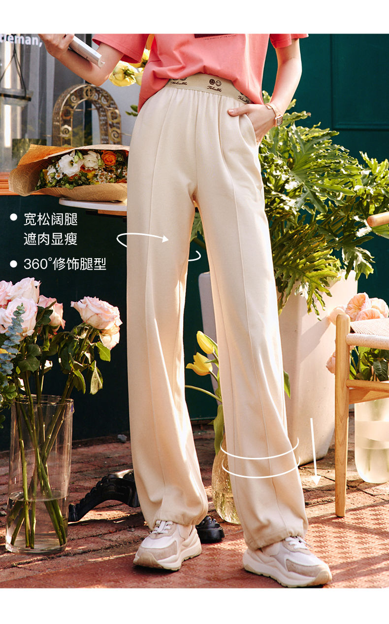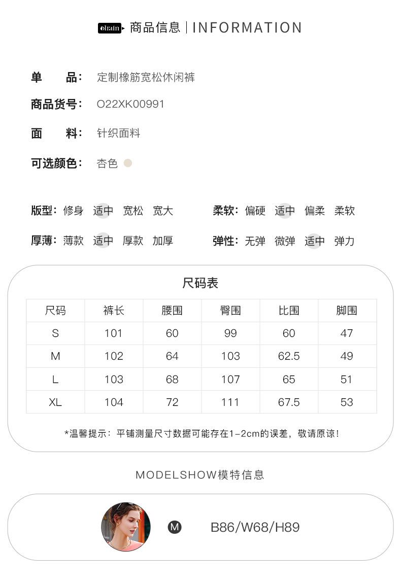 欧芮儿休闲裤女夏季2022新款高腰时尚宽松松紧腰直筒阔腿运动裤子