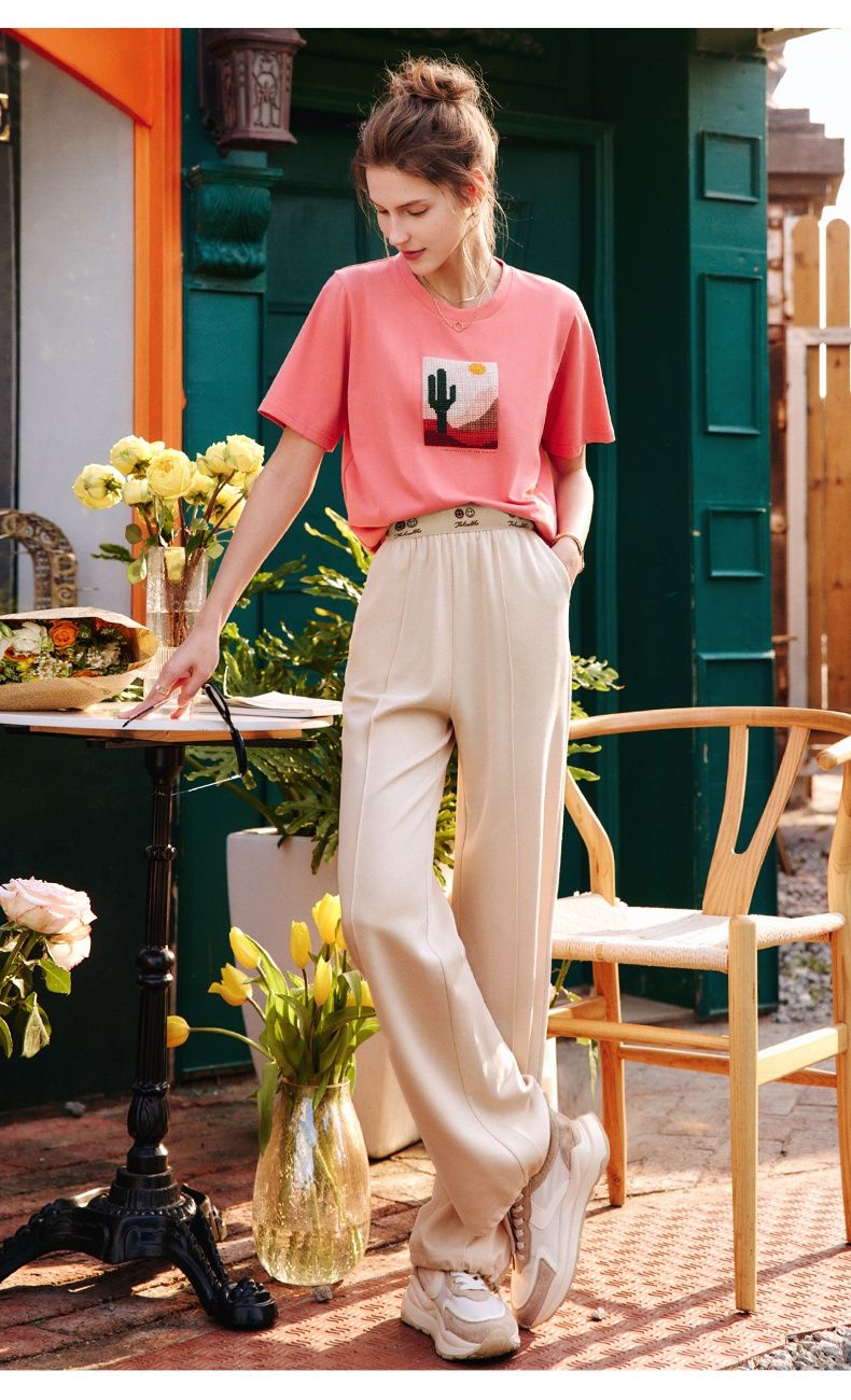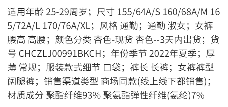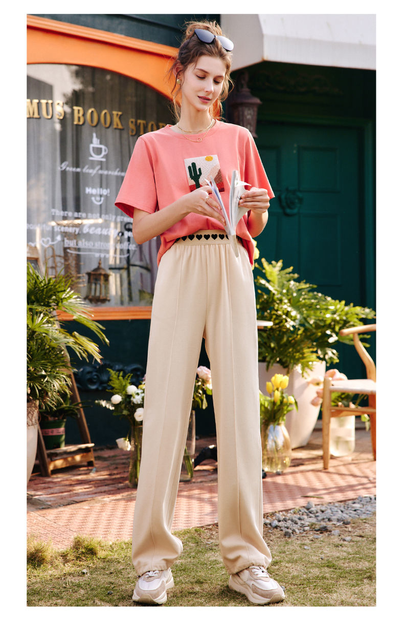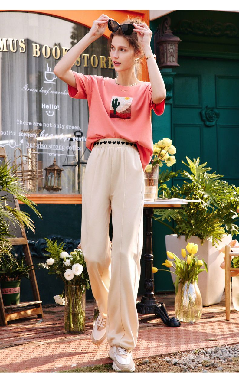欧芮儿休闲裤女夏季2022新款高腰时尚宽松松紧腰直筒阔腿运动裤子