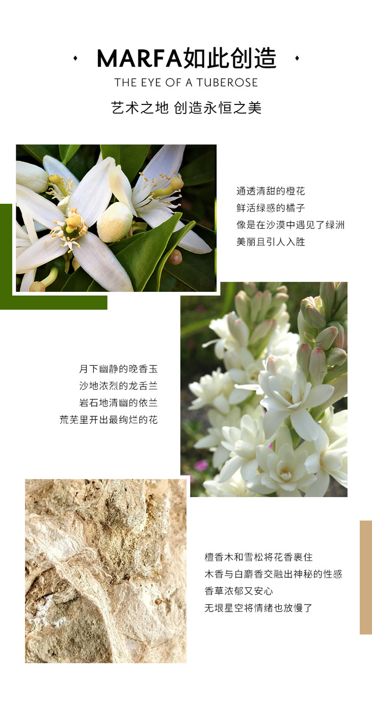 第六瓶,marfa,玛法。是大众接受度比较强的白花味香水,晚香玉的气味非常突出,幽静的花香加上沉静的木调,不是香到呛人令人不适的花香味香水,甜美但是没有一丝脂粉味,一点也不轻浮,非常高贵。