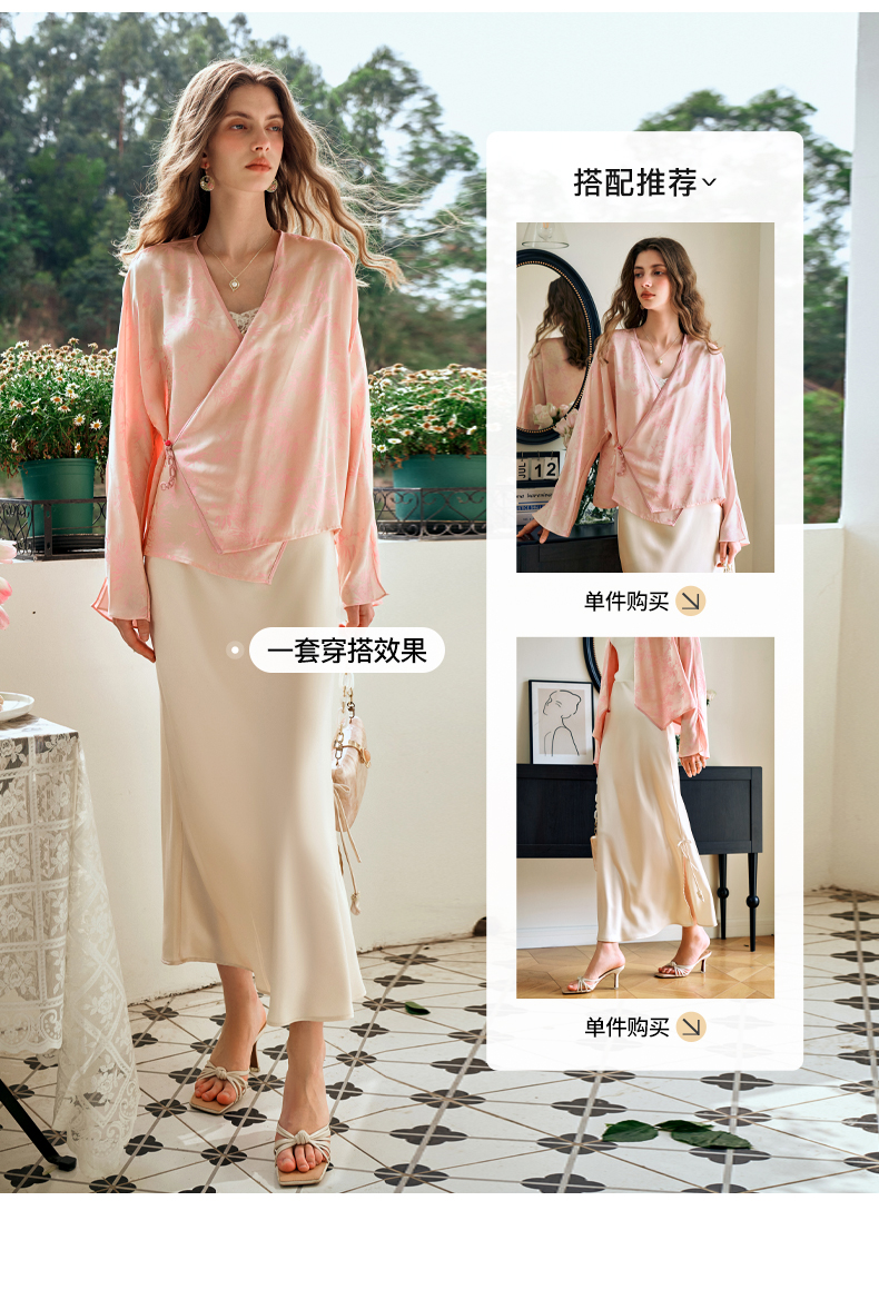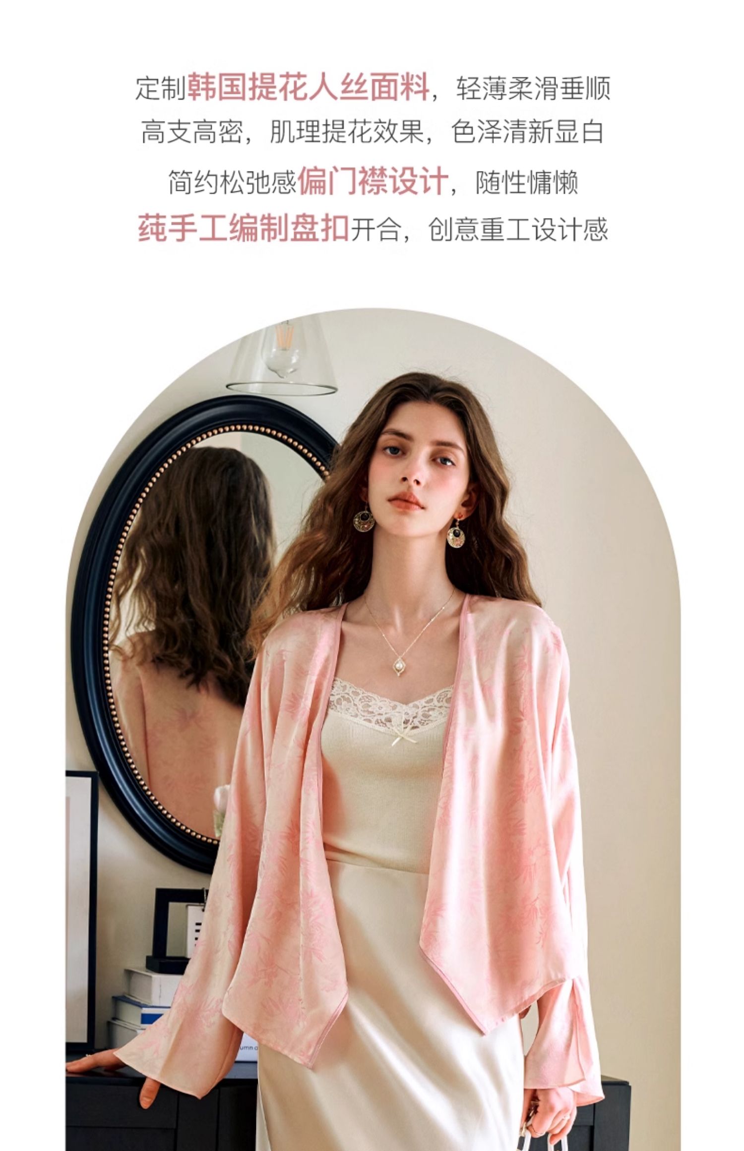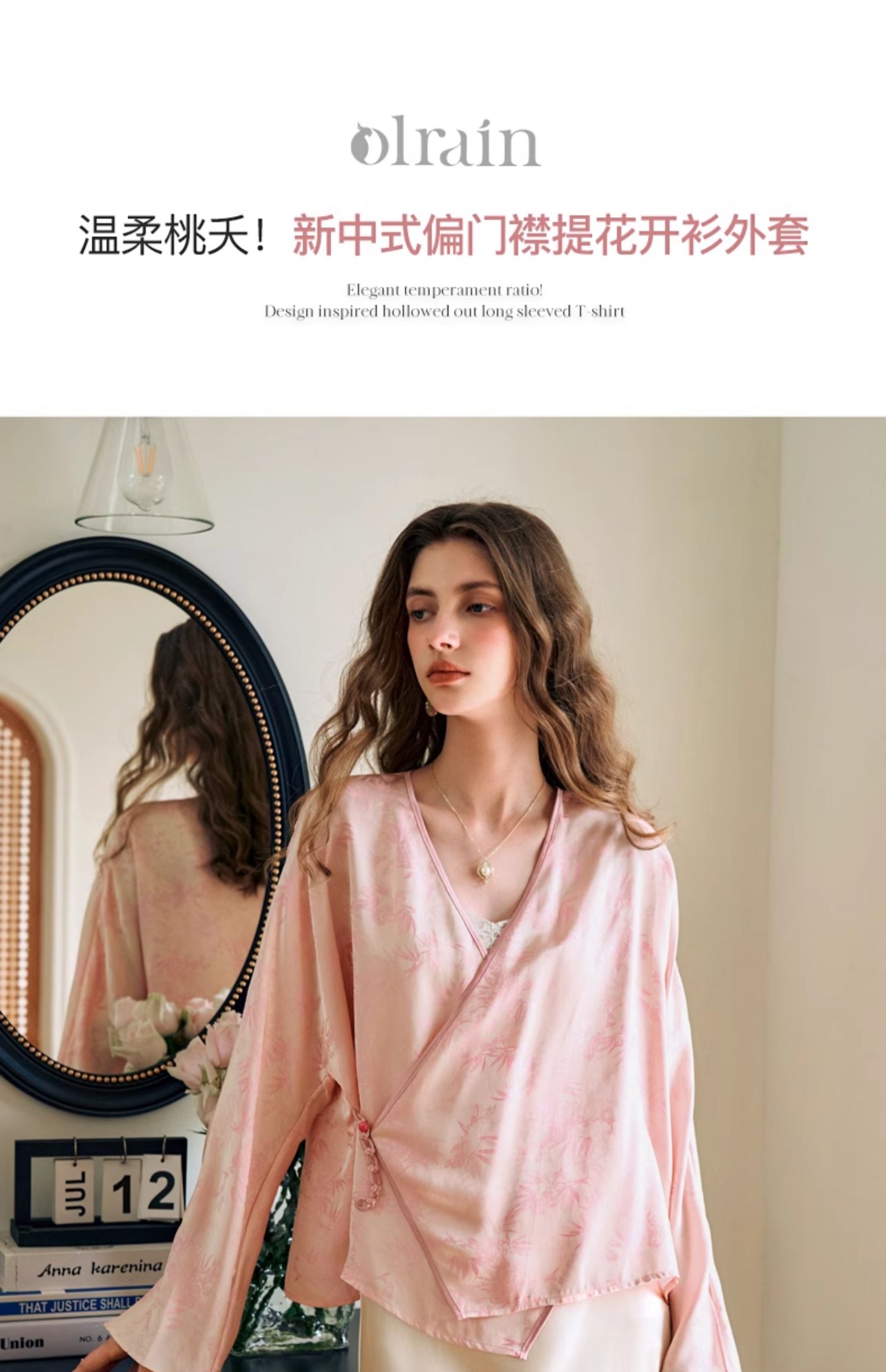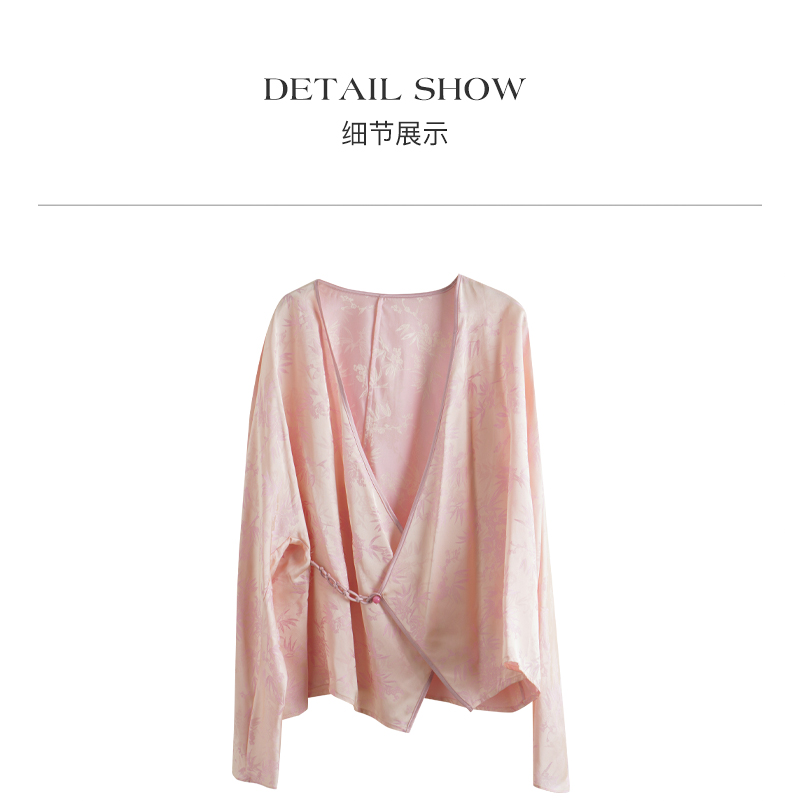 欧芮儿新中式盘扣衬衫开衫上衣夏2024新款斜门襟提花短外套女薄