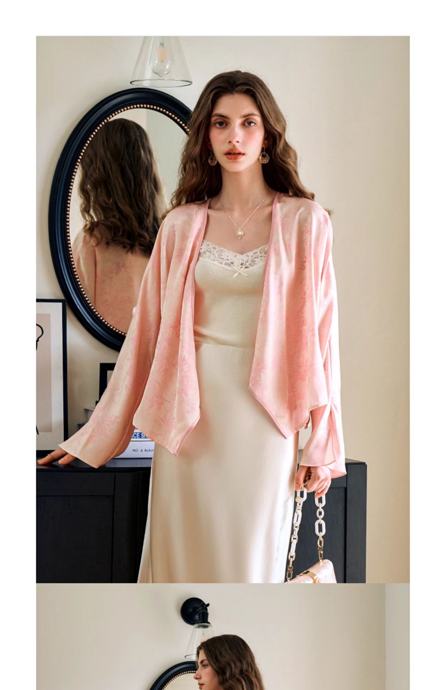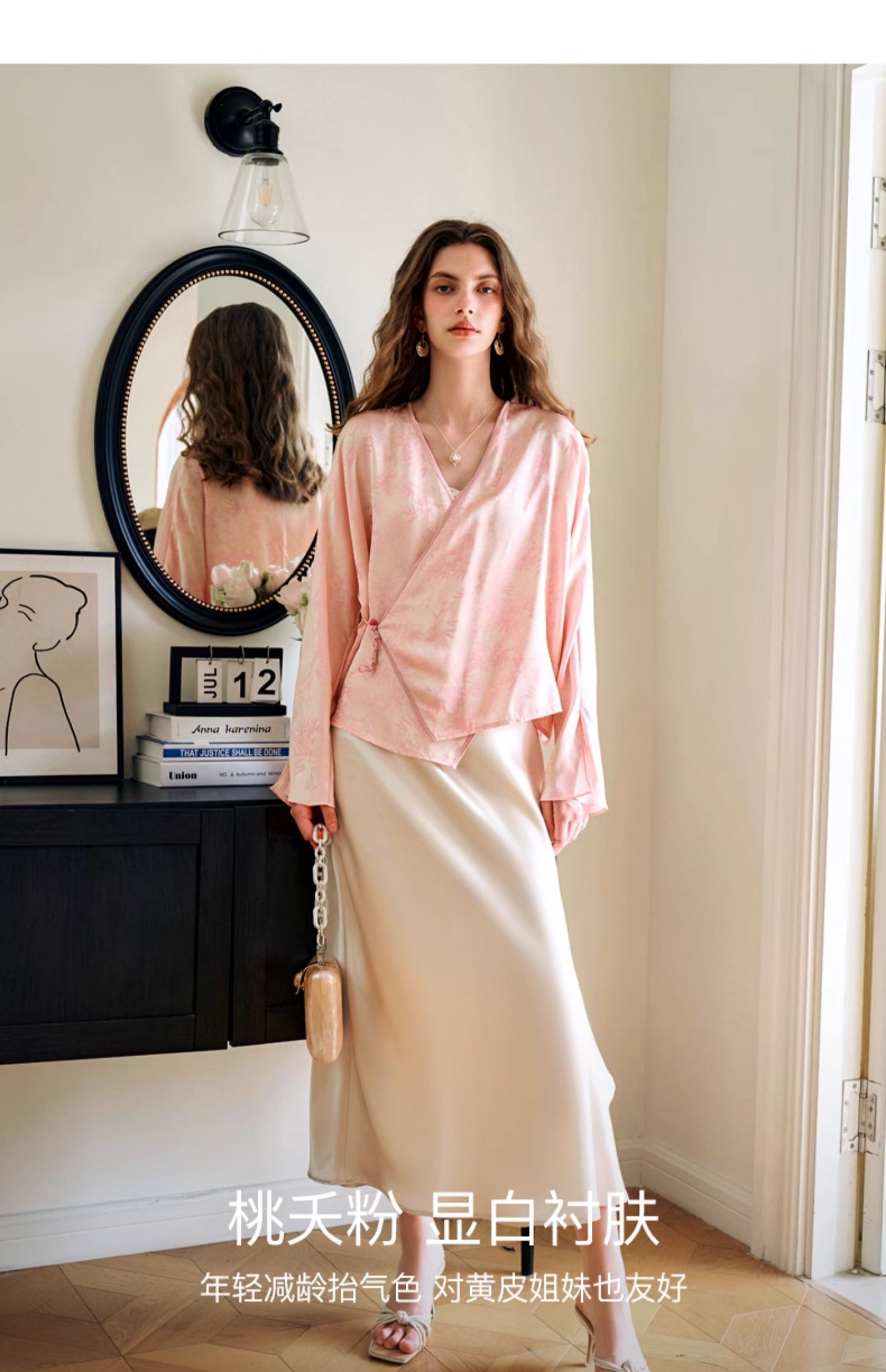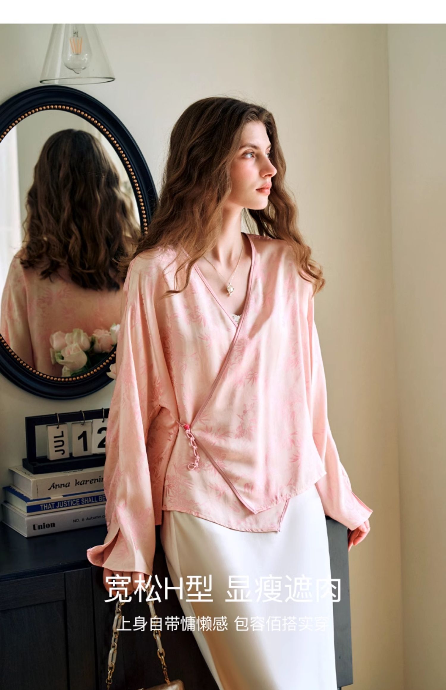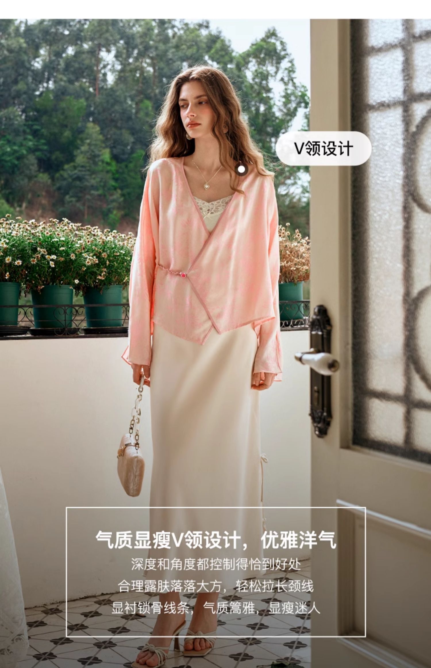 欧芮儿新中式盘扣衬衫开衫上衣夏2024新款斜门襟提花短外套女薄