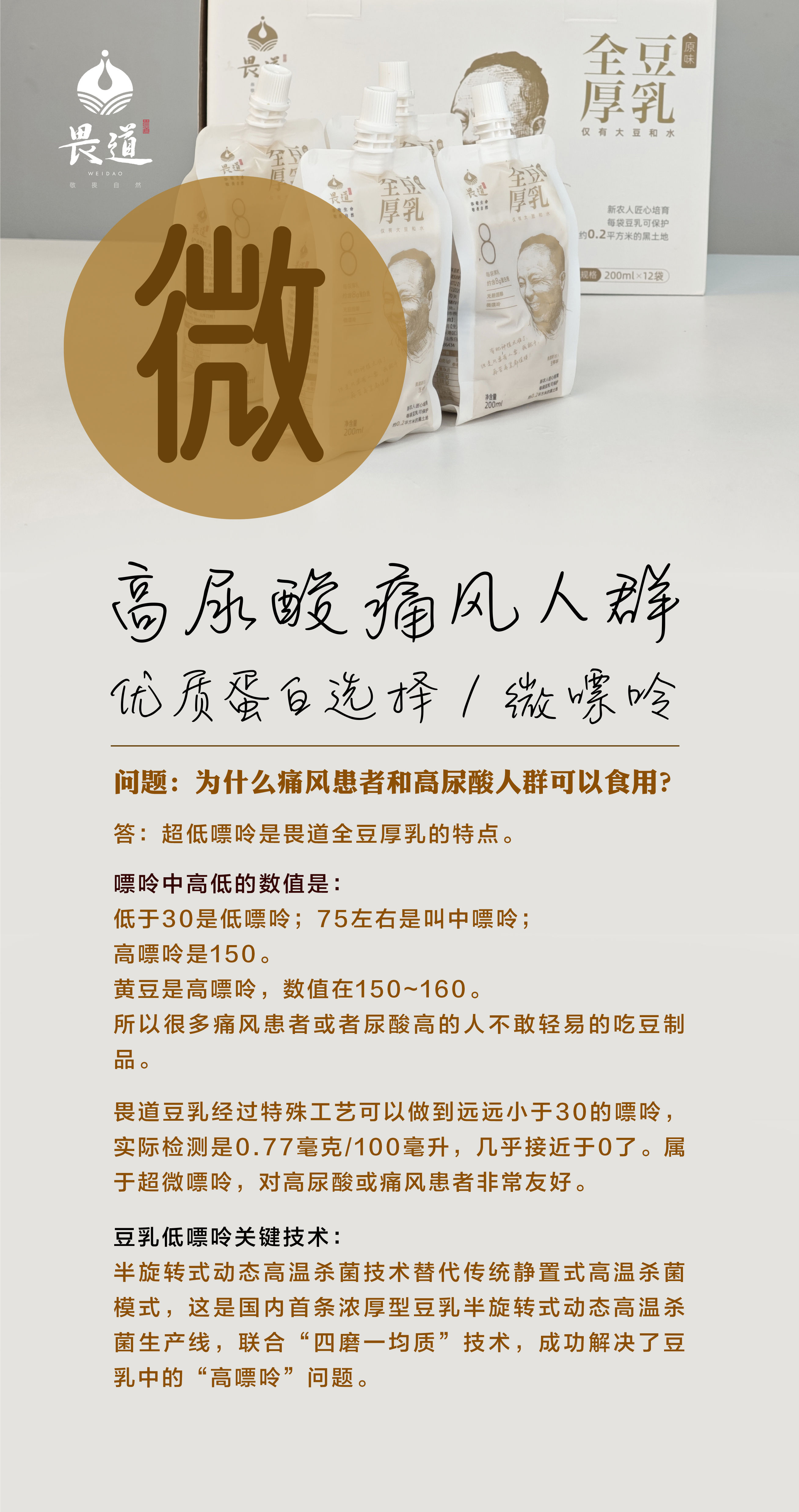 答:超低嘌呤是畏道全豆厚乳的特点。
