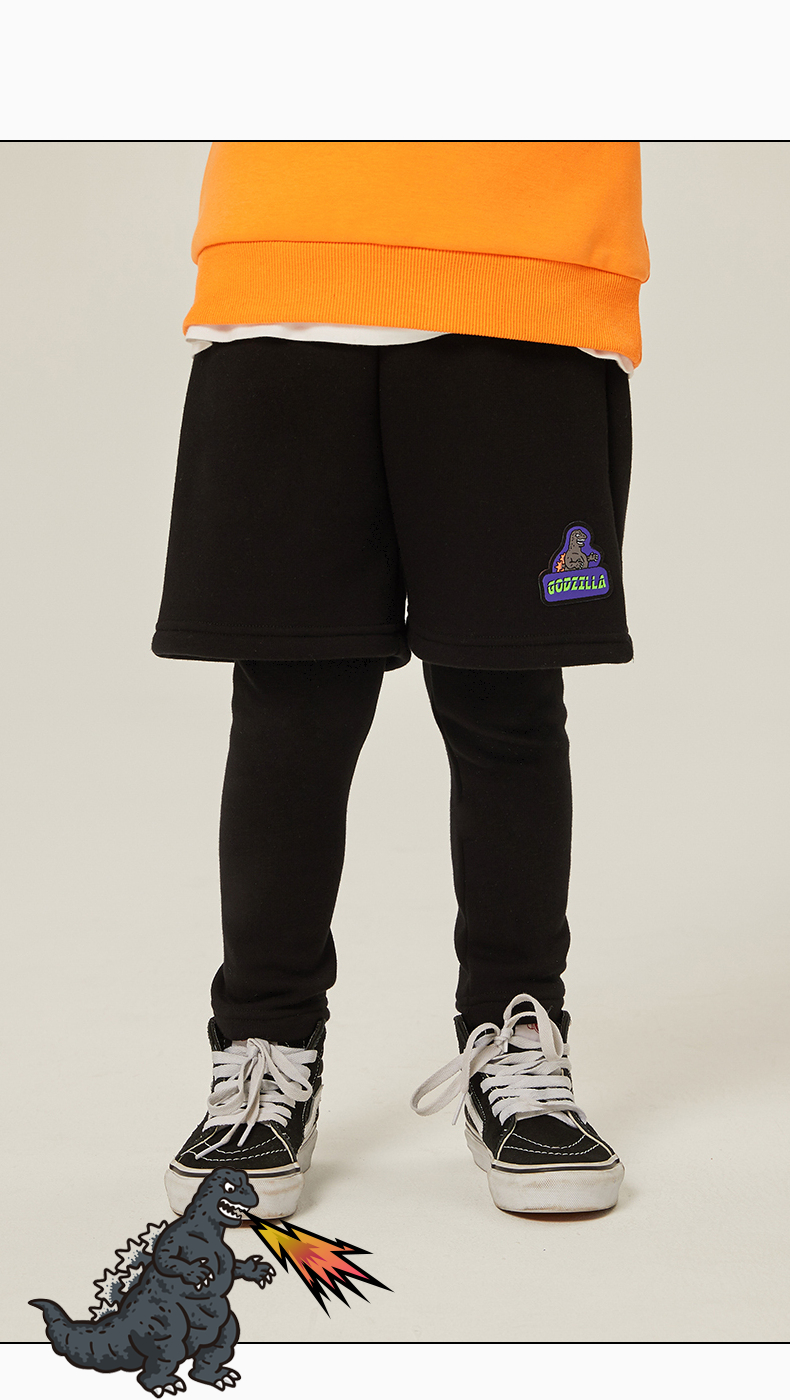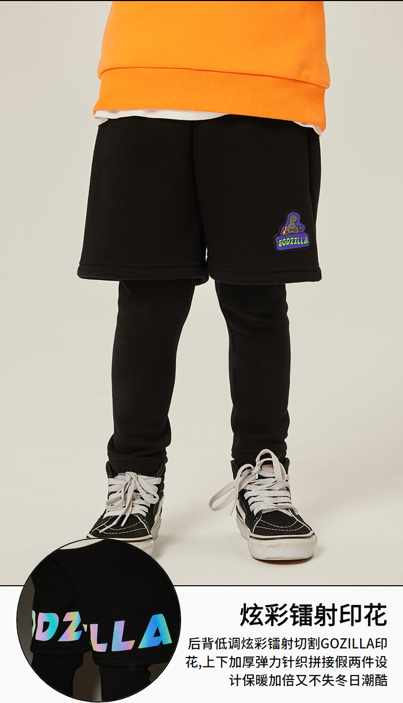 【内购】漫画家童装裤子冬季新品不倒绒镭射印花假两件针织长裤