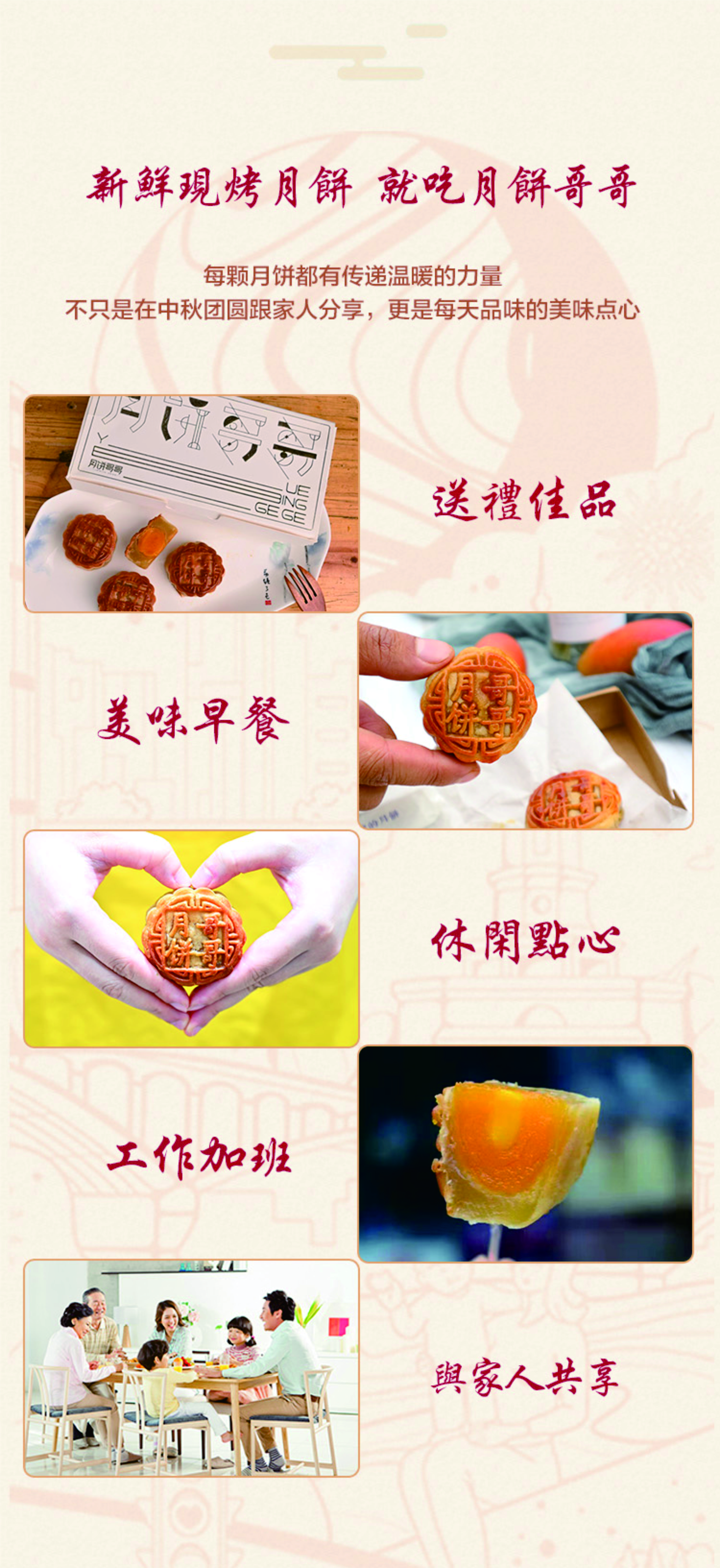 5、小个月饼:每个月饼采用黄金比例,只做60g,每一口都能吃到莲蓉和蛋黄,咸甜莲蓉,吃起来没有负担,不用担心吃不完。