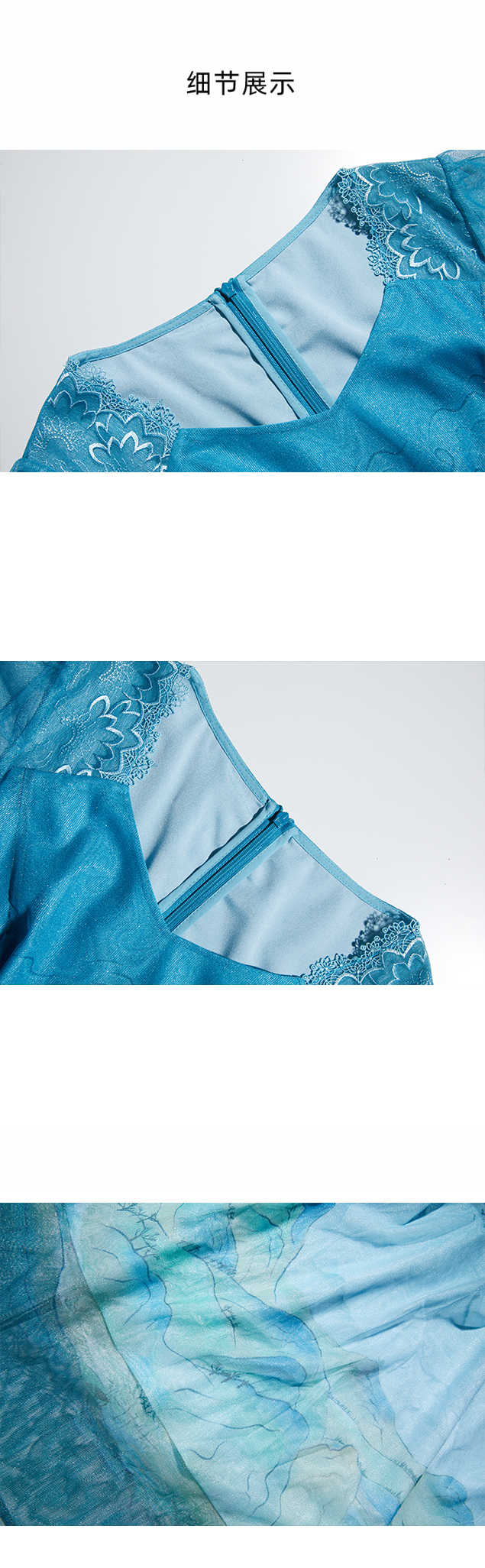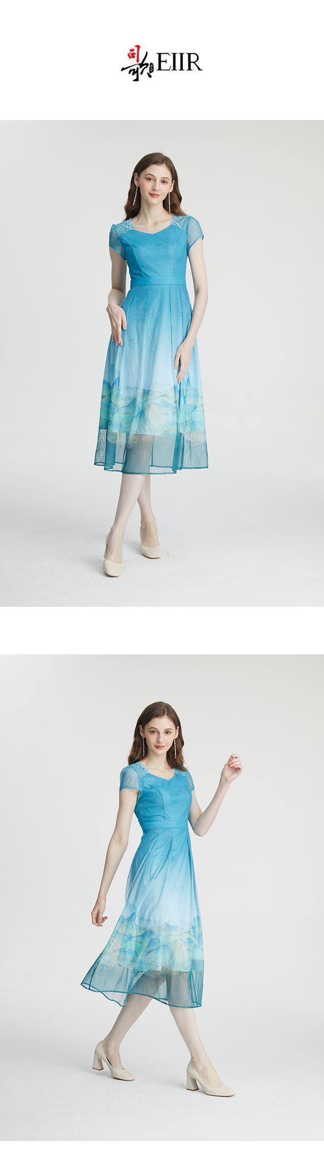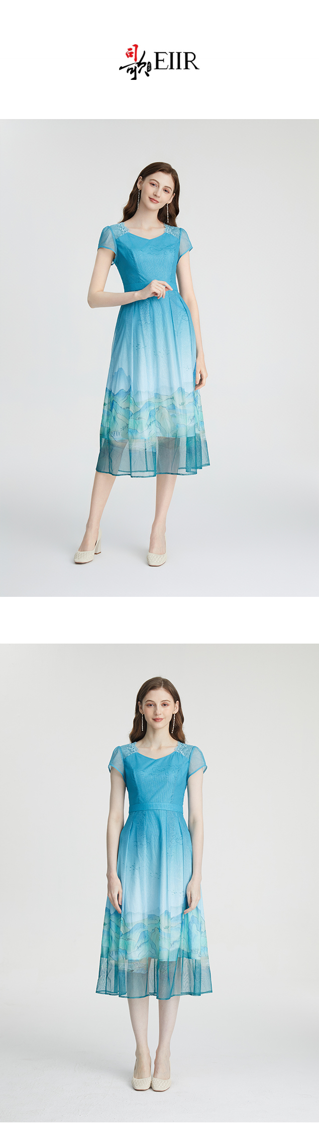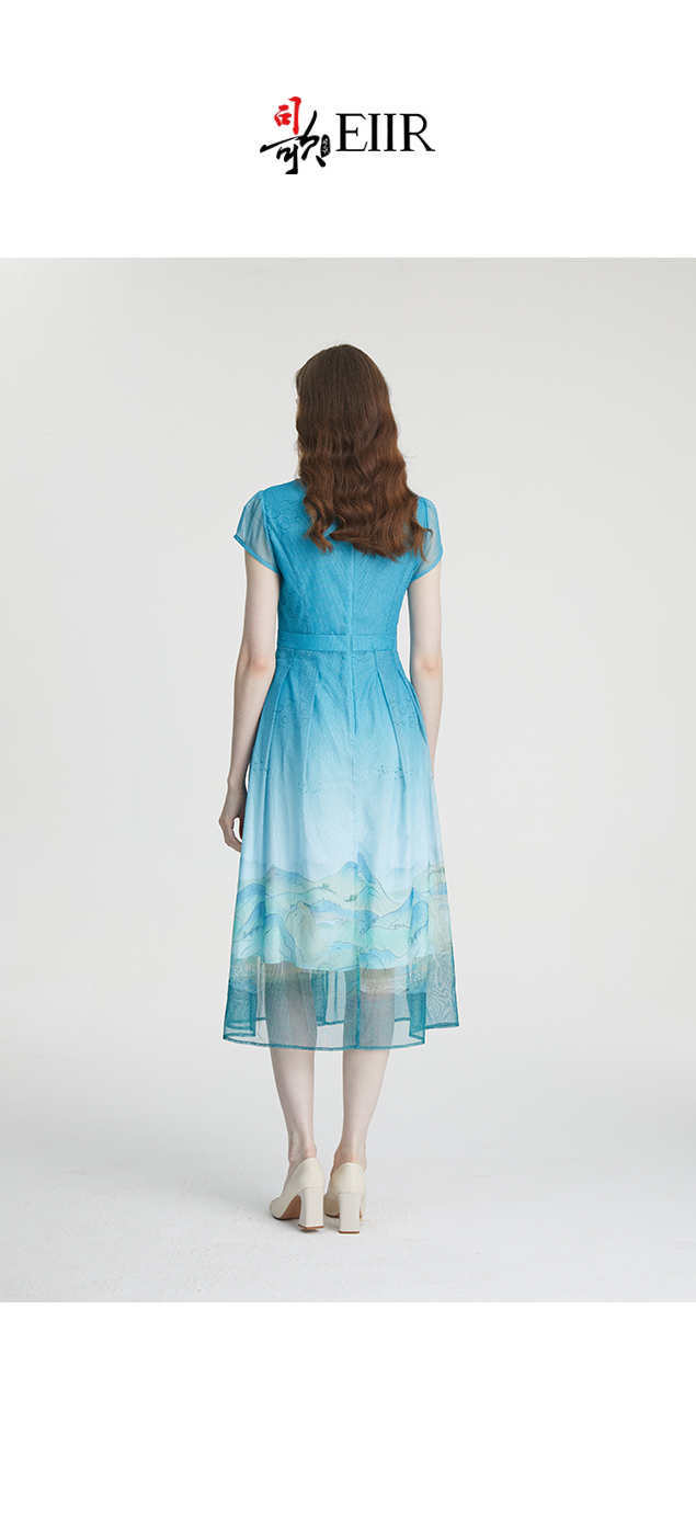 司歌连衣裙丝质弹力印花渐变国风改良旗袍短袖A891159X