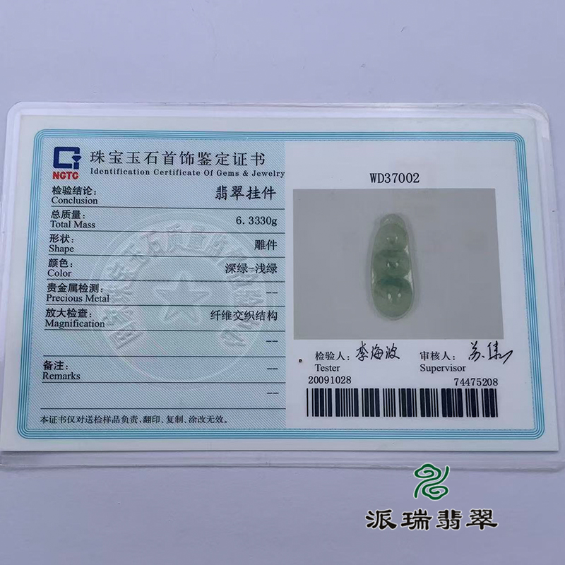 派瑞翡翠 翡翠挂件 糯种 绿色