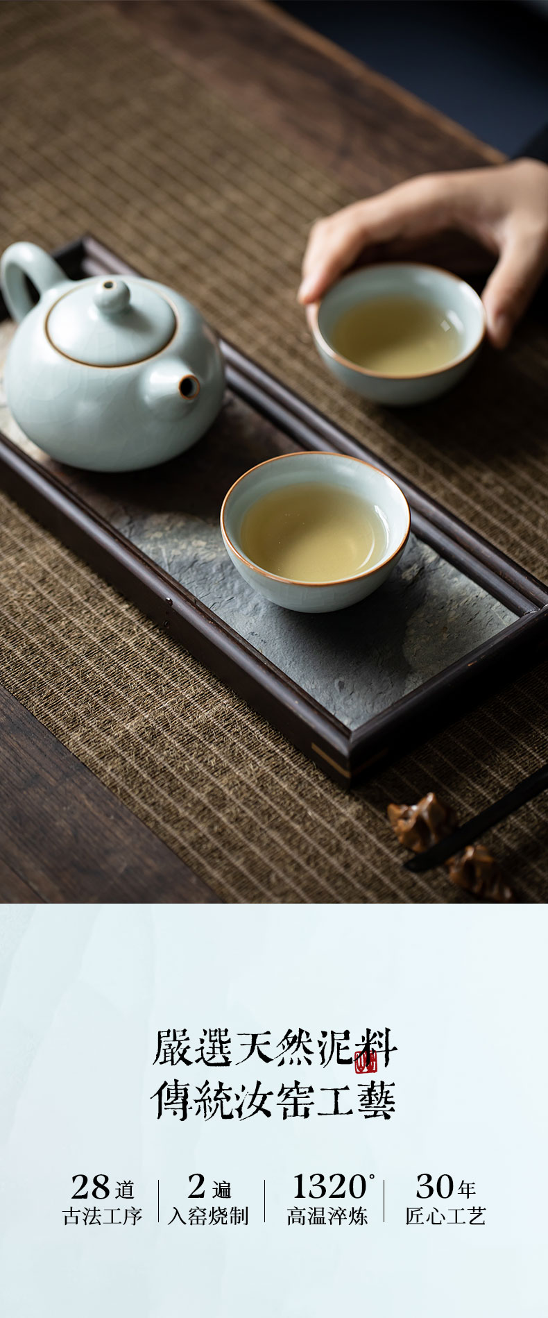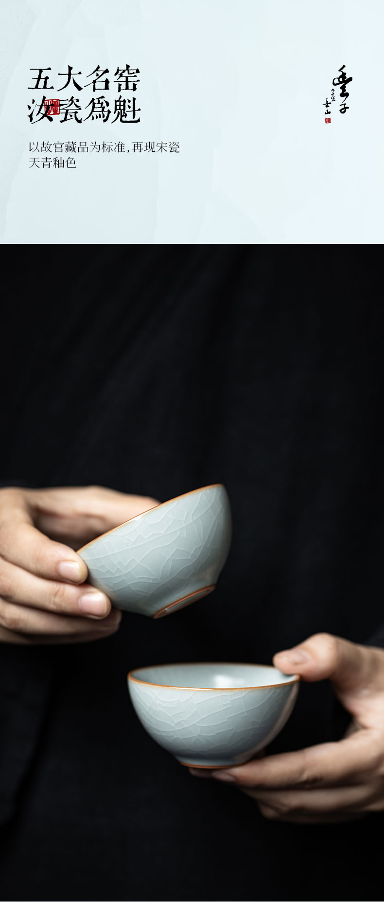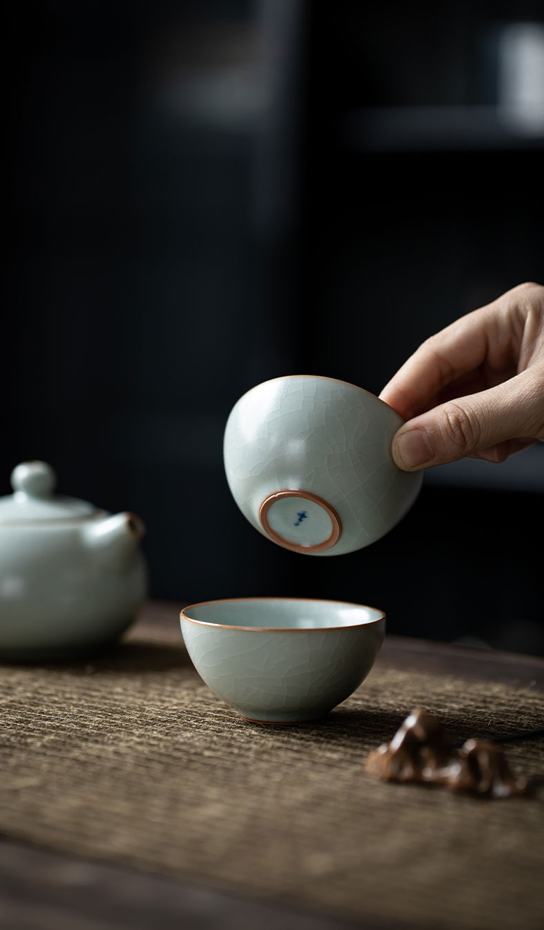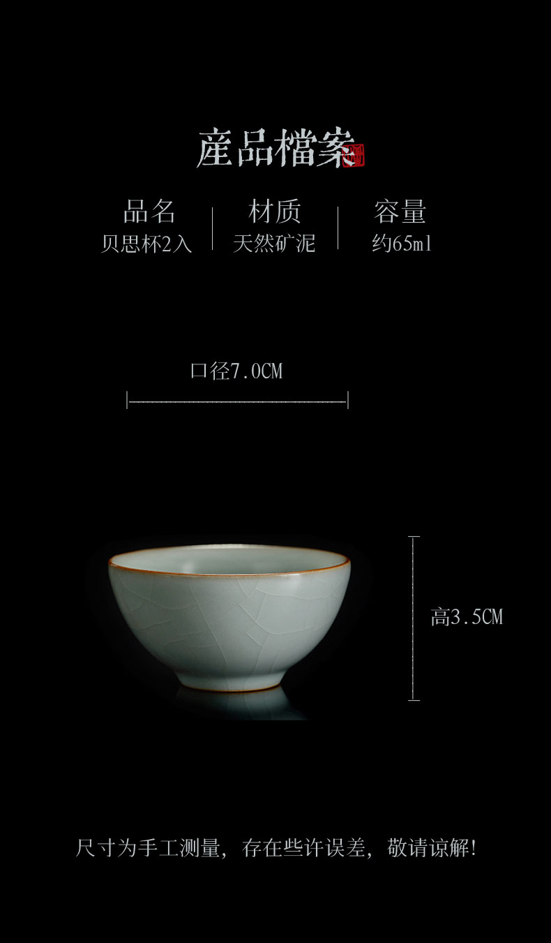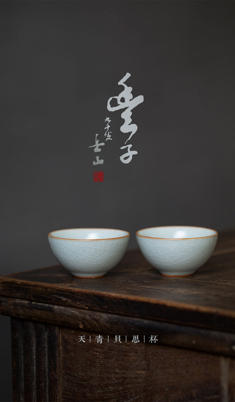 【丰子汝窑】【天青贝思杯2入】茶杯手工开片主人杯陶瓷汝瓷单杯子个人品茗杯功夫茶具