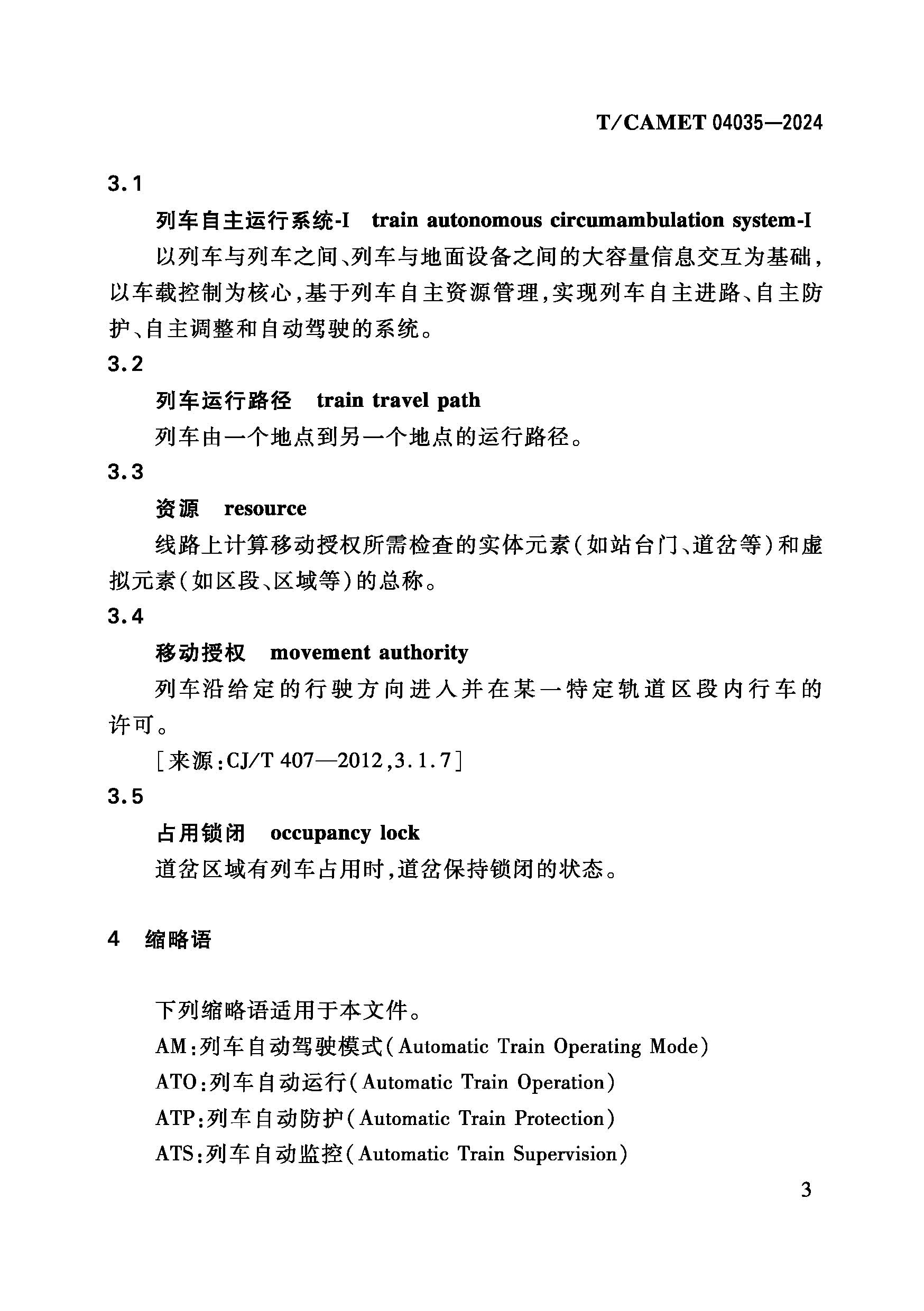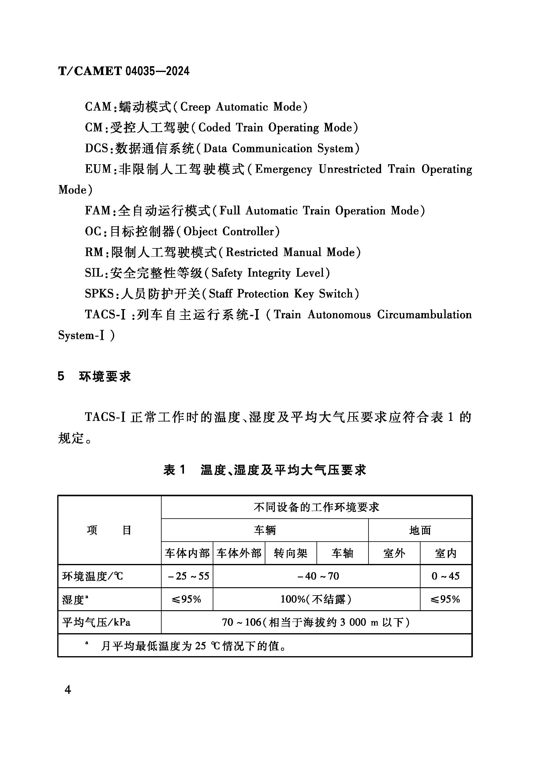 7127 城市轨道交通 列车自主运行系统-Ⅰ(TACS-Ⅰ) 技术规范(T/CAMET 04035-2024)