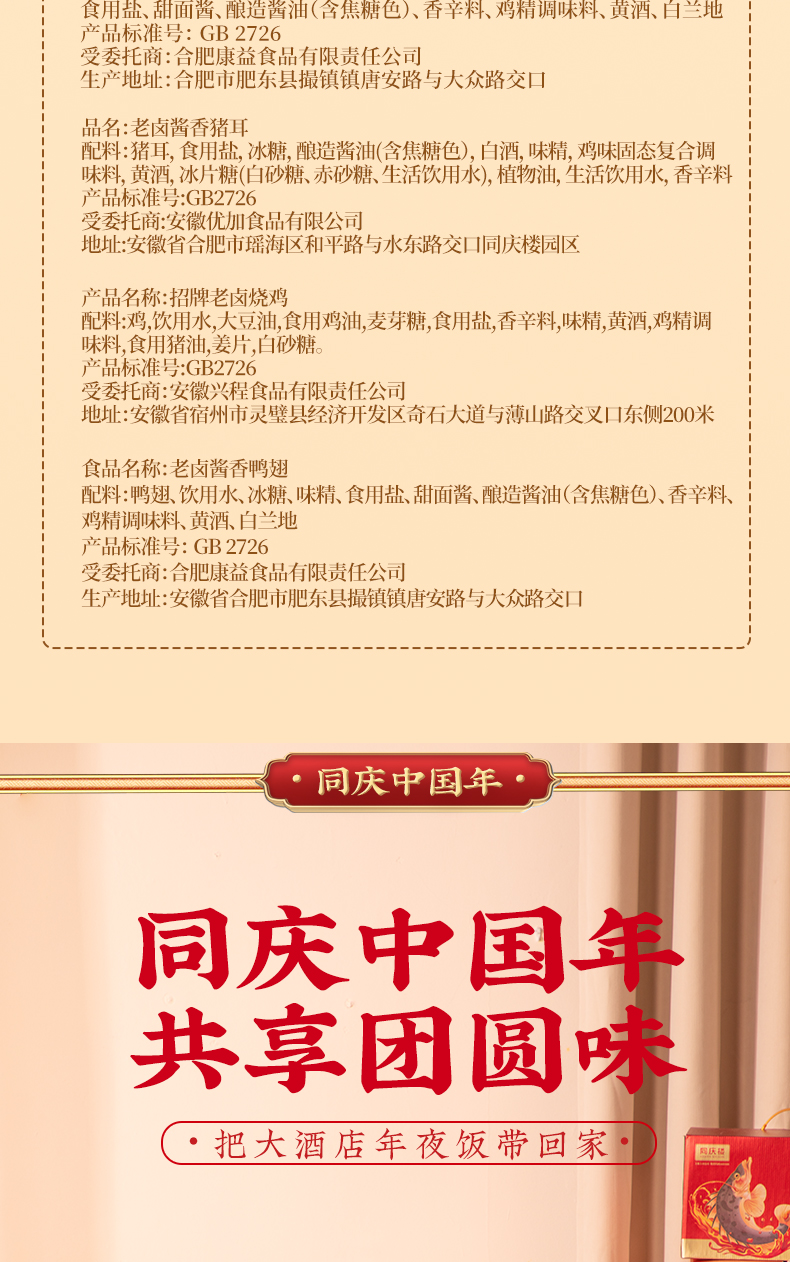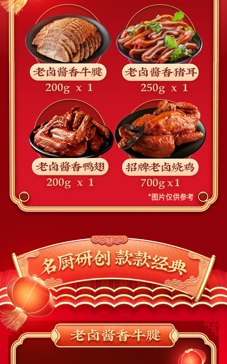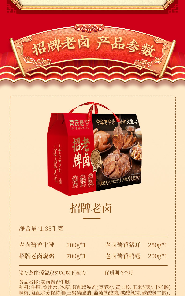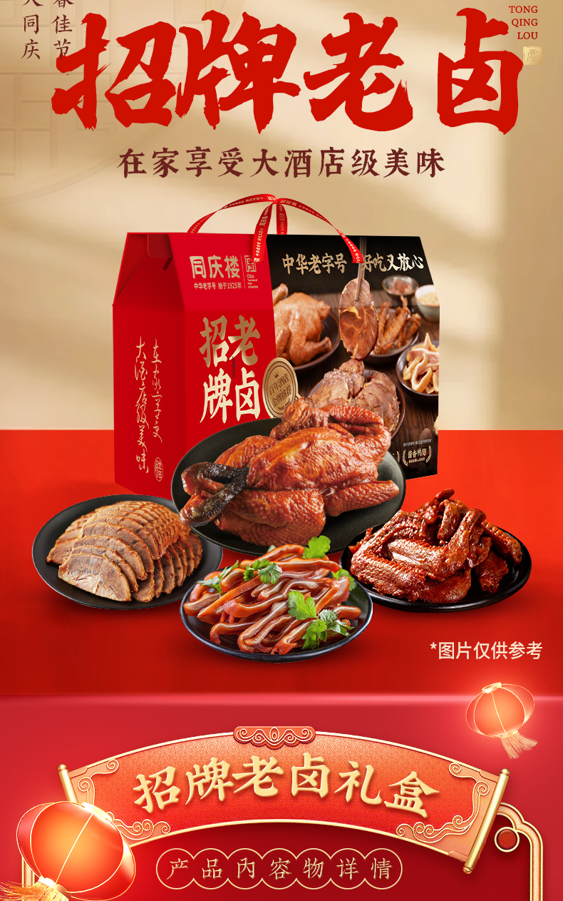 同庆楼 老卤礼盒1350g 烧鸡牛腱鸭翅猪耳 名厨菜 肉质劲道 新春佳节礼盒 48小时发货