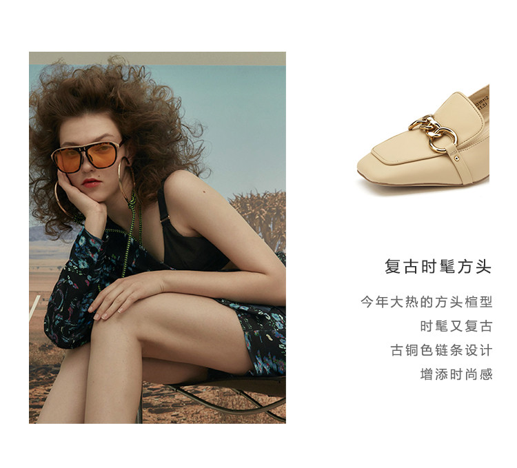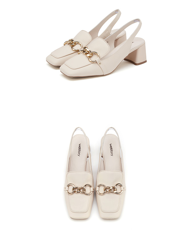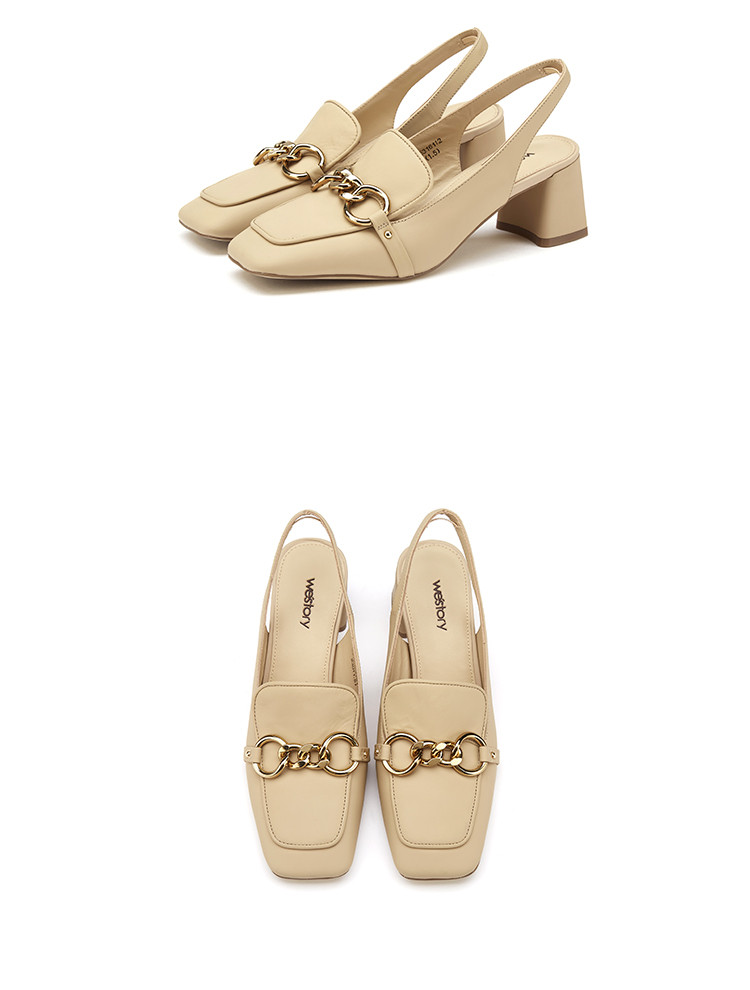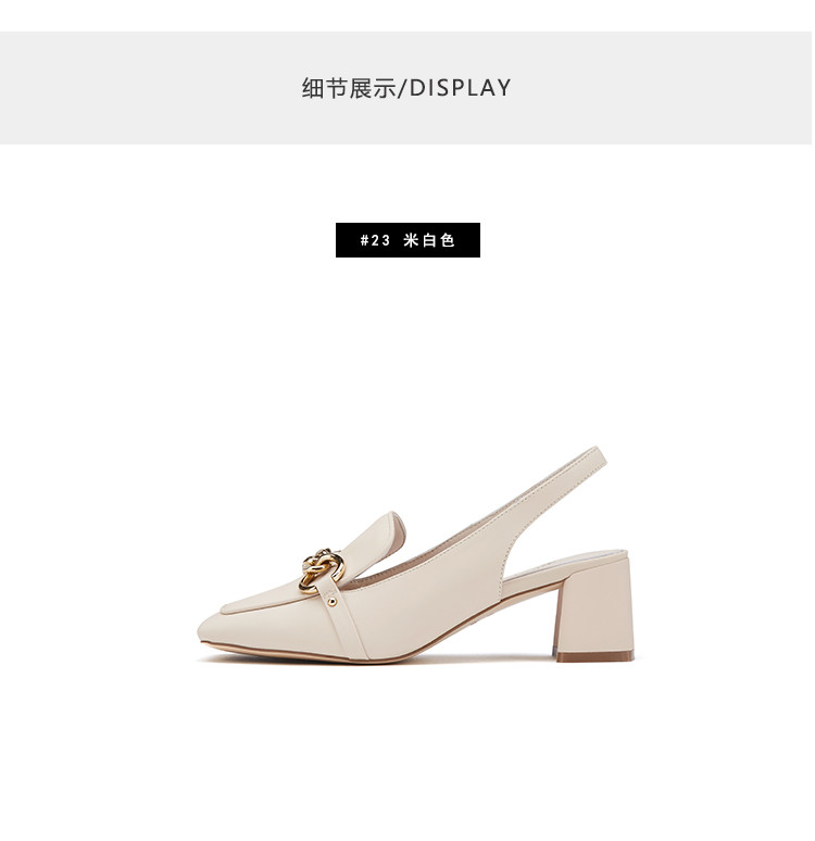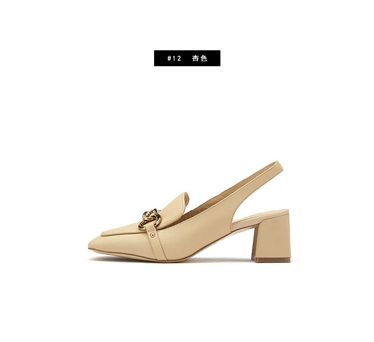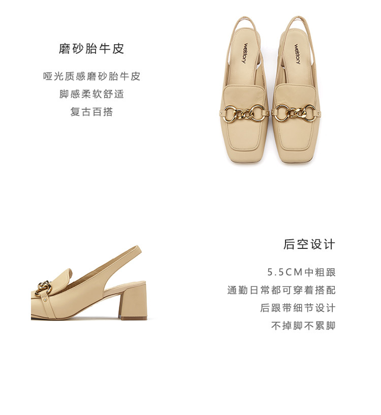 westory女鞋2021夏季新款妈妈鞋方头金属扣通勤舒适中低跟包头凉鞋女S21AH53161
