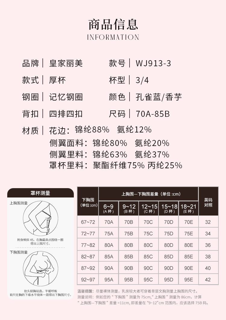 【秒杀品不退不换】皇家丽美厚款夏季有钢圈小胸显大聚拢调整型内衣WJ913-3