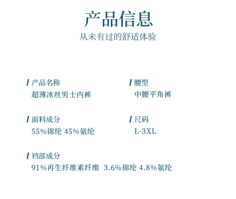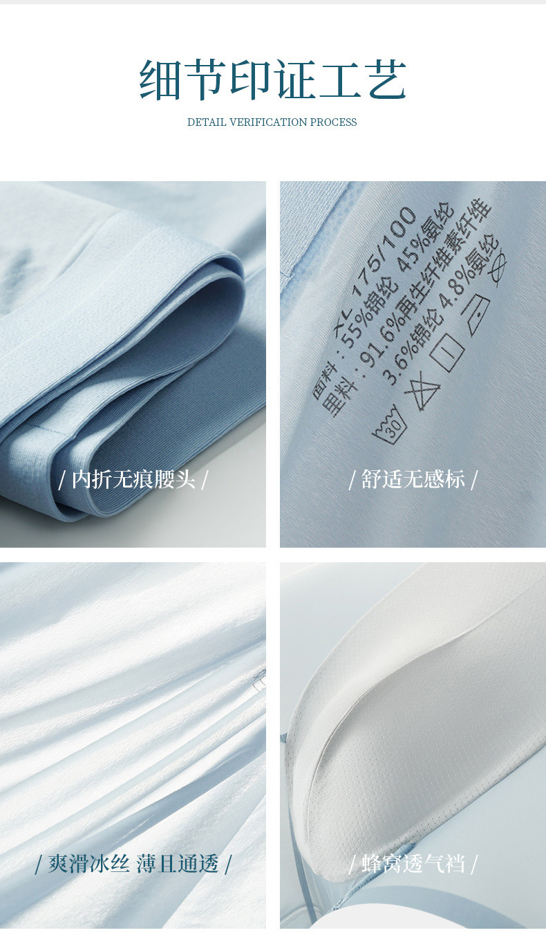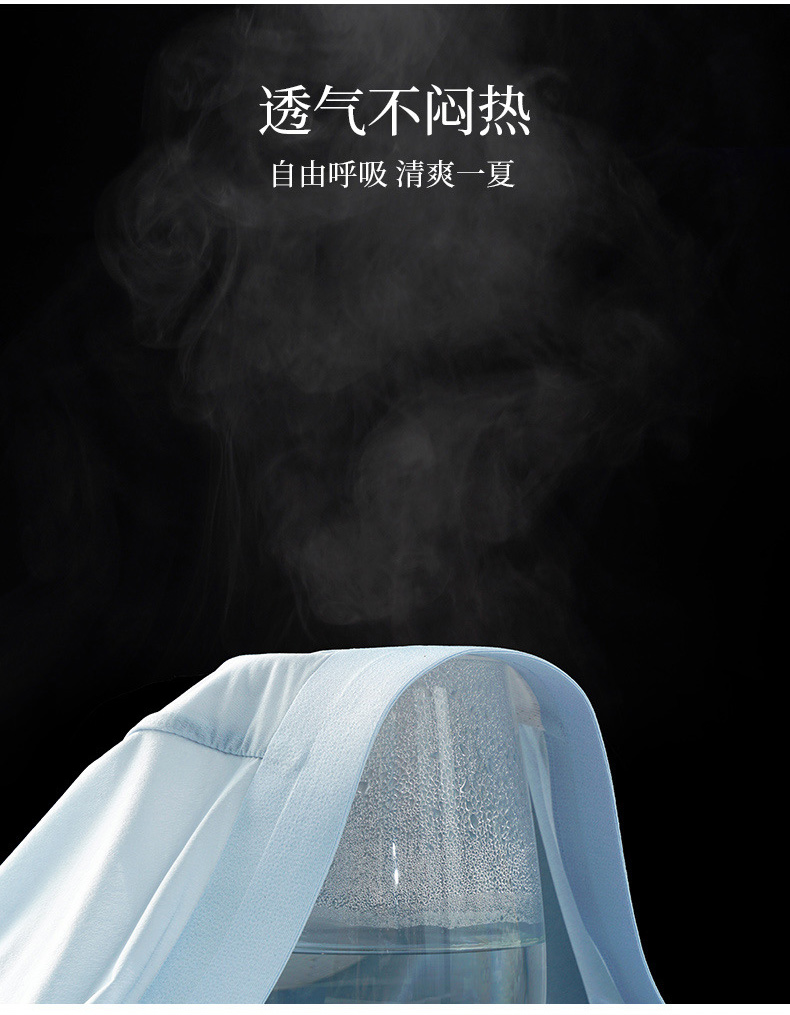 1.采用超薄飘飞冰丝面料,0.01裸感体验,超密针凉感纤维沁透心凉。