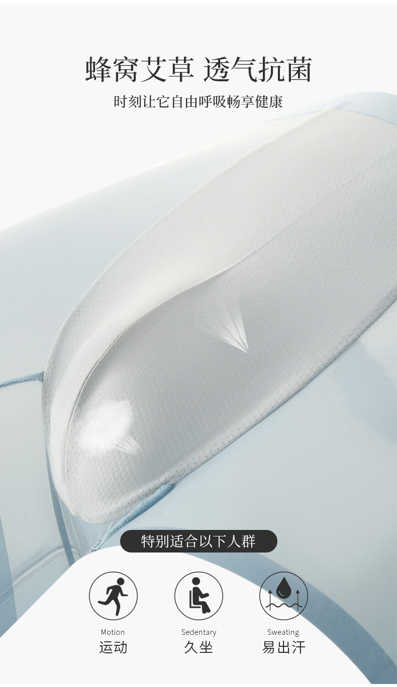 3.蜂窝艾草里裆,透气抗菌,运动、久坐、易出汗人群必备。