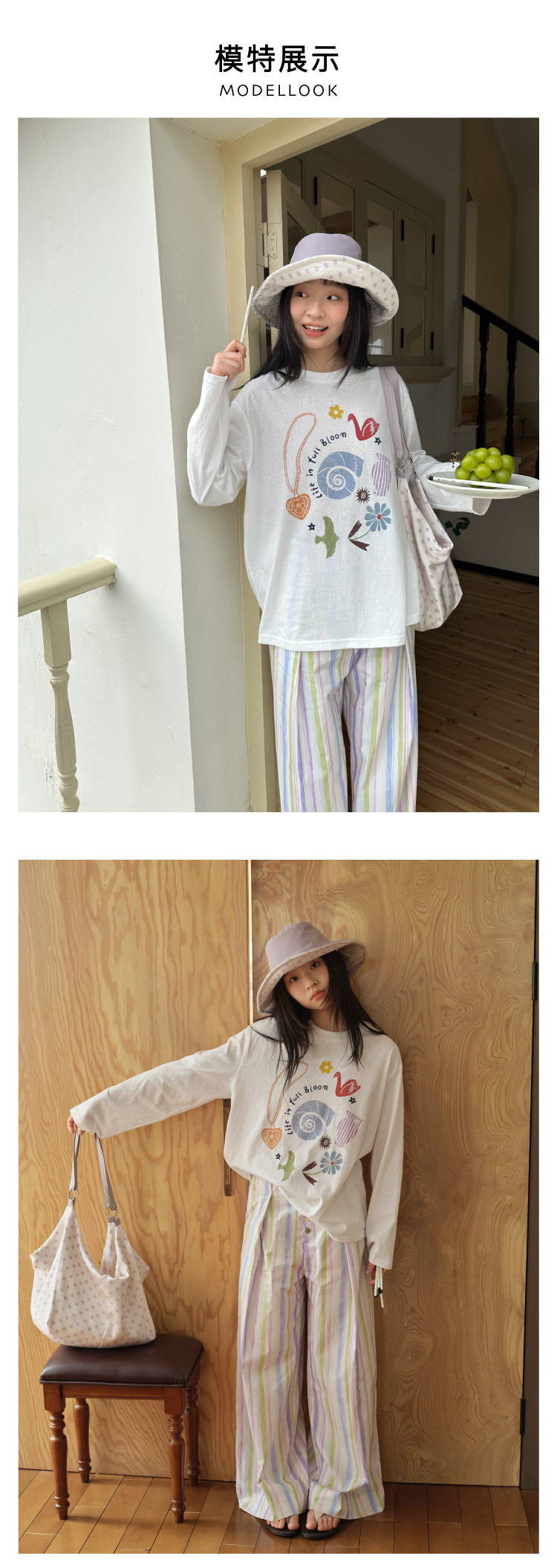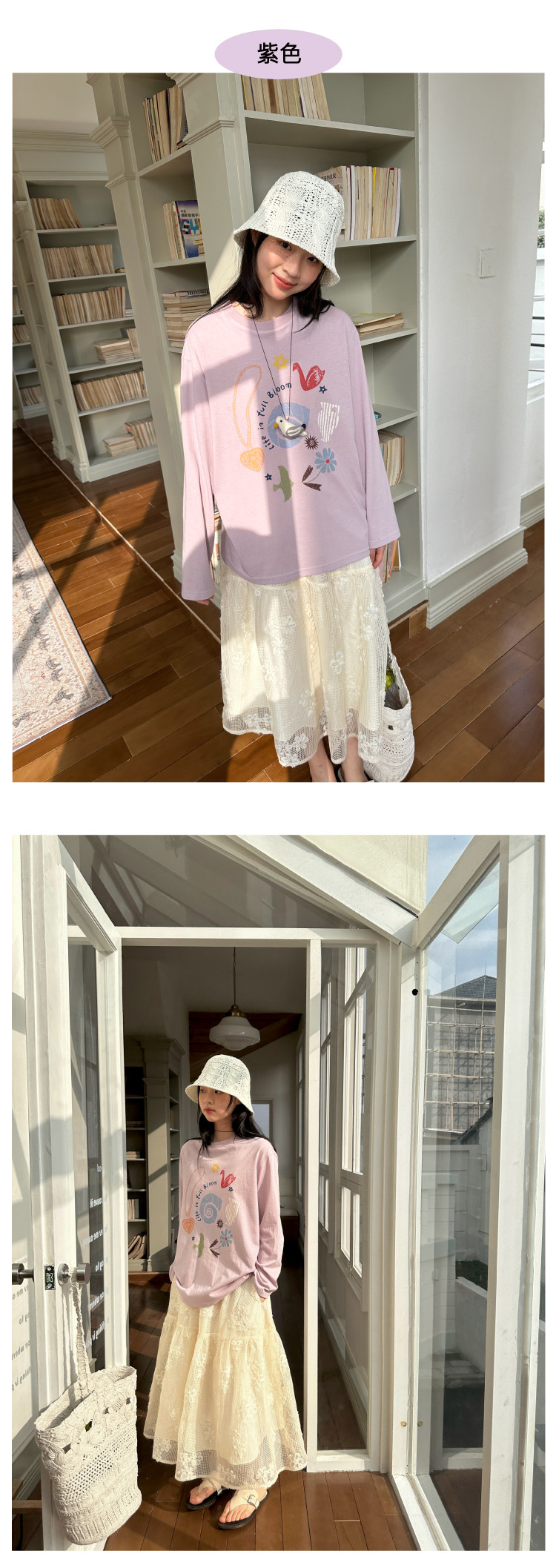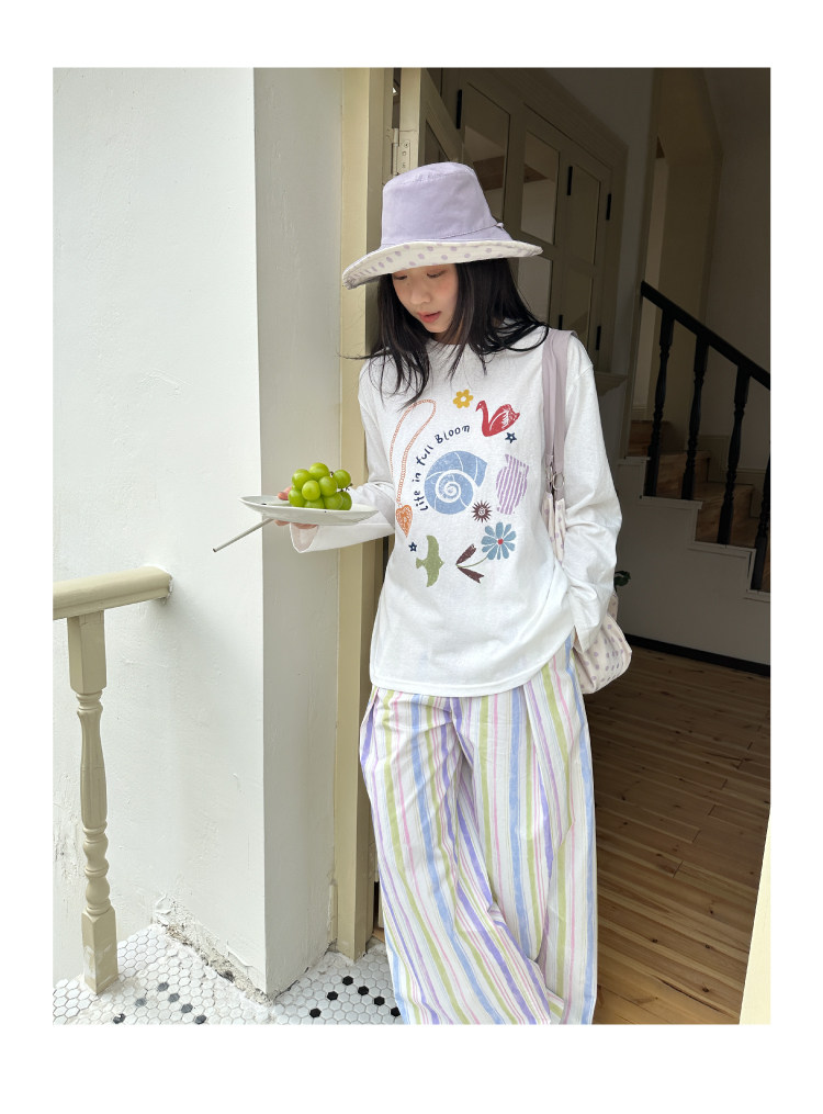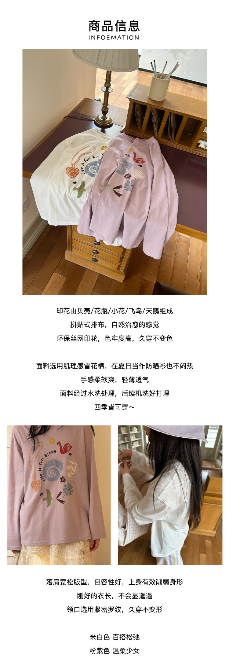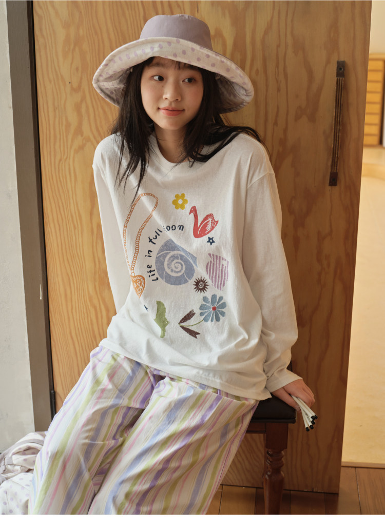 nothe Case布然/NC261620/「沙滩海贝」趣味印花 雪花棉宽松透气防晒罩衫长袖T恤