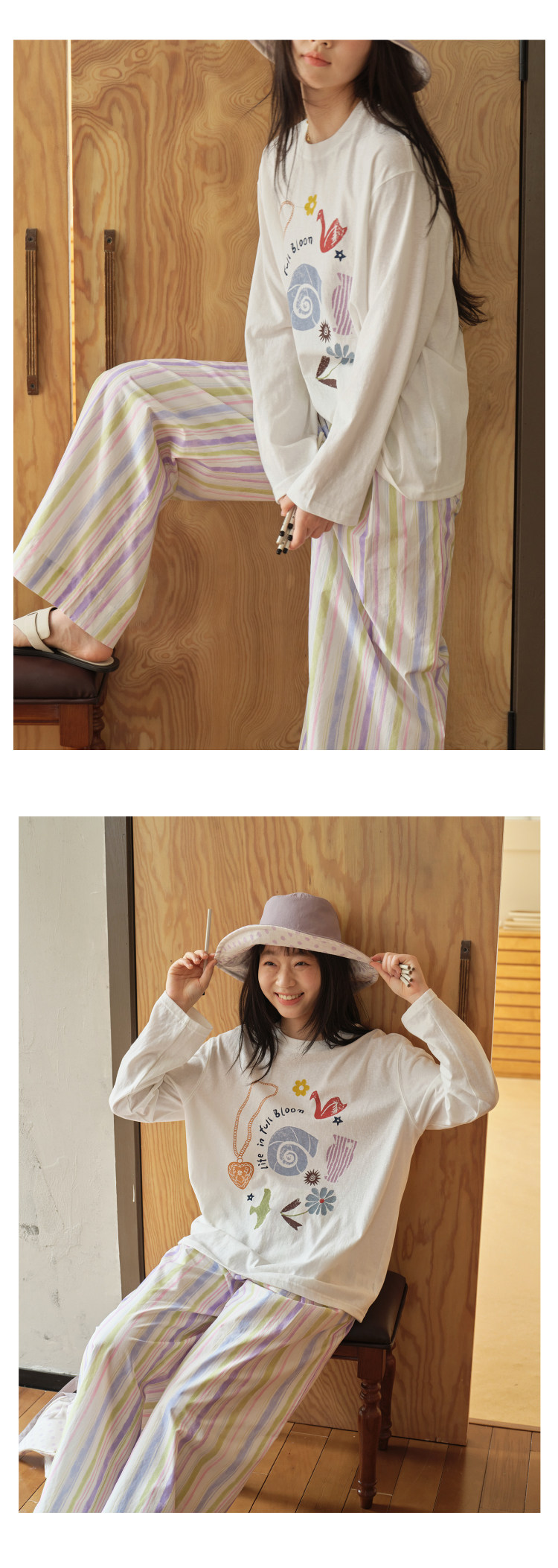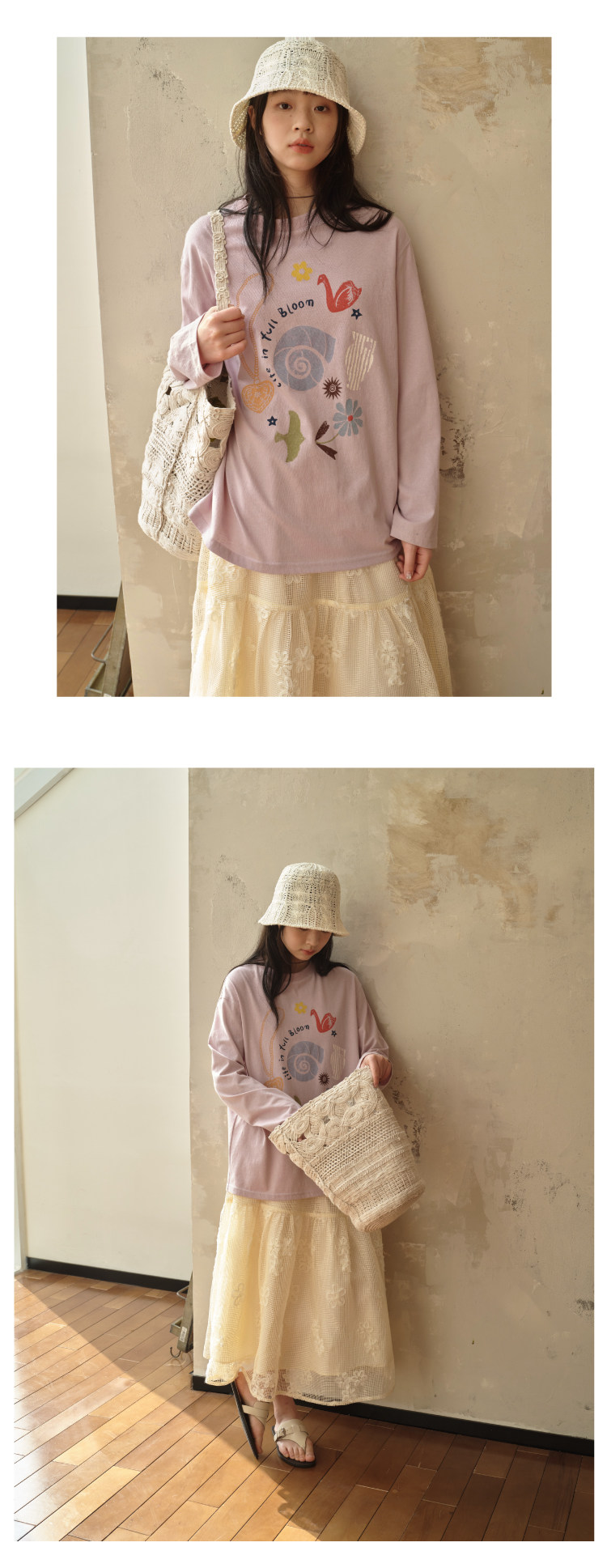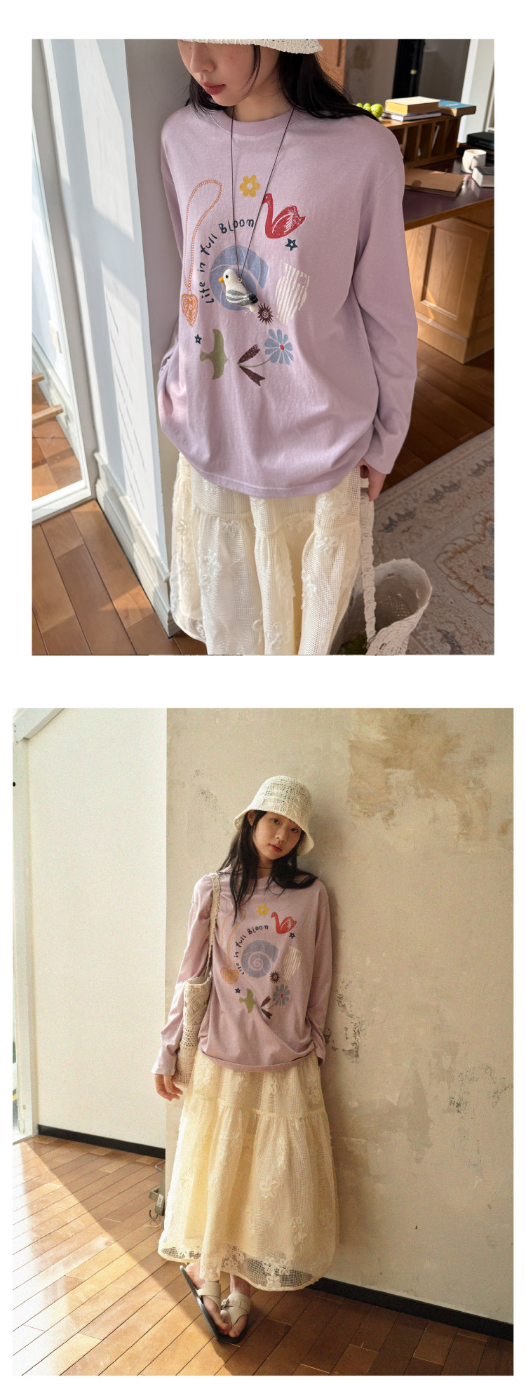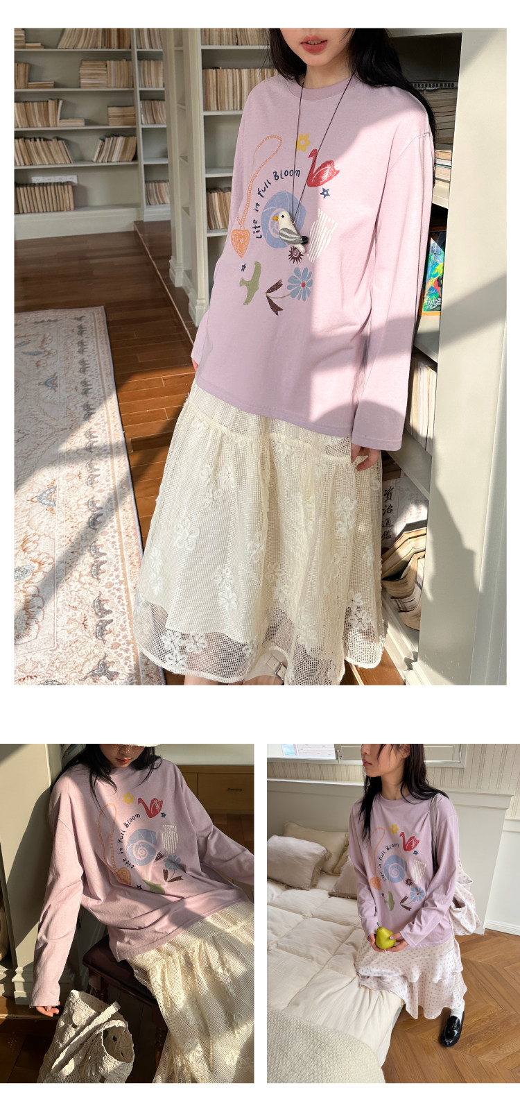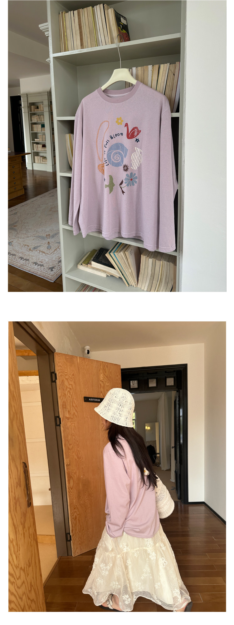 nothe Case布然/NC261620/「沙滩海贝」趣味印花 雪花棉宽松透气防晒罩衫长袖T恤