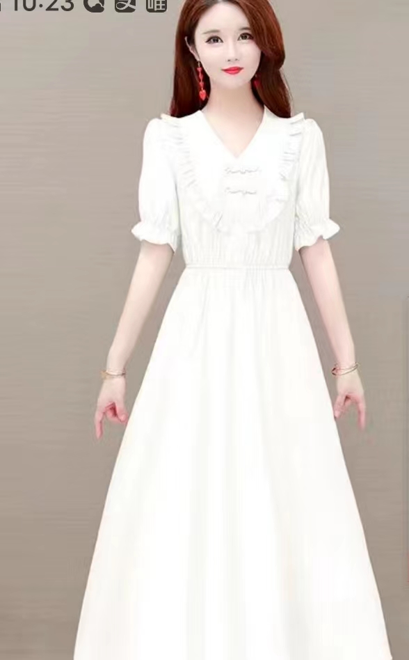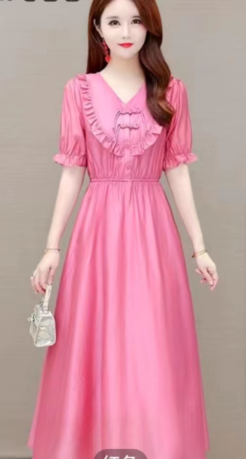 丹丽丝2685连衣裙,米色,粉色两色L-2XL,收腰设计,89-155斤女士穿着