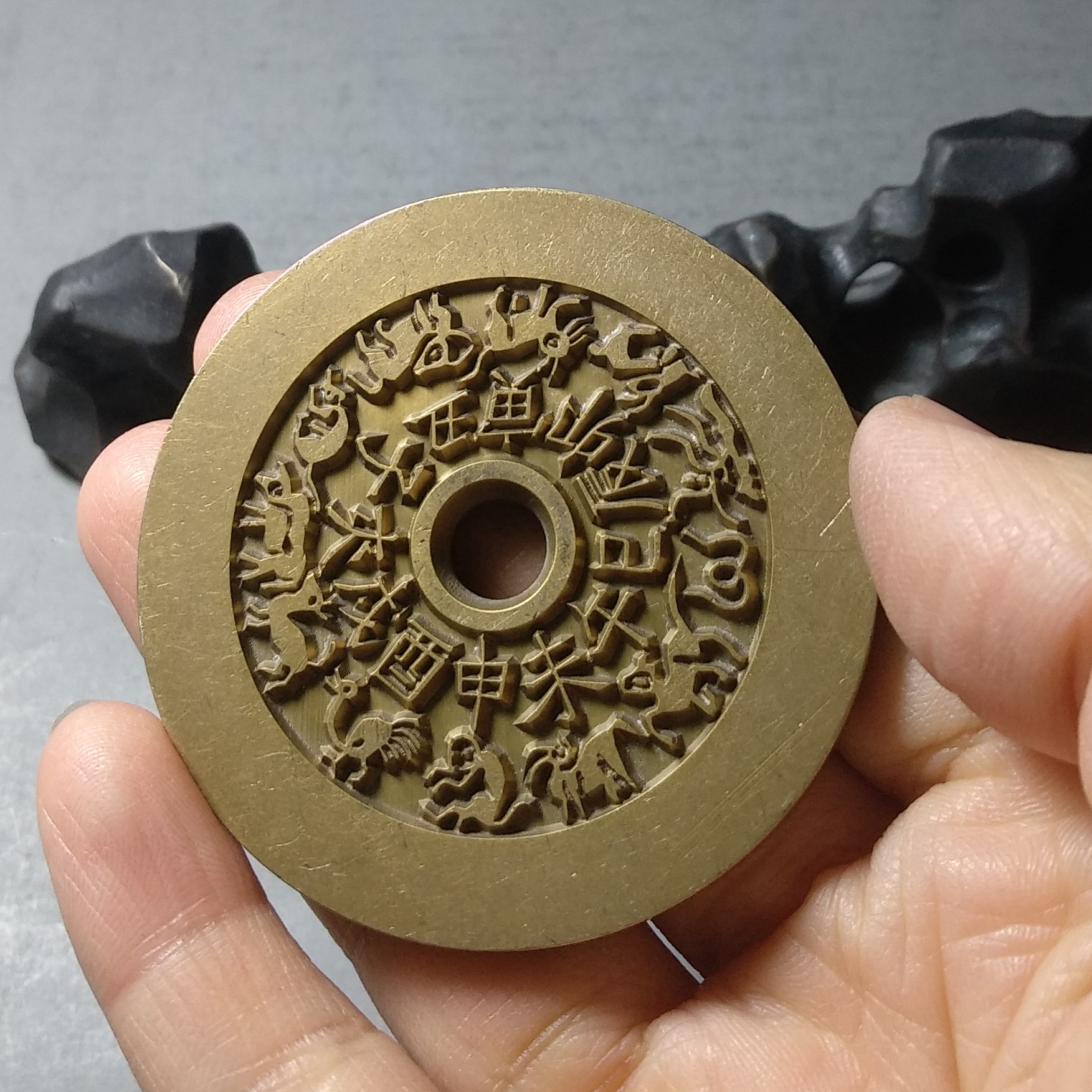 古泉书馆文创 大生八卦(带字)雕母 文房铜镇 DH0006