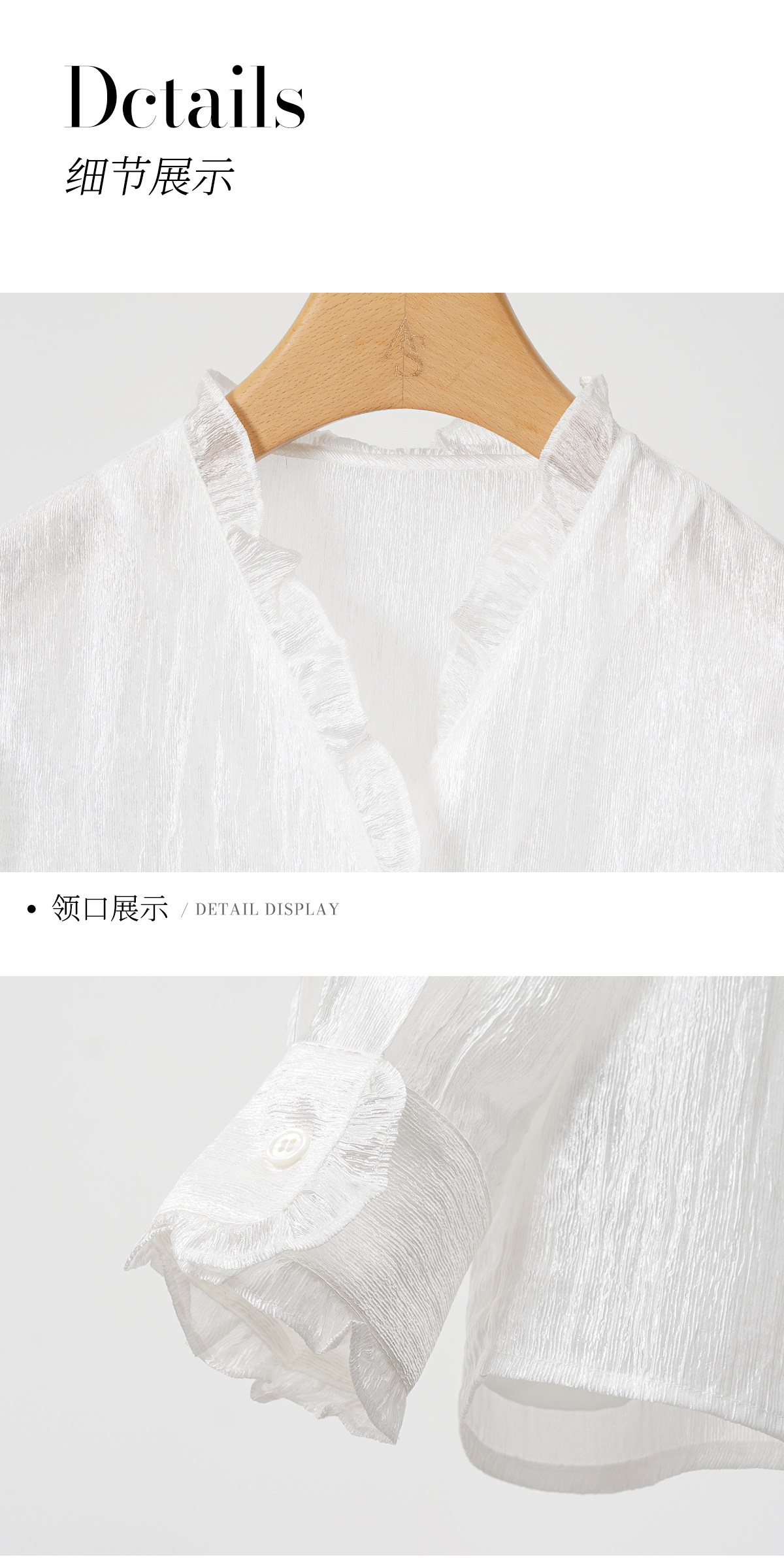 IWY/高级感白色V领衬衫女正式场合职场修身西装百搭上衣套裙WBS523