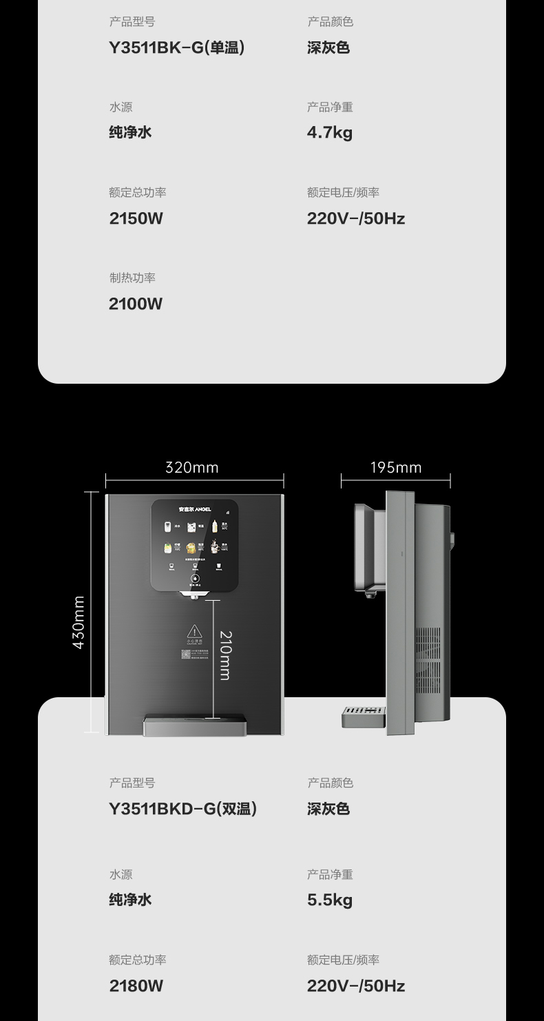 安吉尔3511管线机直饮机 制冷制热家用超薄速热