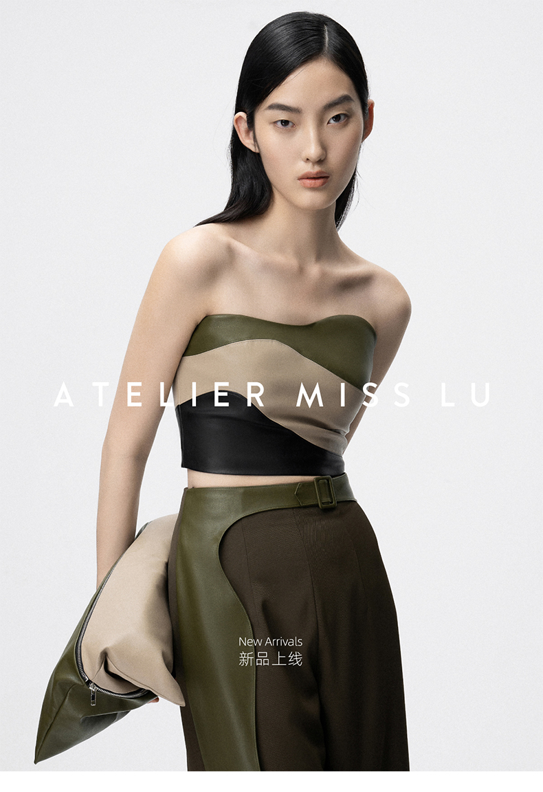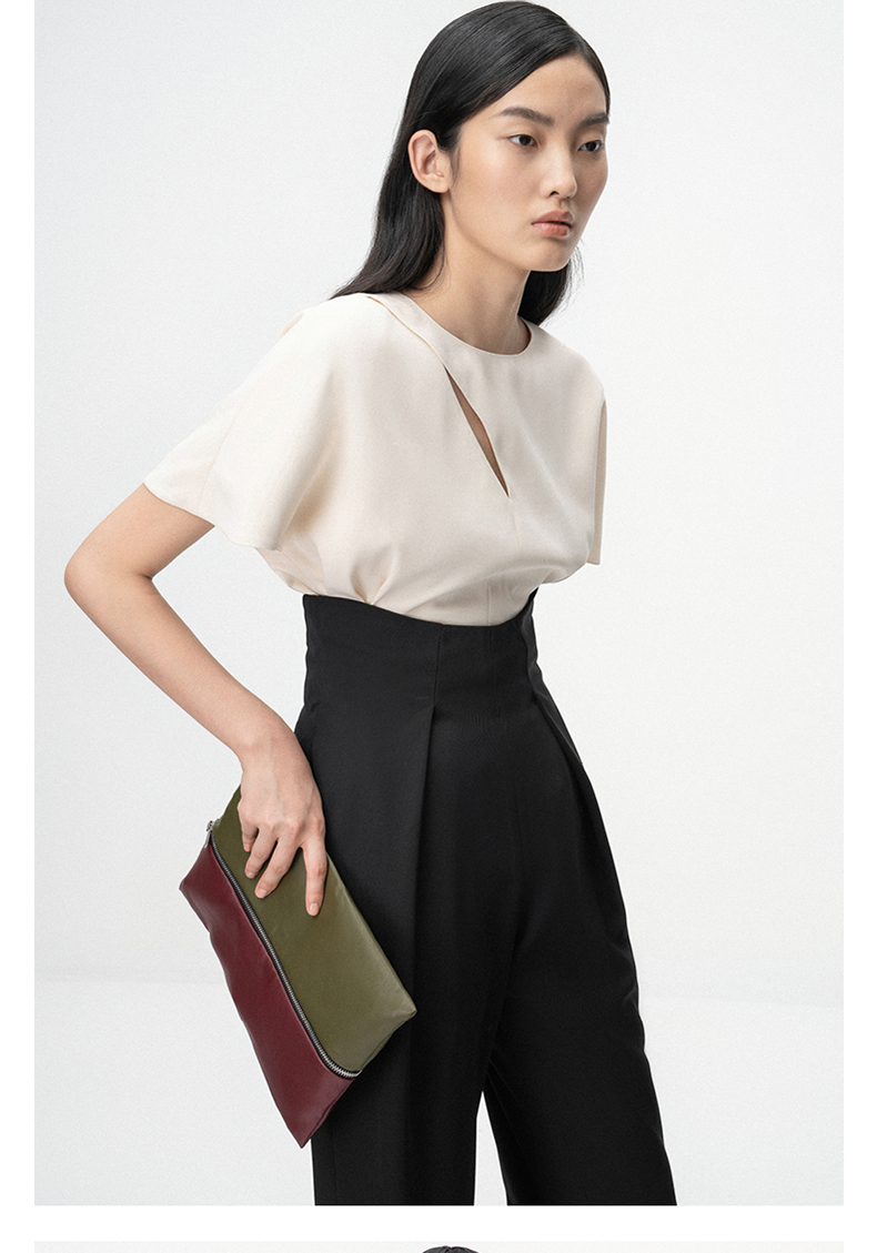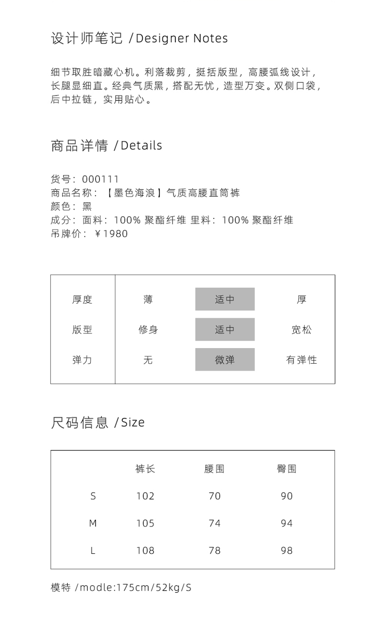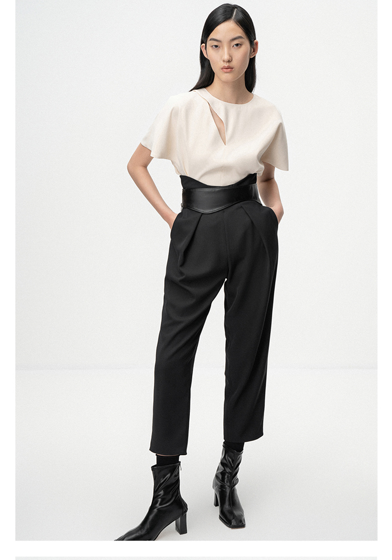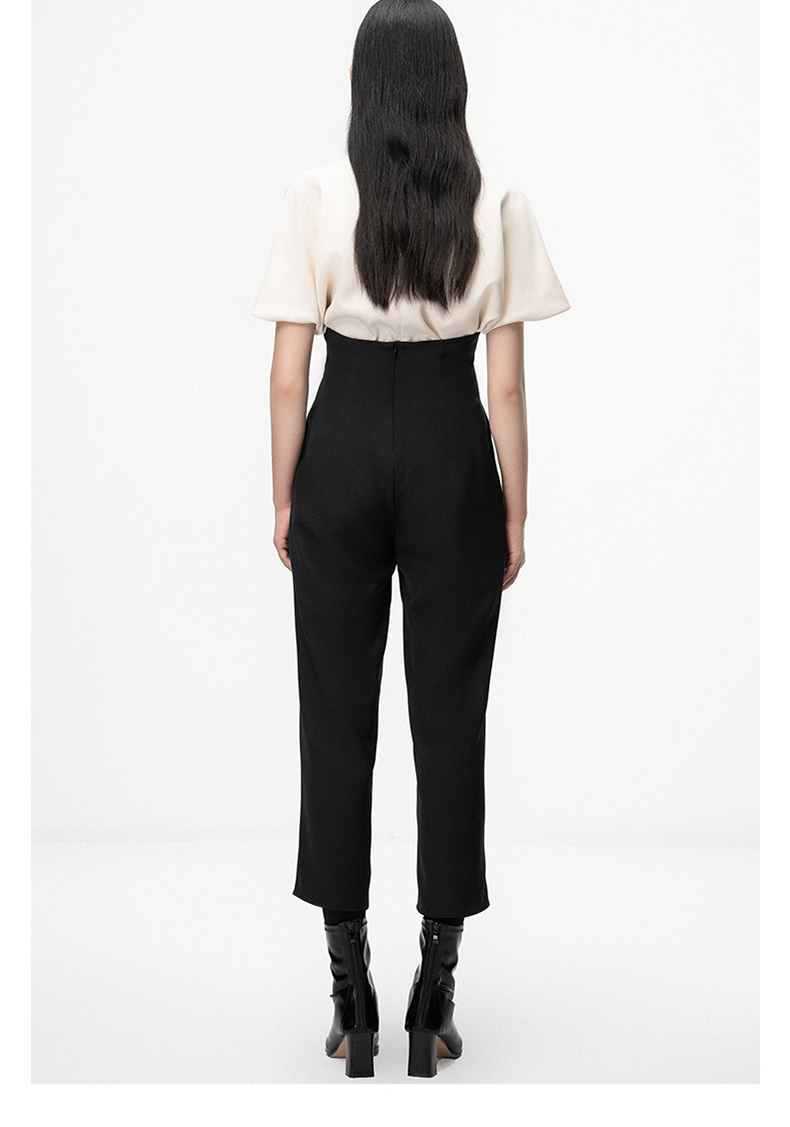 【墨色海浪】腰部弧线设计黑色挺括气质高腰直筒裤/000111