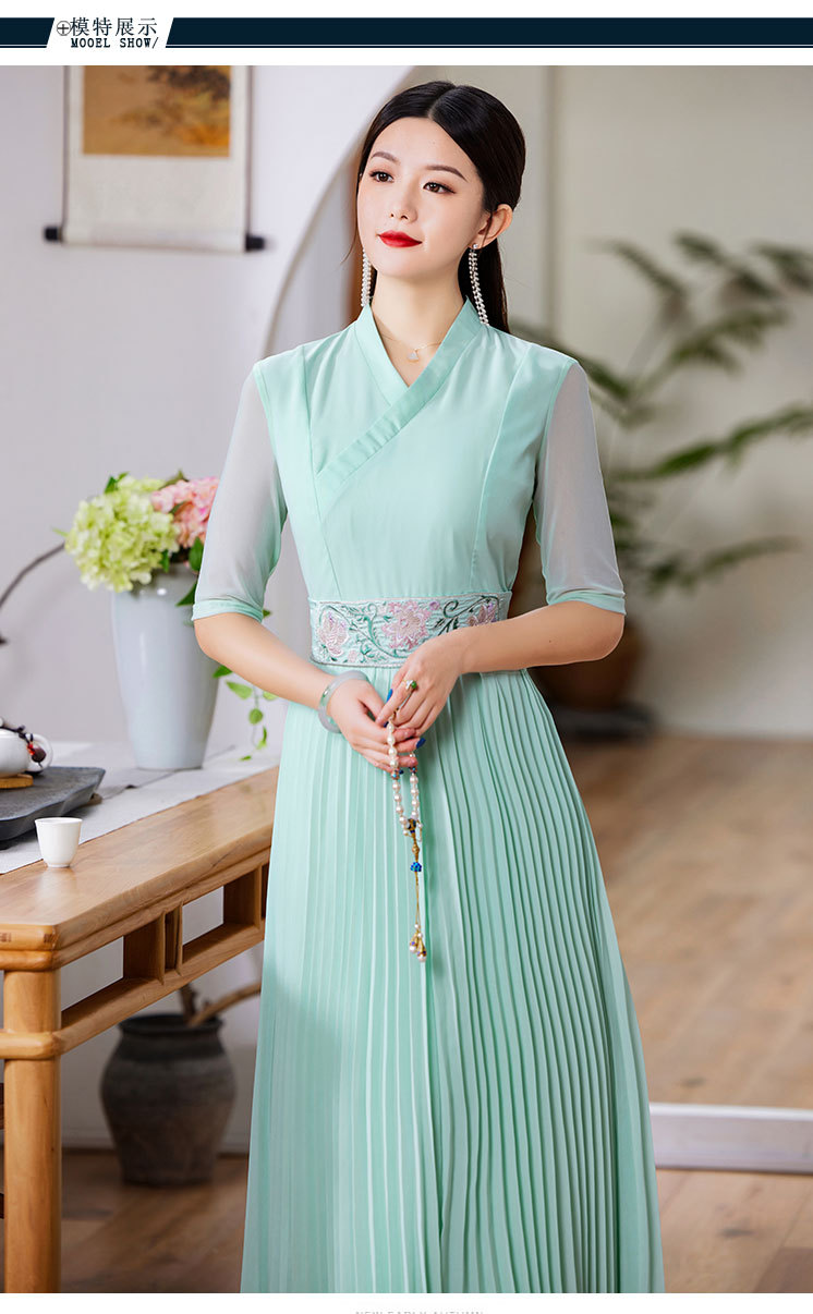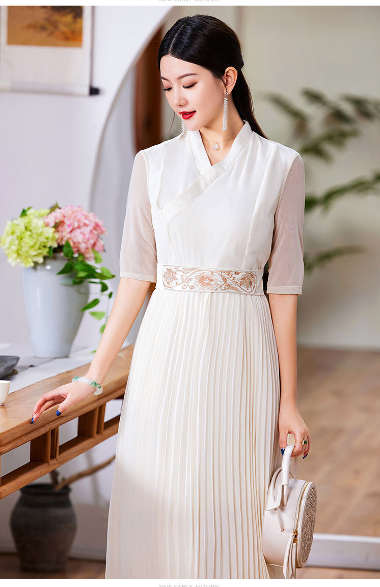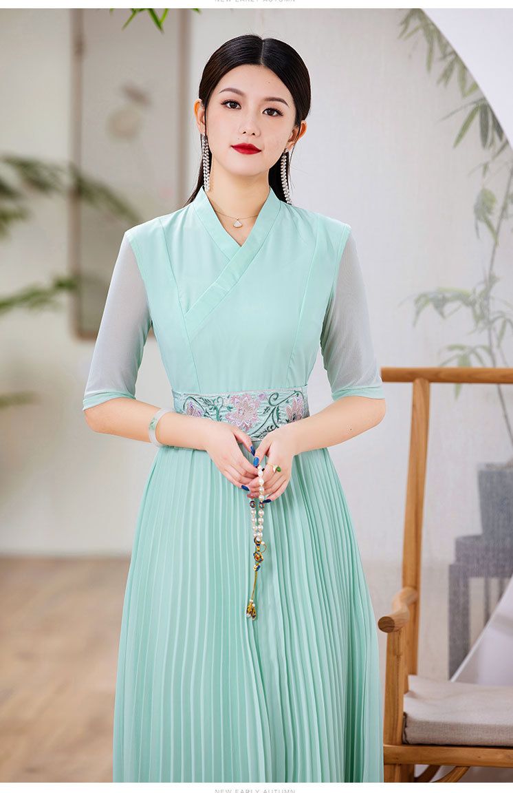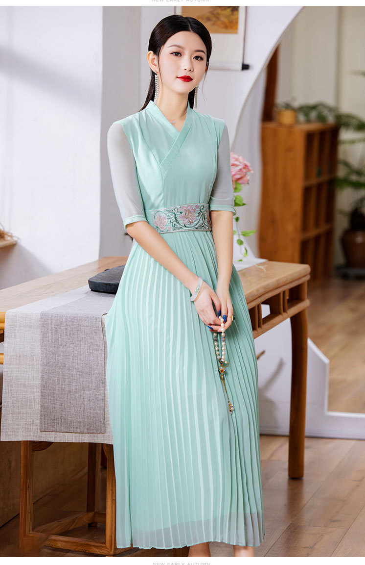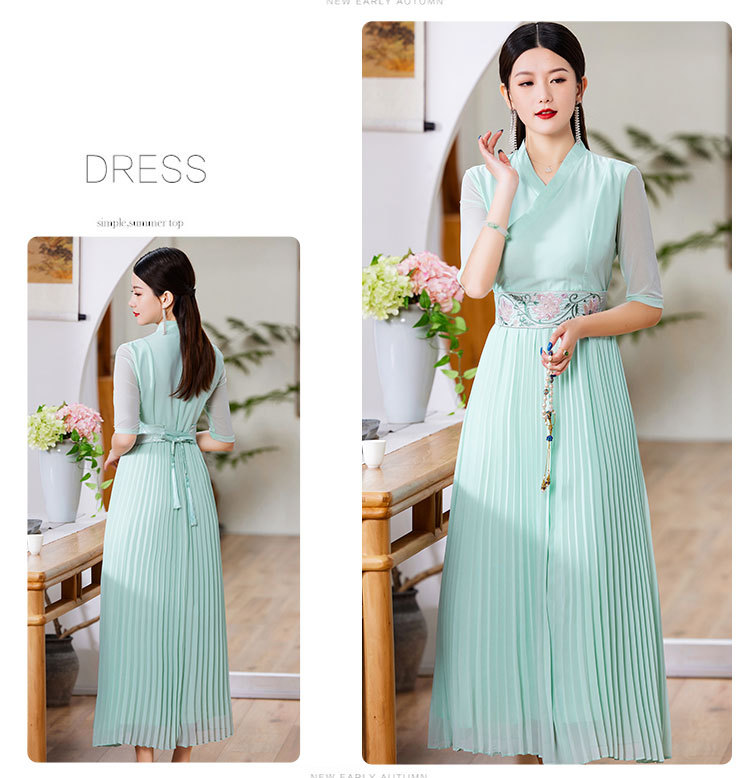 复古国风,改良旗袍气质日常汉服修身收腰百褶款连衣裙OG-9002