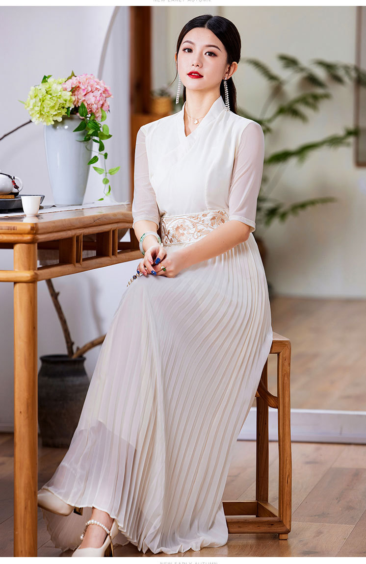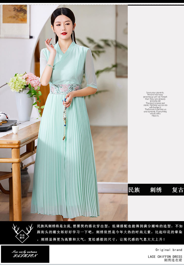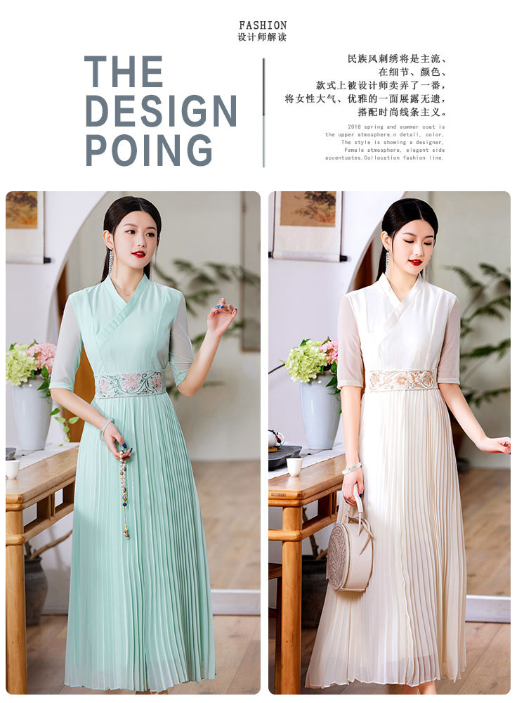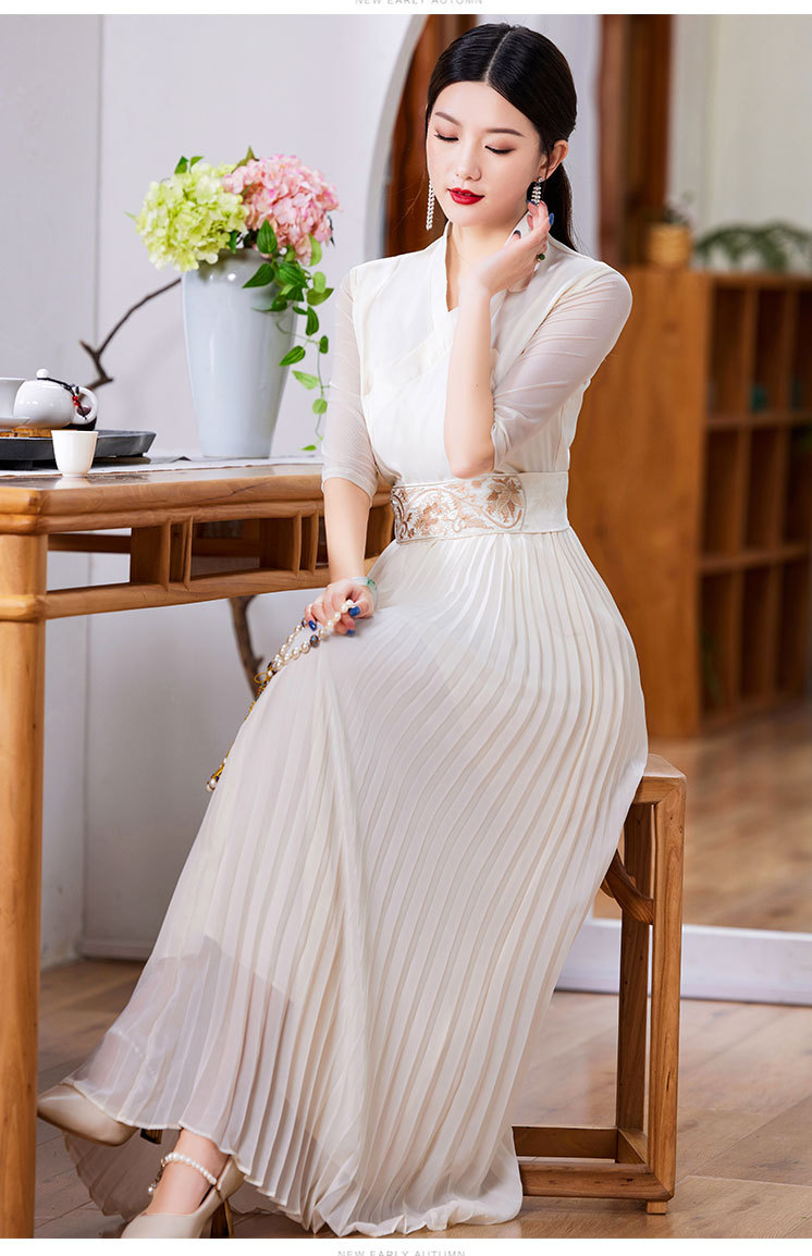 复古国风,改良旗袍气质日常汉服修身收腰百褶款连衣裙OG-9002