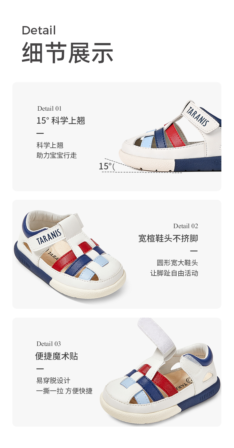 泰兰尼斯夏季婴童段多彩拼色透气凉鞋T11B3B3386