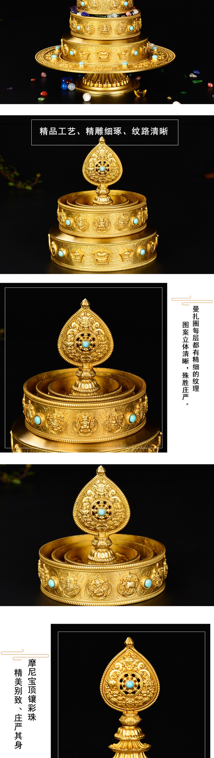 佛教密宗供品精品黄铜B款曼扎三十七供八吉祥曼扎盘小号带托盘 送玛瑙宝石