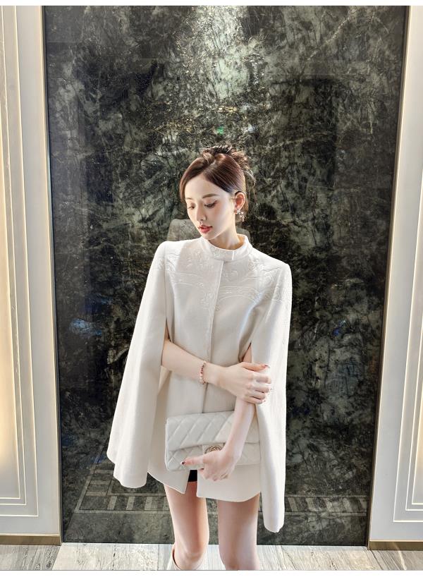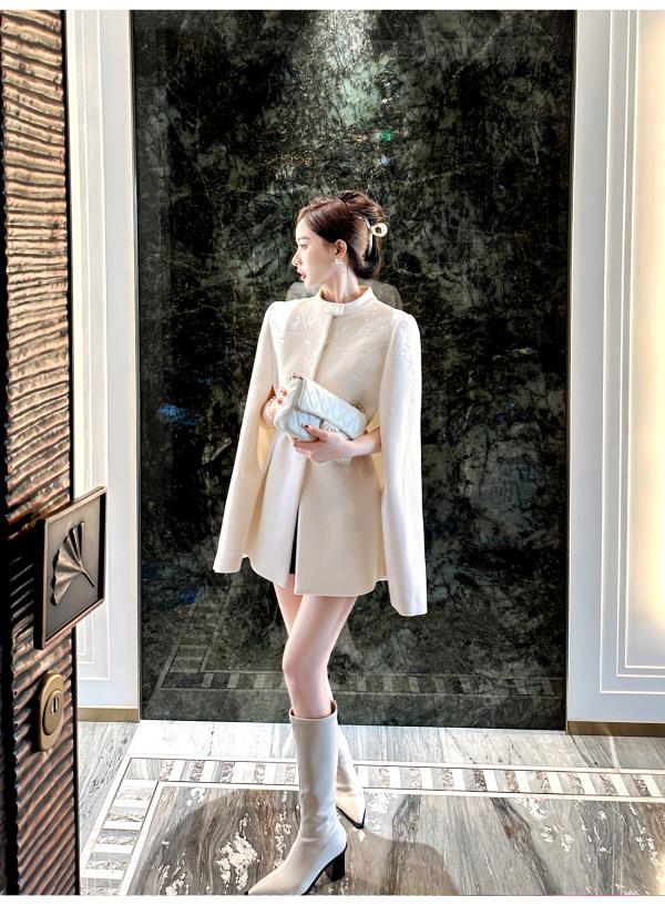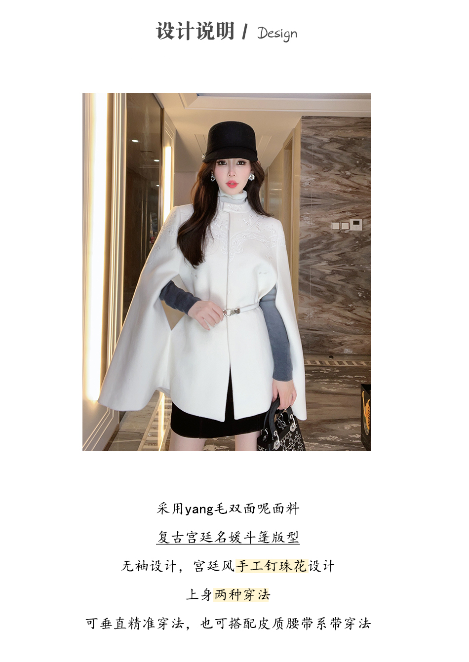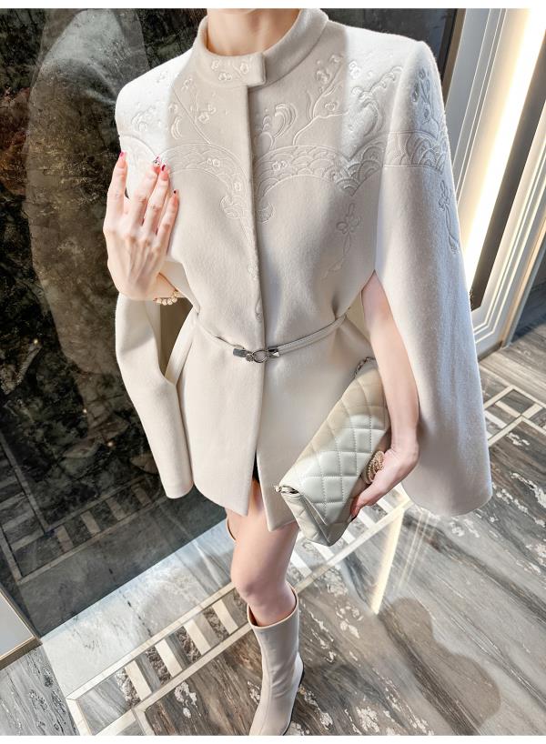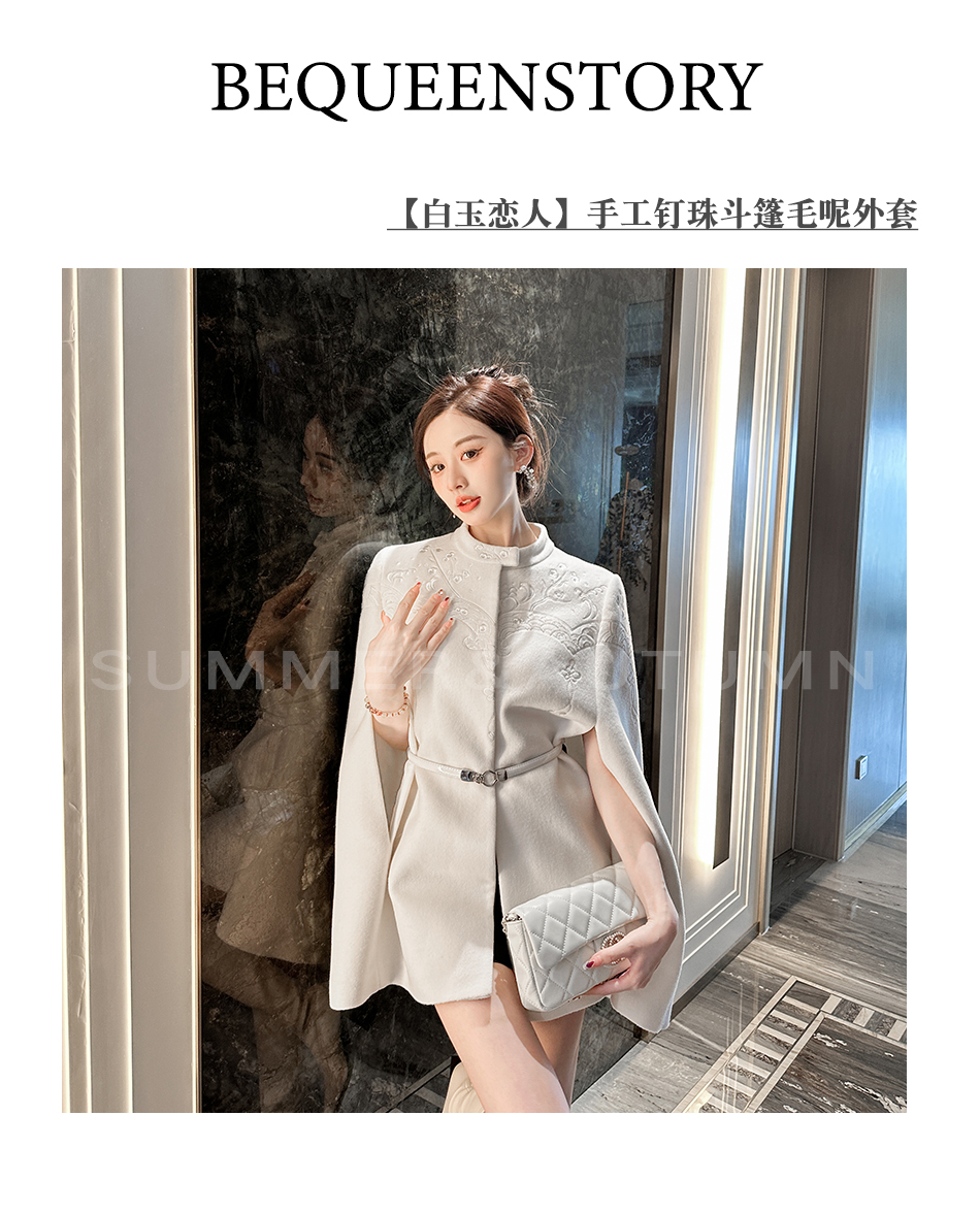 BeQueenStory【白雪踏歌】复古宫廷风名媛羊毛手工钉珠斗篷毛呢外套