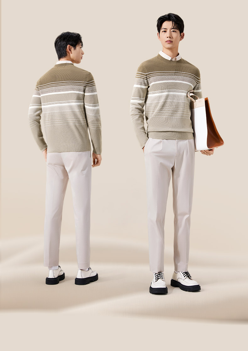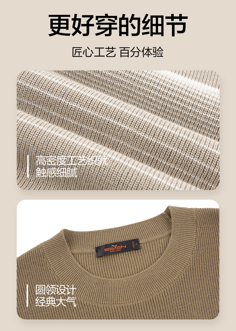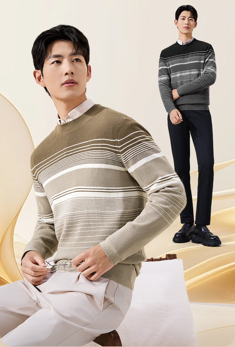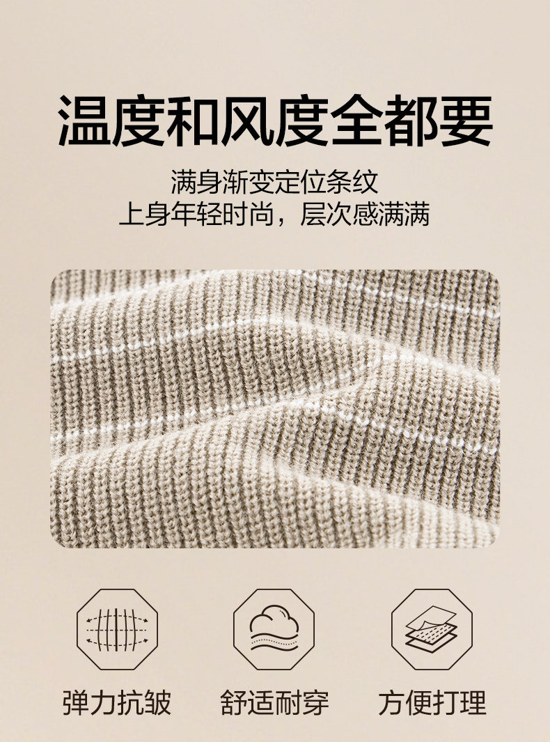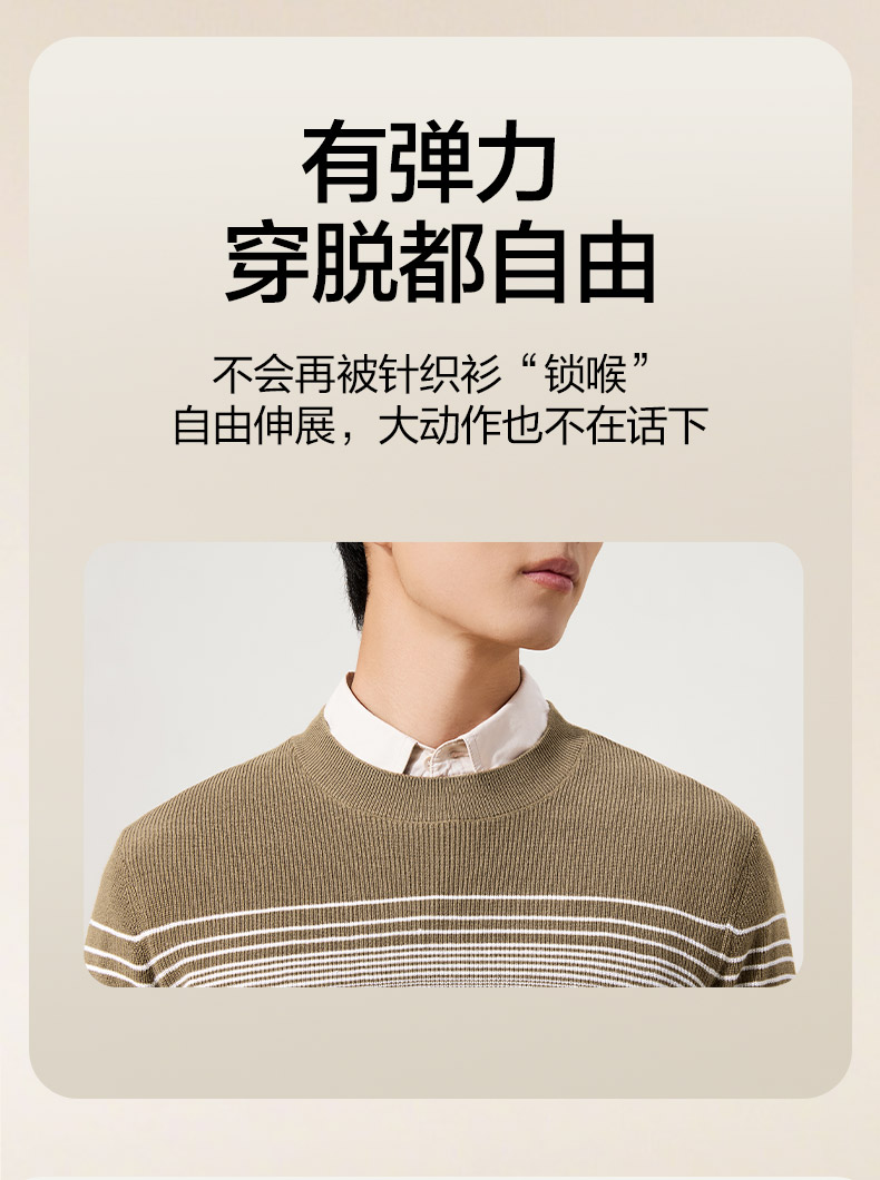 【7A抗菌/含羊毛/条纹】柒牌男装2025秋季圆领套头粗针休闲薄毛衫129Y70620