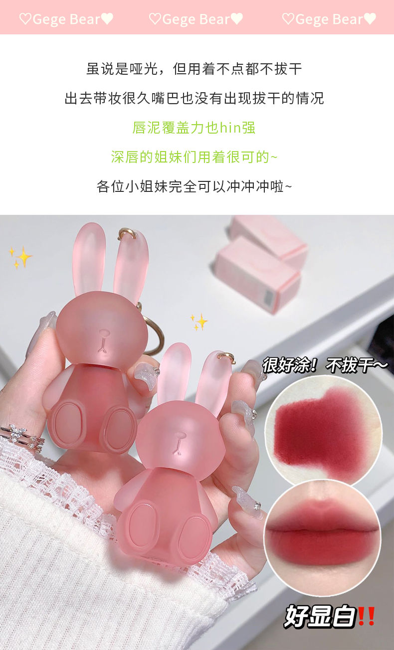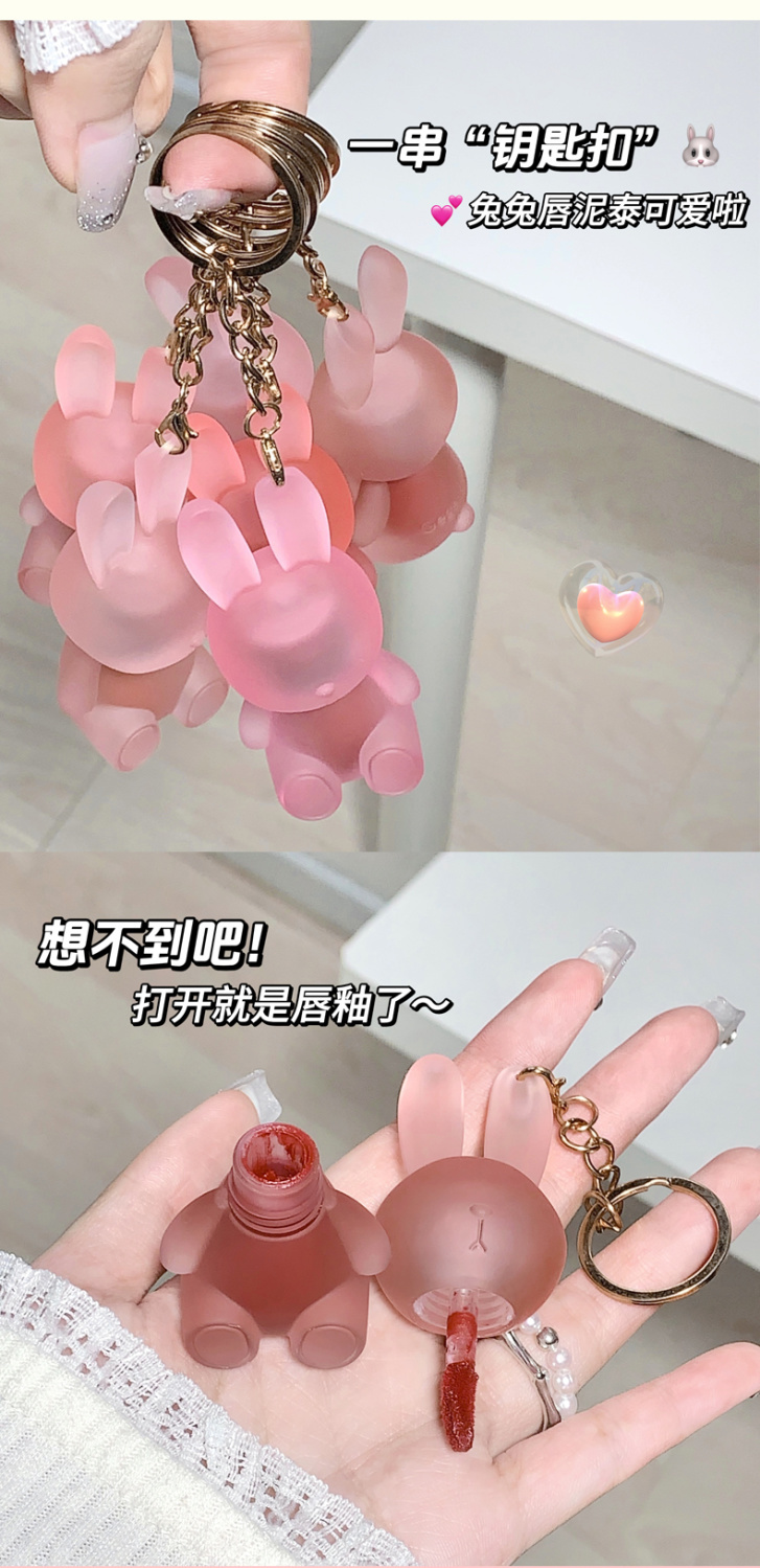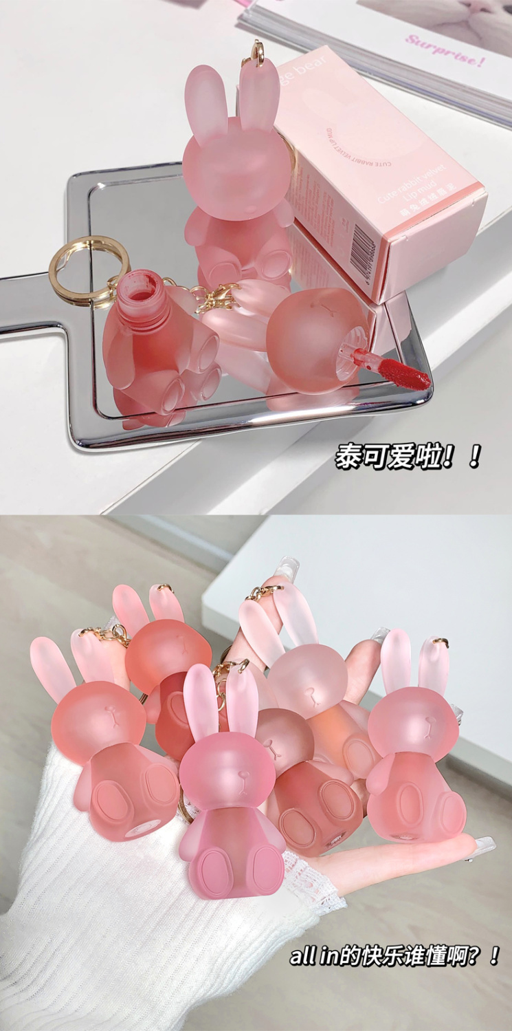 【爆款超低价预售 急单慎拍】萌兔绒绒钥匙扣唇泥早八伪素颜哑光雾面丝绒唇釉学生党平价口红女