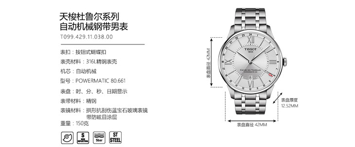| 品牌 | 天梭 TISSOT | 型号 | T099.429.11.038.00 |
