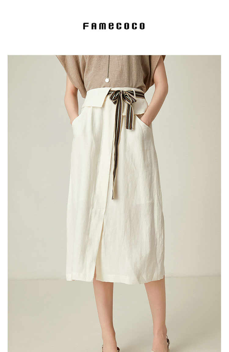 famecoco范可儿半身裙夏季通勤复古风A字裙大摆半身裙F193HA024
