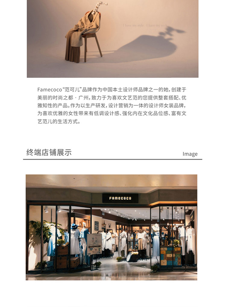 - Famecoco作为中国本土设计师品牌之一的她,创建于美丽的时尚花都广州,自2013年创立以来,一直致力于打造优雅、知性、文艺的穿着理念。