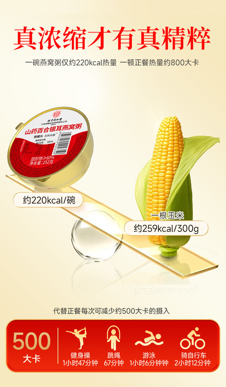 一碗🥣燕窝粥仅约220kcal热量 一顿中餐热量约800大卡 代替正餐每次可减少约500大卡的摄入 减重期也可以放心喝✅