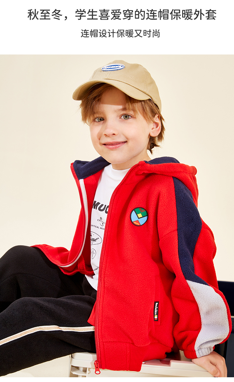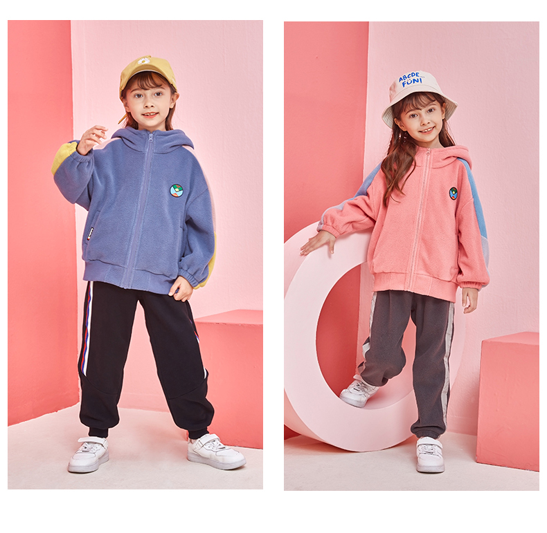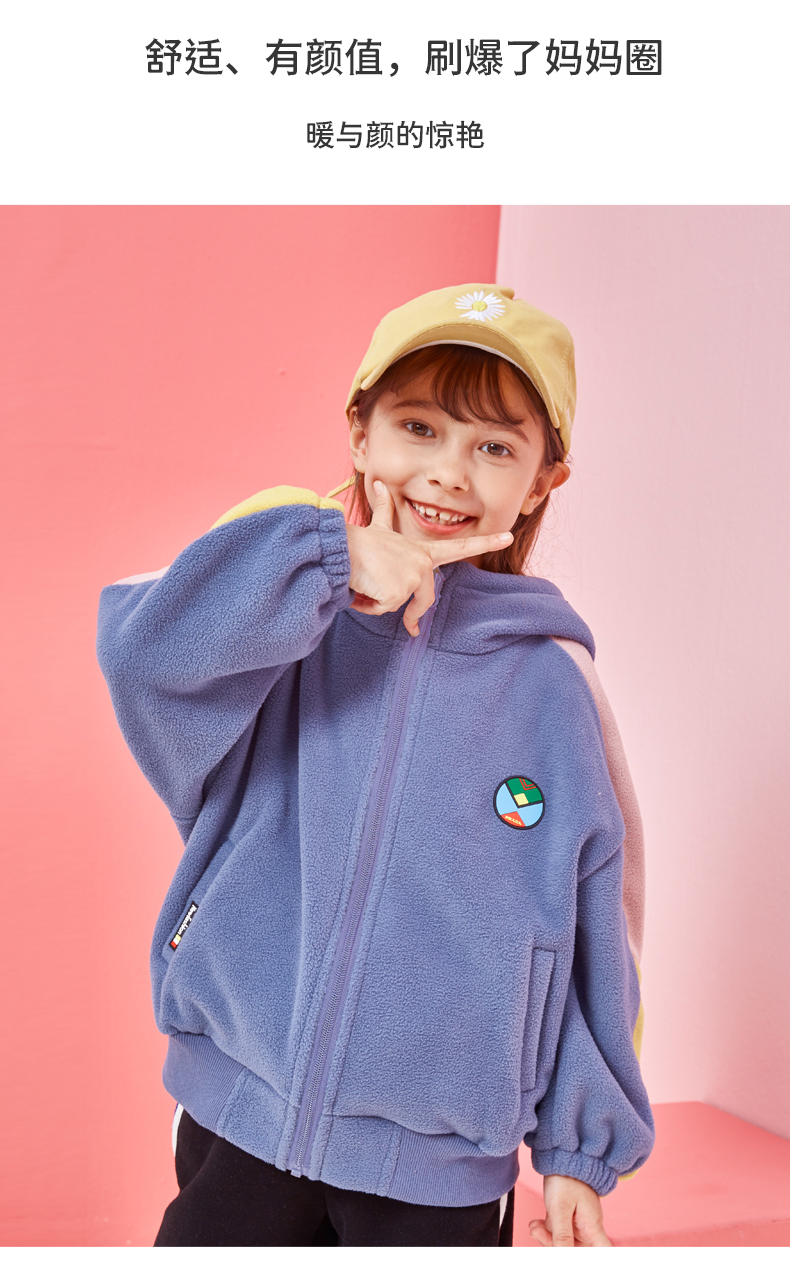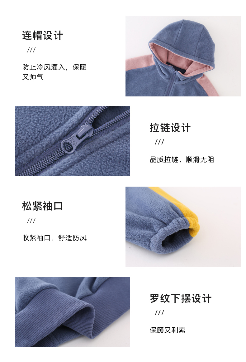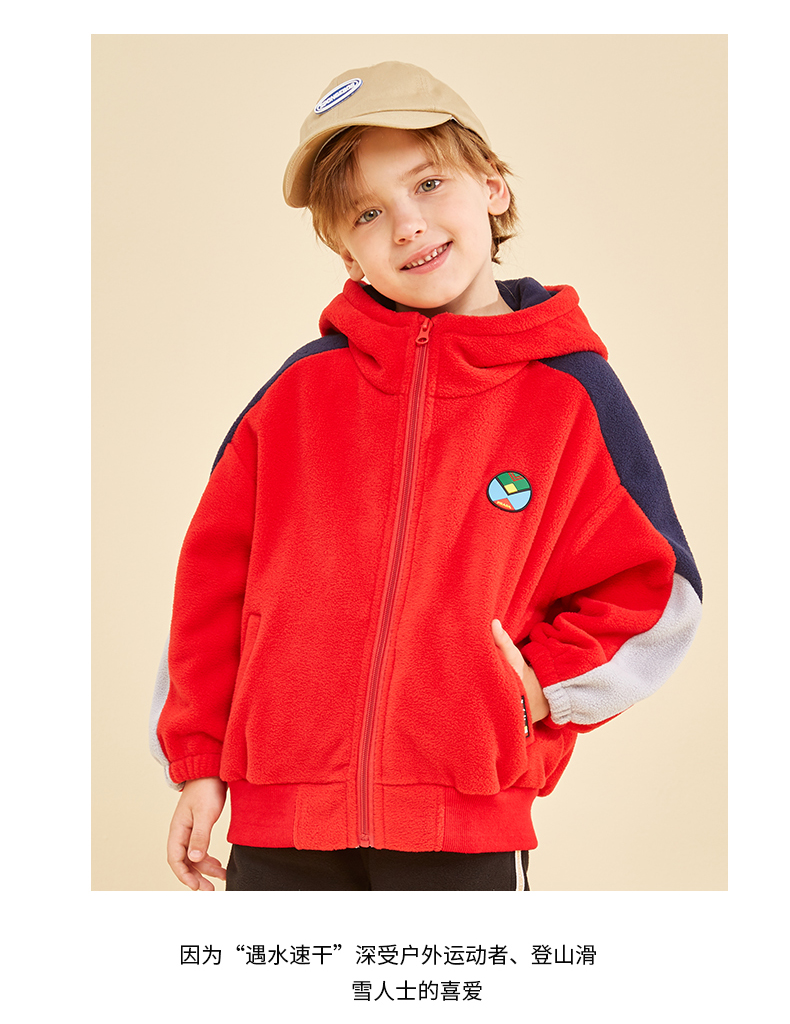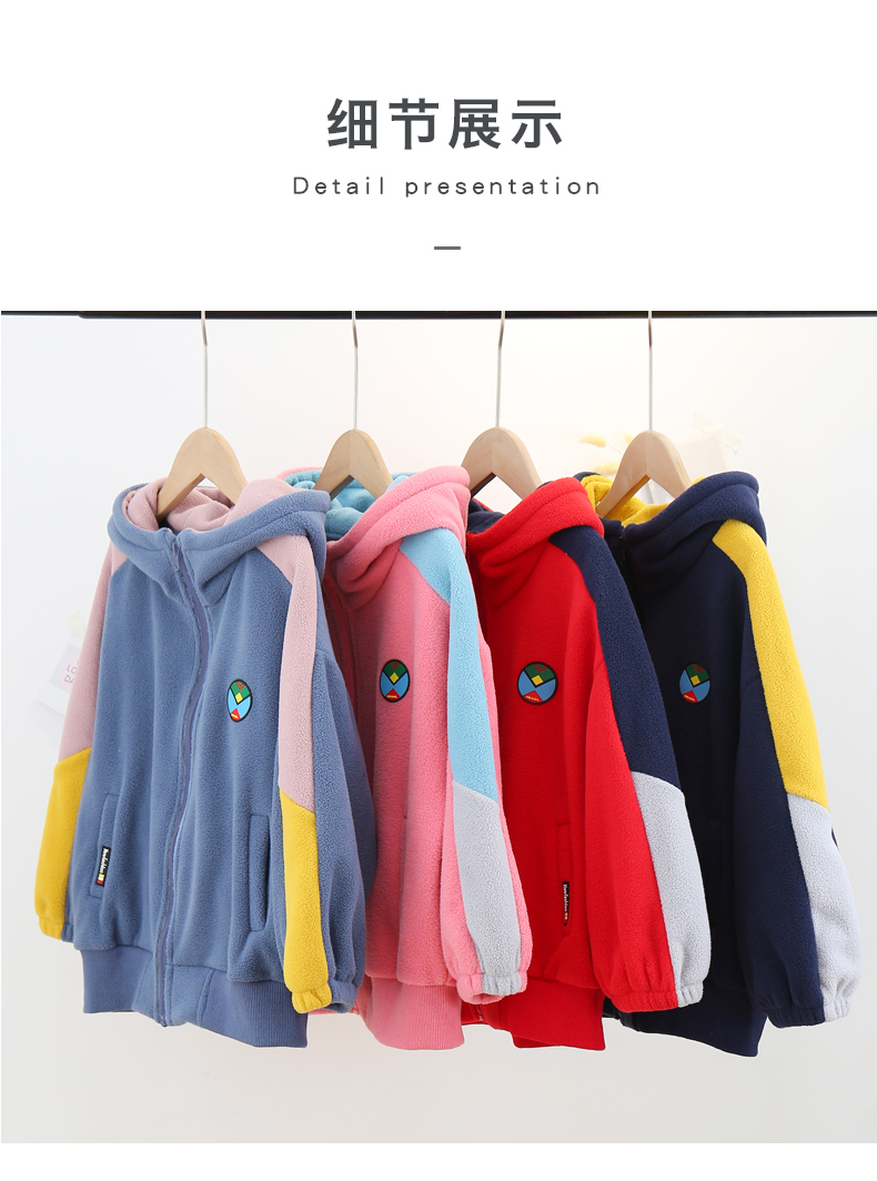 【24年反季特价清仓】龙之涵儿童连帽摇粒绒上衣拼接撞色袖摇粒绒外套2021秋季新款