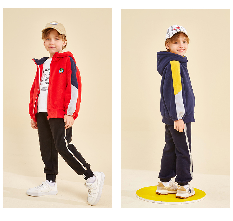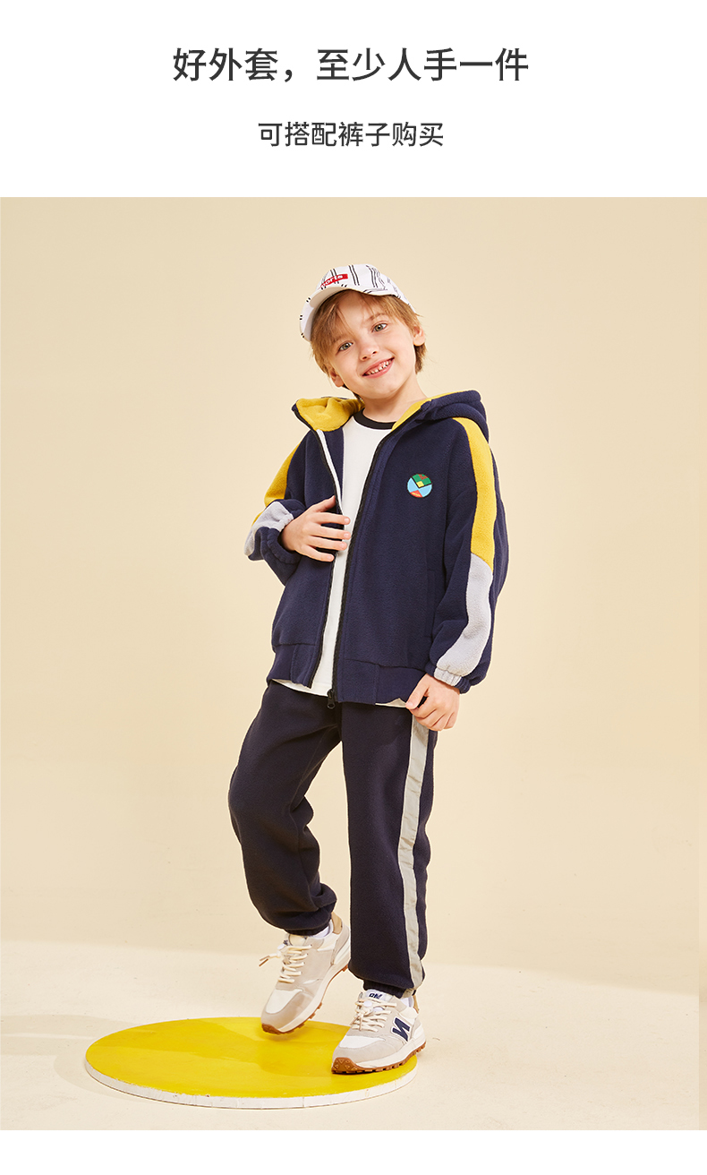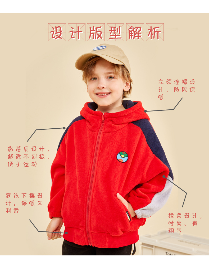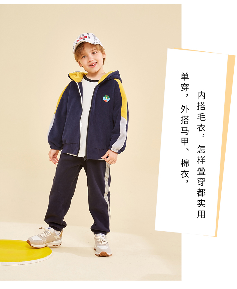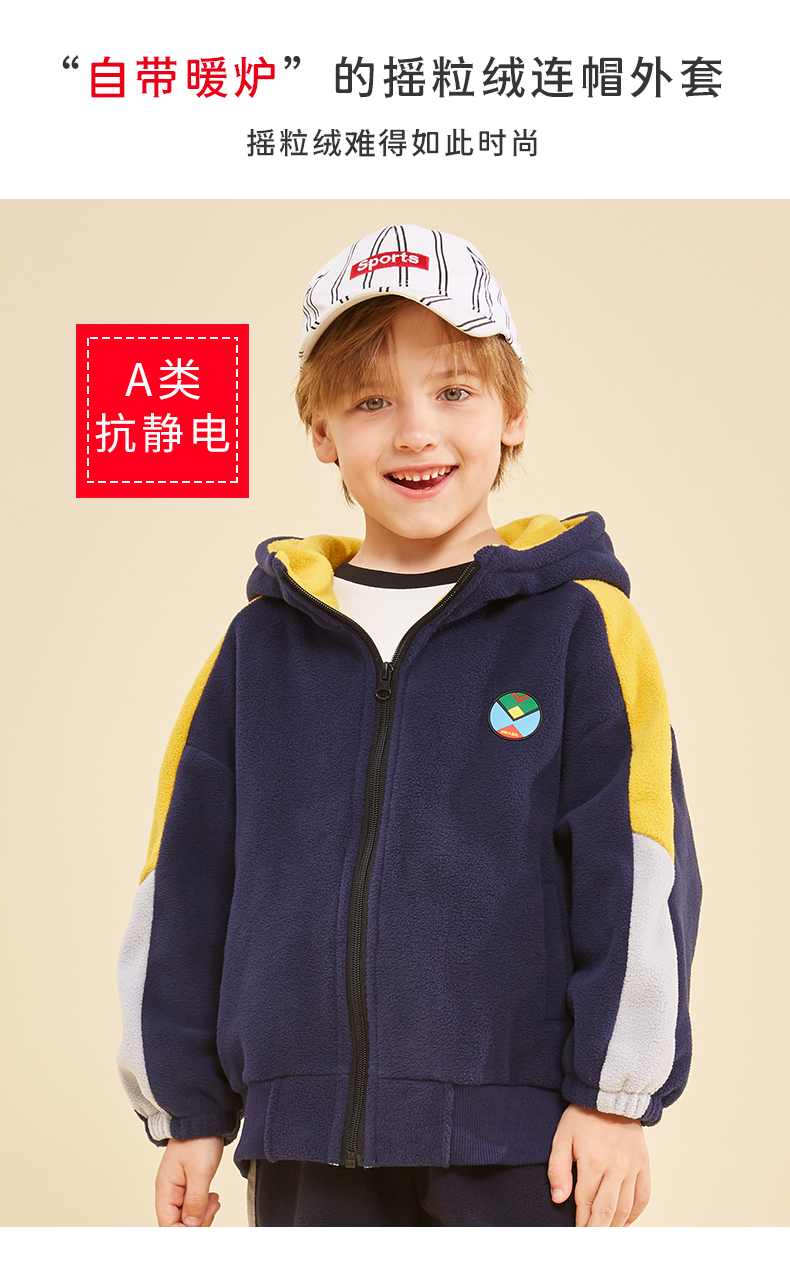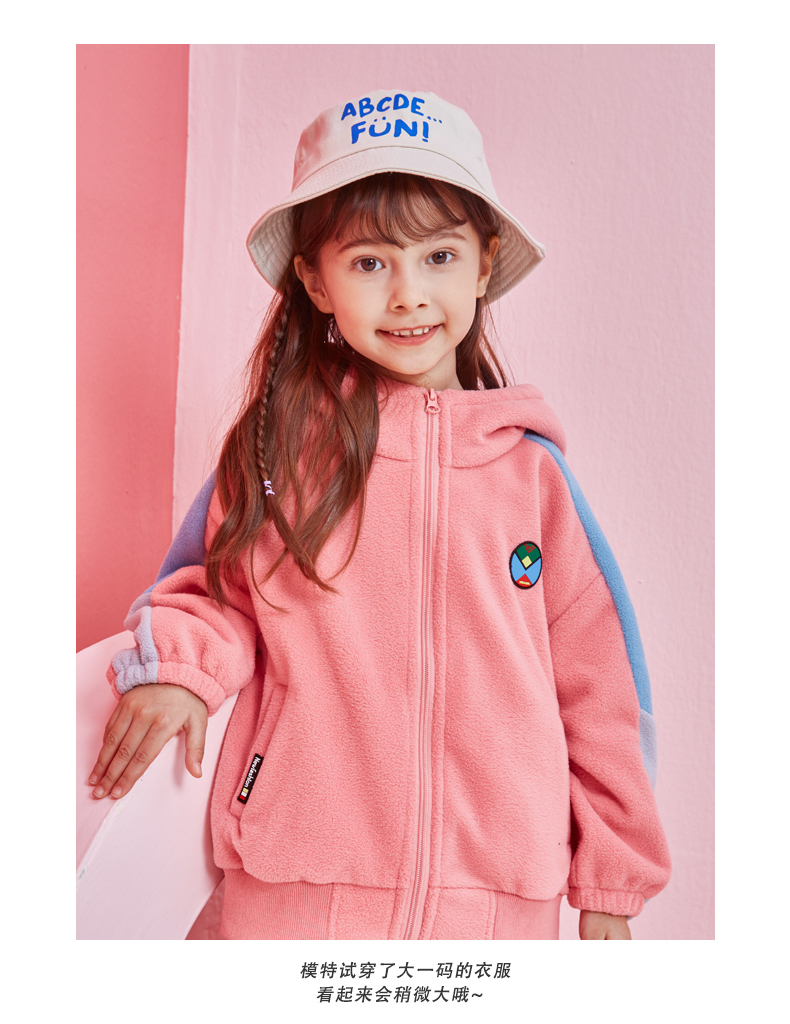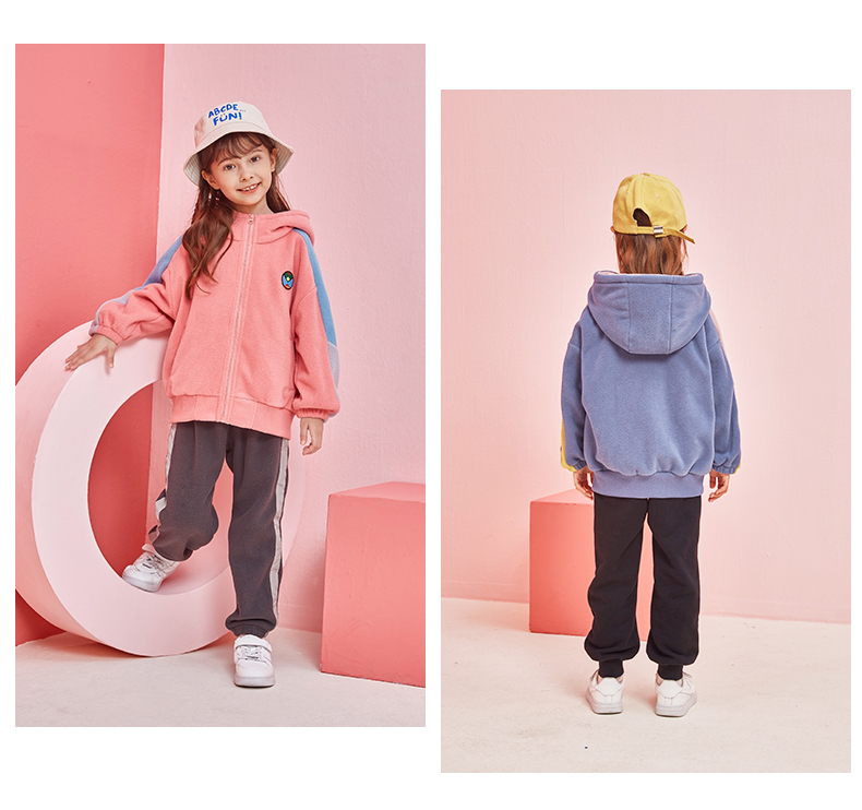 【24年反季特价清仓】龙之涵儿童连帽摇粒绒上衣拼接撞色袖摇粒绒外套2021秋季新款