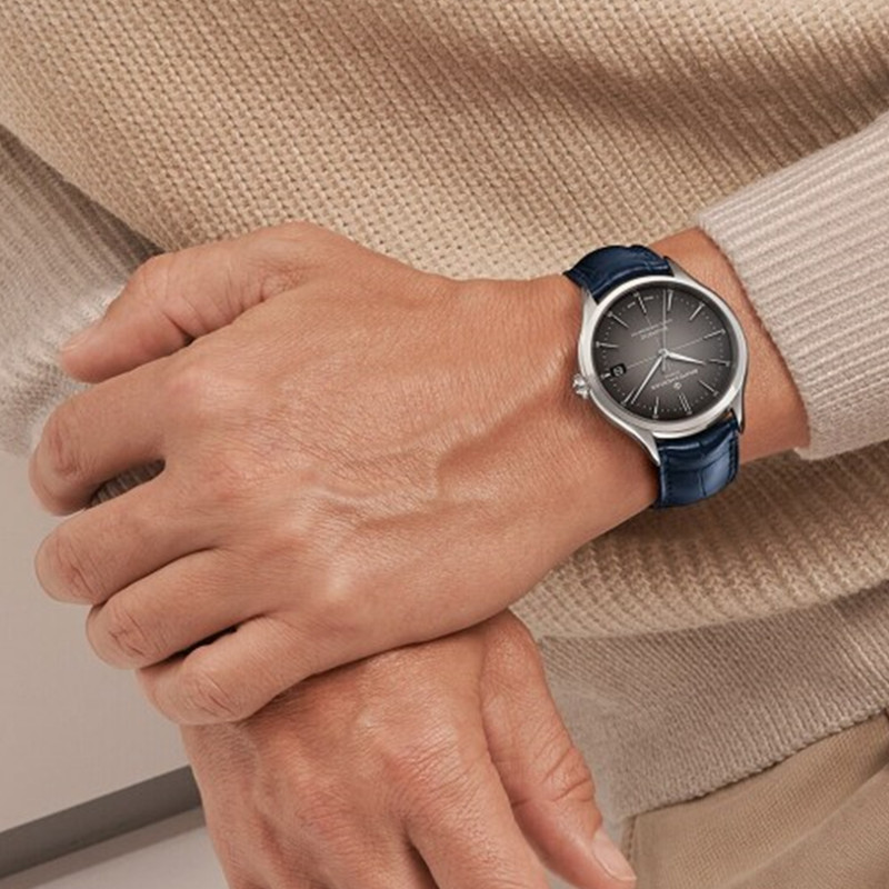 镜面材质 | 蓝宝石水晶玻璃 | 表盘 | 精钢表壳 漆面渐变灰色表盘,正中饰有白色十字线饰纹;镀铑铆钉式刻面长梯形表刻和 Alpha 型指针 日期显示 透底 |