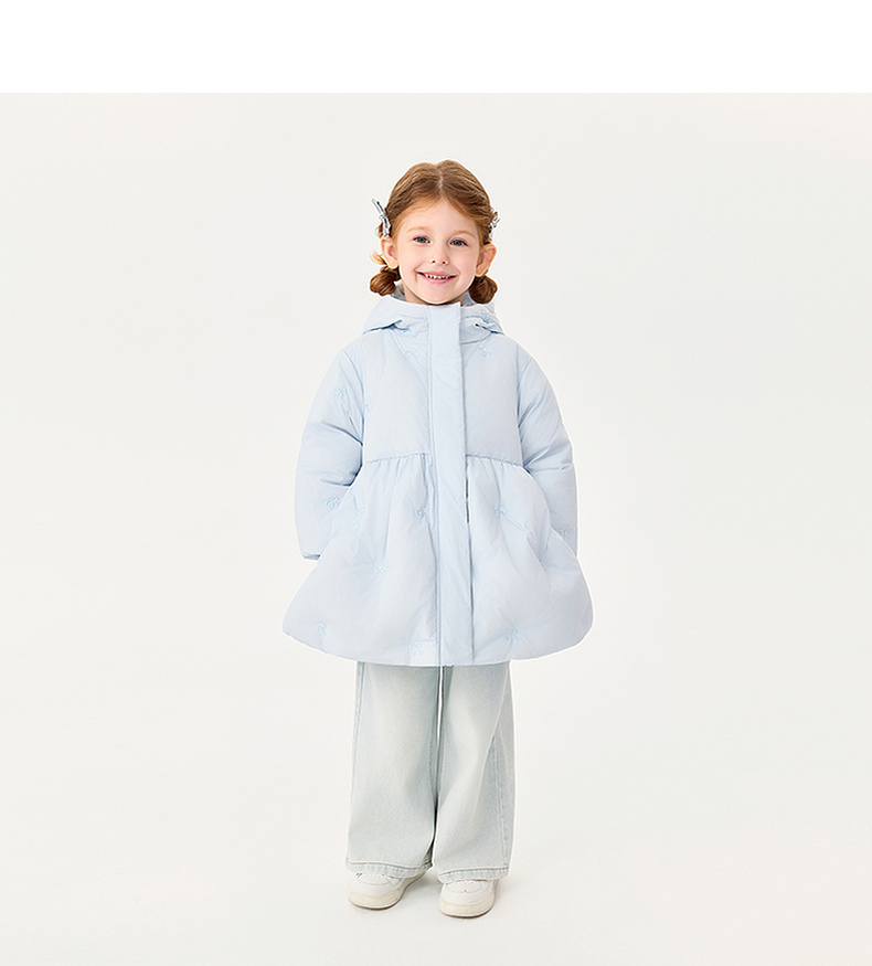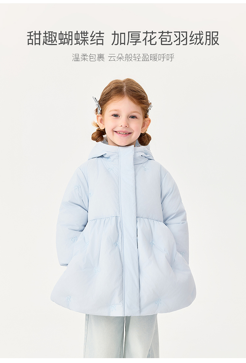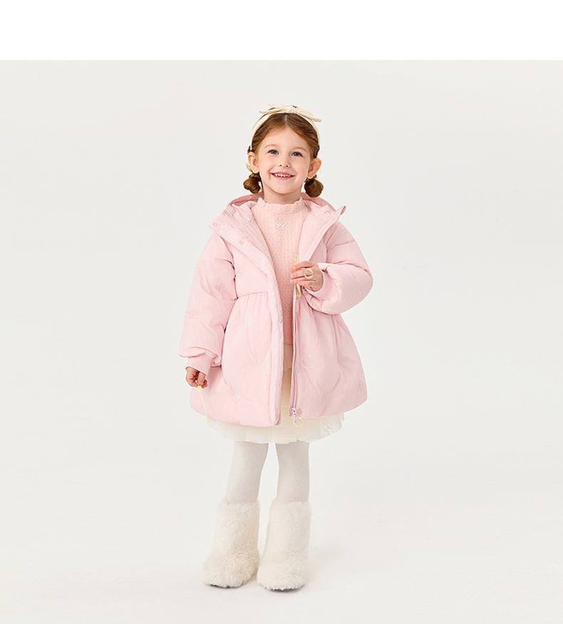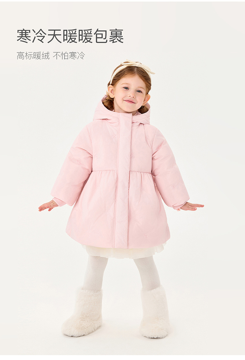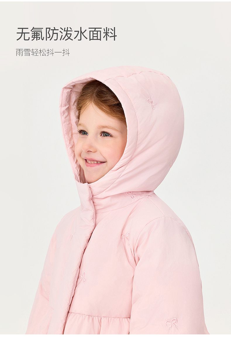 【无氟防泼水】马克珍妮女童甜趣蝴蝶结中长款花苞羽绒服2025年冬装新款551739