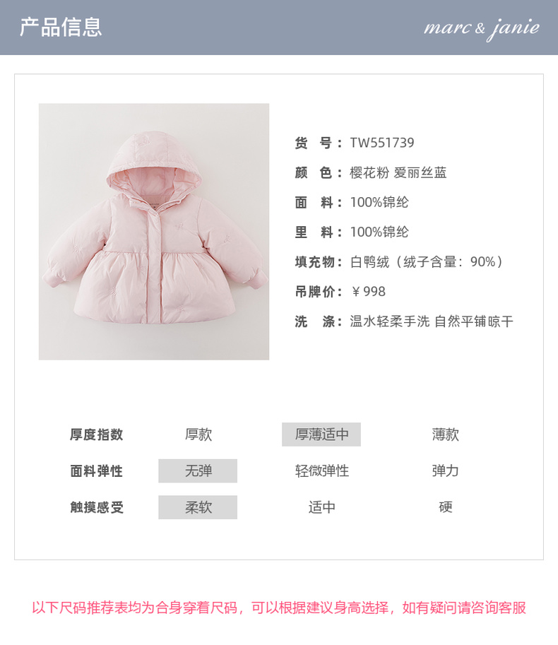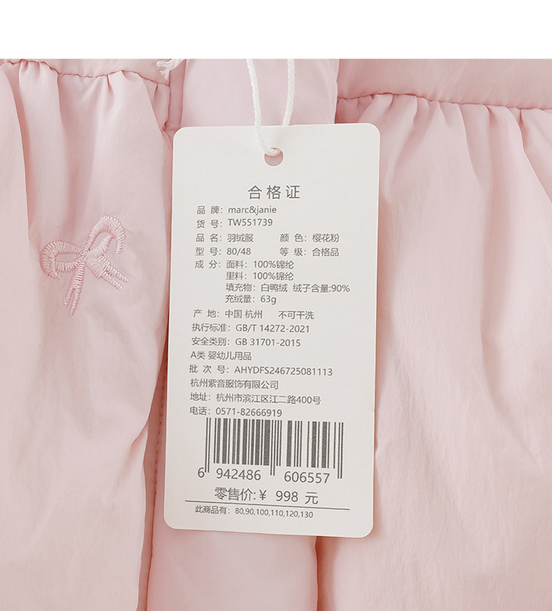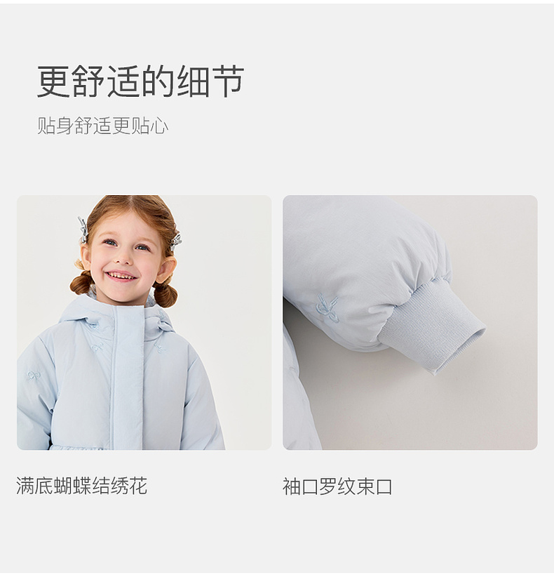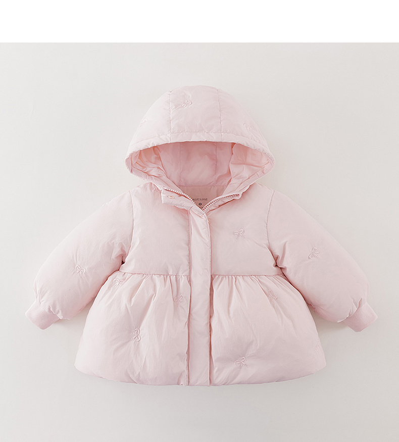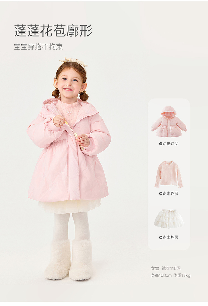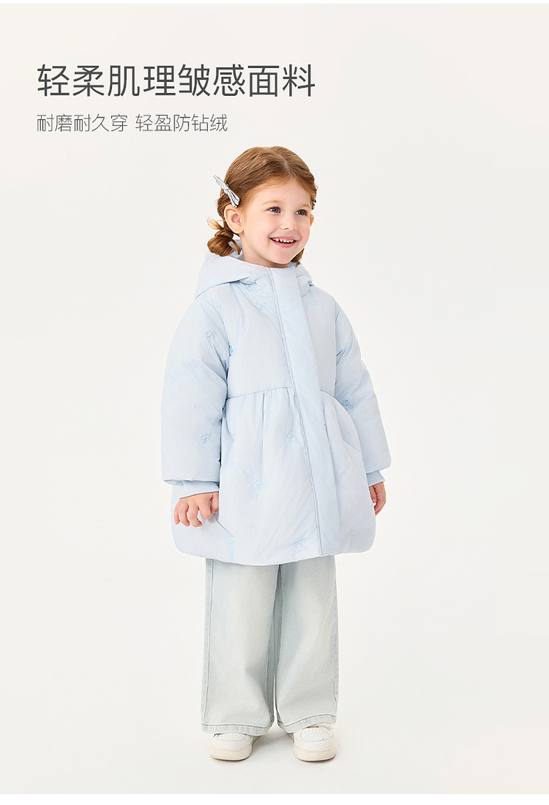 【无氟防泼水】马克珍妮女童甜趣蝴蝶结中长款花苞羽绒服2025年冬装新款551739