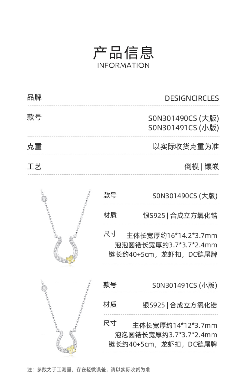 【新品】周大生*DC幸运马蹄项链纯银U字型简约高级锁骨链生日礼物